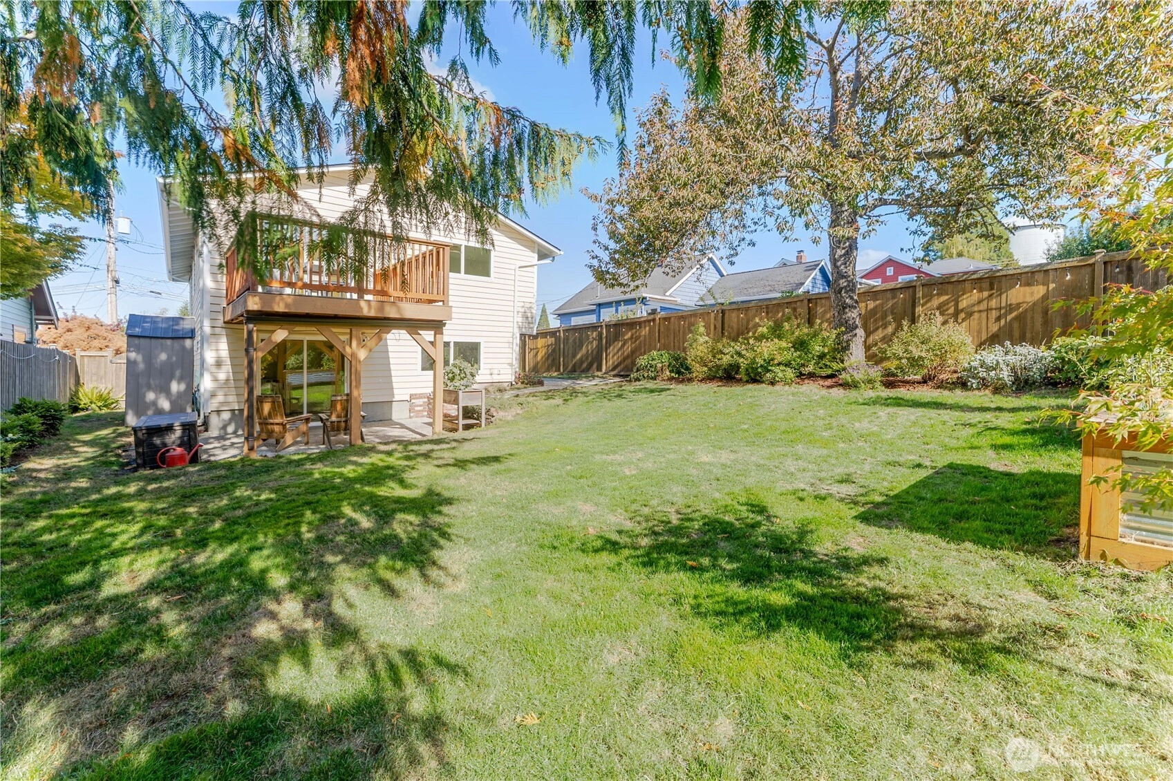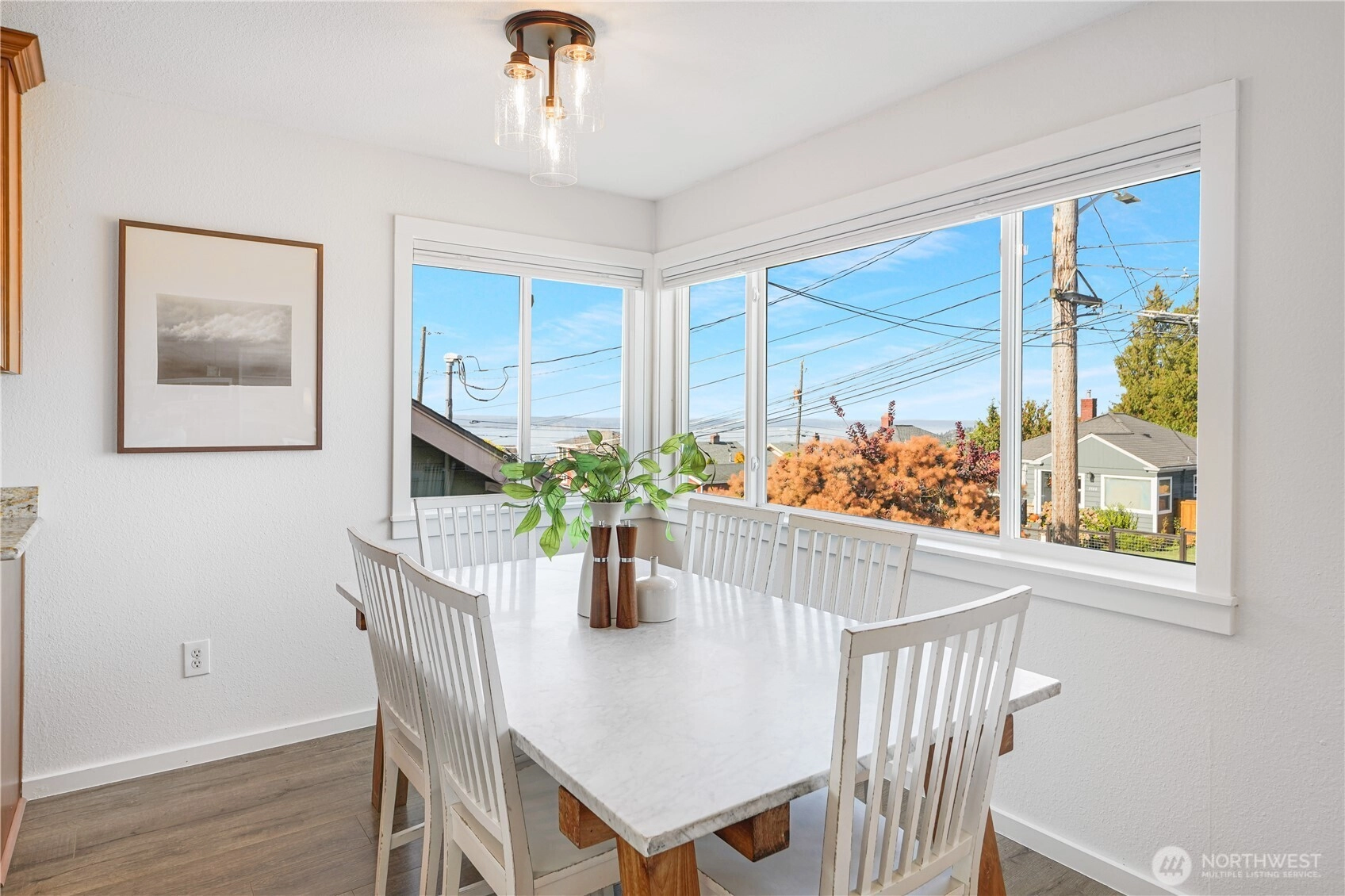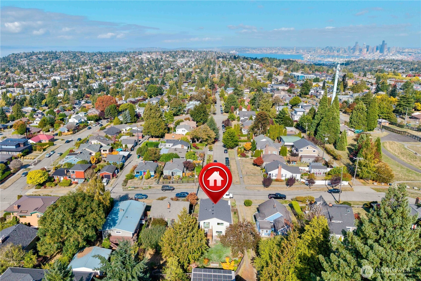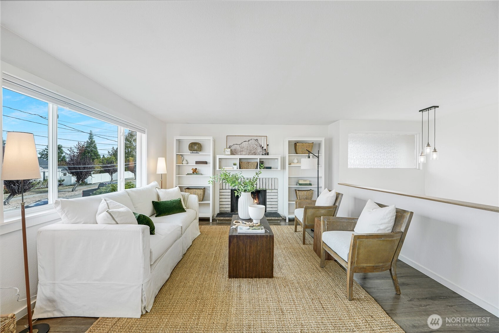 Perched atop desirable Gatewood Hill just a block from Myrtle Reservoir Park, this beautifully updated home enjoys abundant natural light and views of the Puget Sound and Olympics. The open living and dining area with a wood-burning fireplace connects seamlessly to the updated kitchen and baths, with 3 bedrooms on the main level. The lower level features a spacious bedroom, full bath, rec room, and large utility/storage area with walk-out access to the dreamy, fully fenced backyard. Covered patio, attached garage, newer roof, furnace, and panel complete this gem on a picturesque street and generous lot. Welcome home.