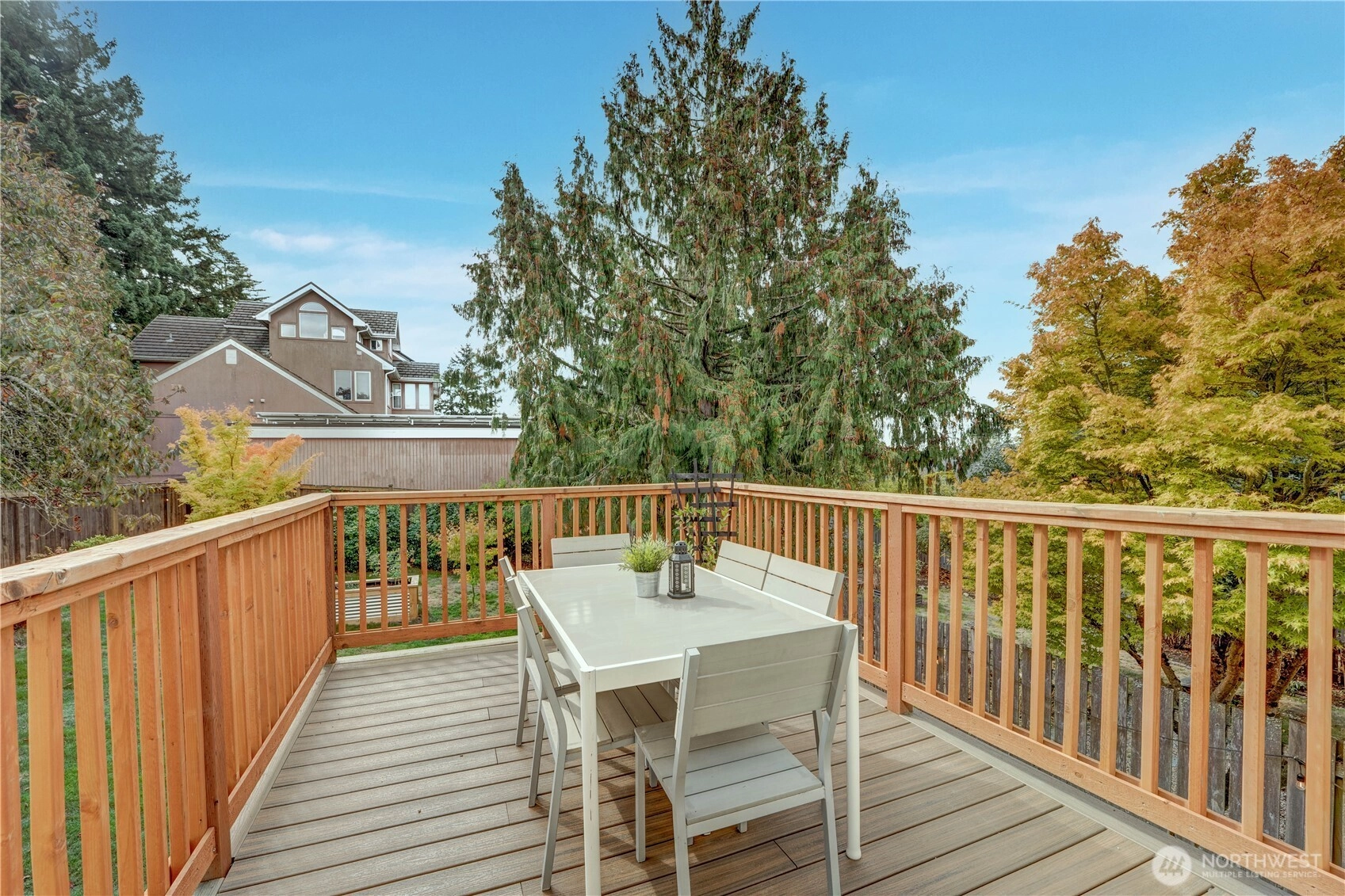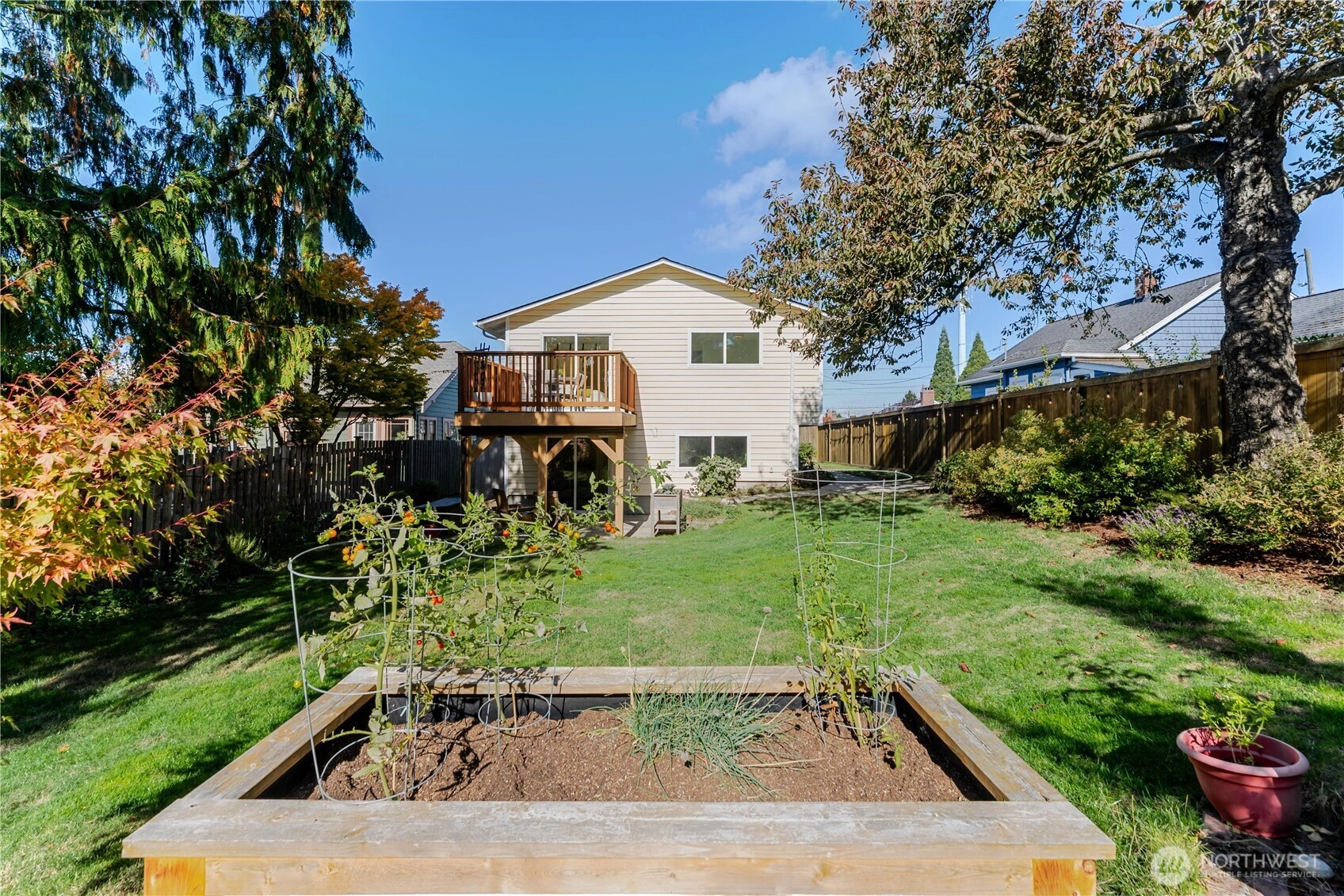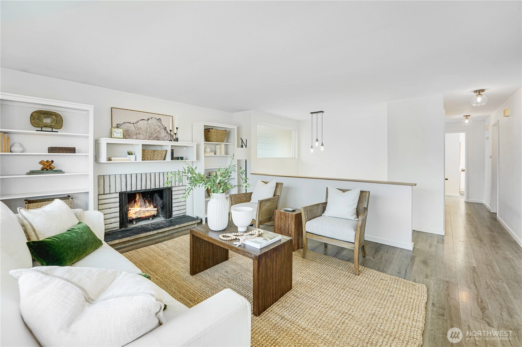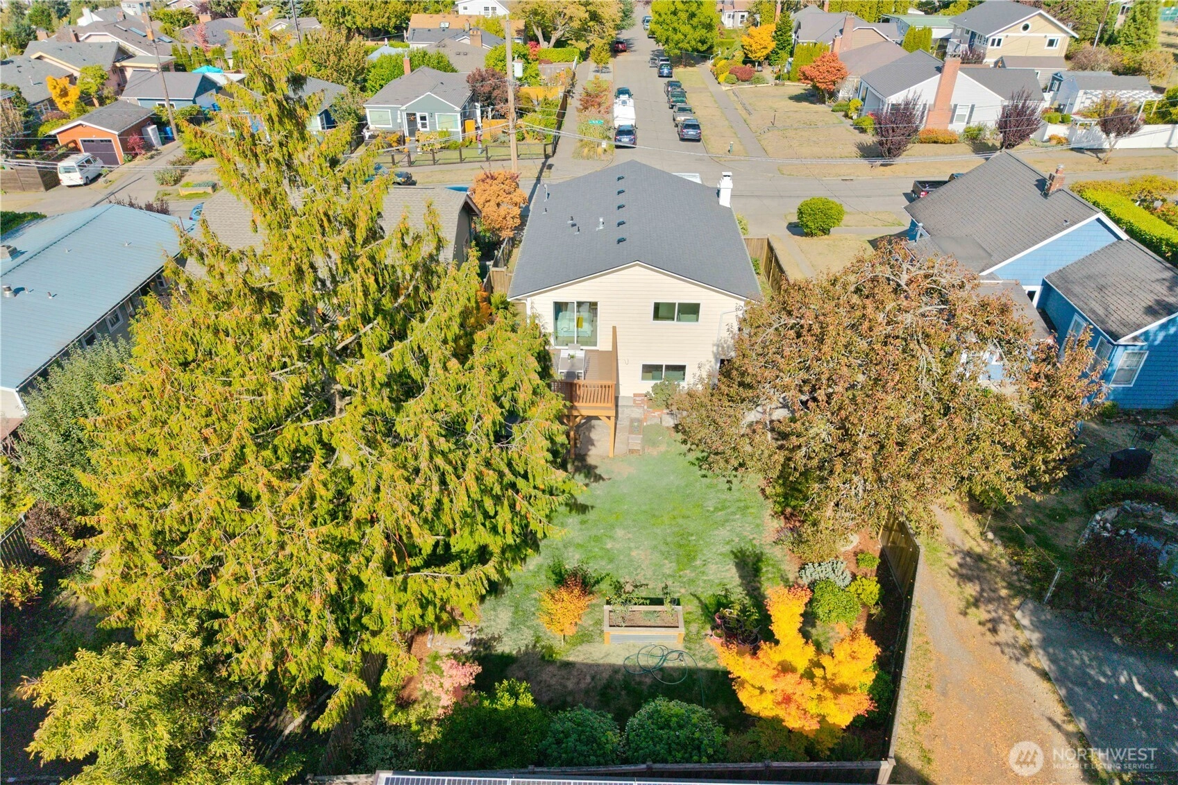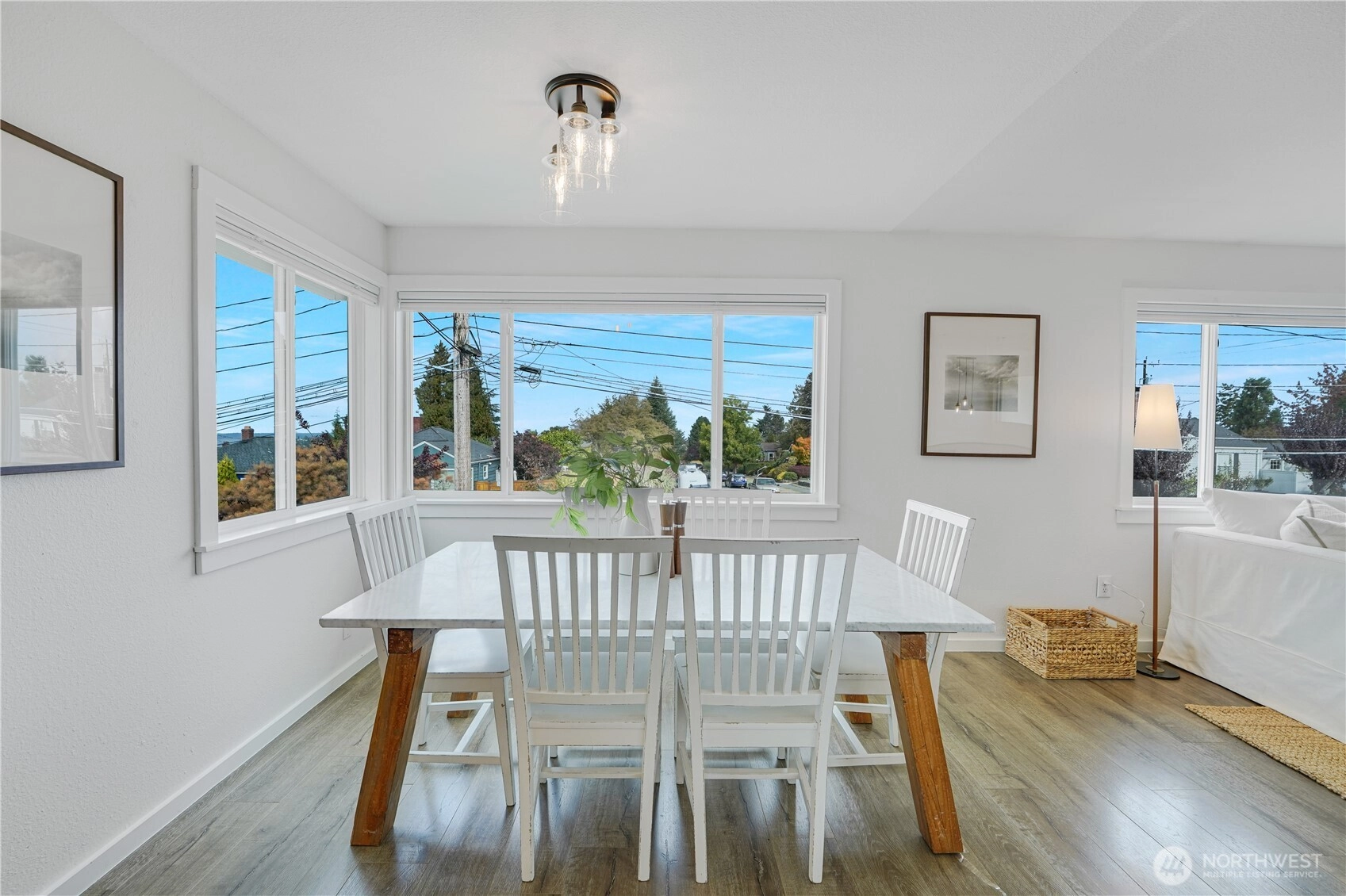 Perched atop desirable Gatewood Hill just a block from Myrtle Reservoir Park, this beautifully updated home enjoys abundant natural light and views of the Puget Sound and Olympics. The open living and dining area with a wood-burning fireplace connects seamlessly to the updated kitchen and baths, with 3 bedrooms on the main level. The lower level features a spacious bedroom, full bath, rec room, and large utility/storage area with walk-out access to the dreamy, fully fenced backyard. Covered patio, attached garage, newer roof, furnace, and panel complete this gem on a picturesque street and generous lot. Welcome home.