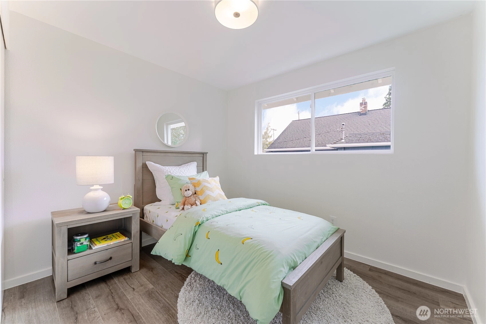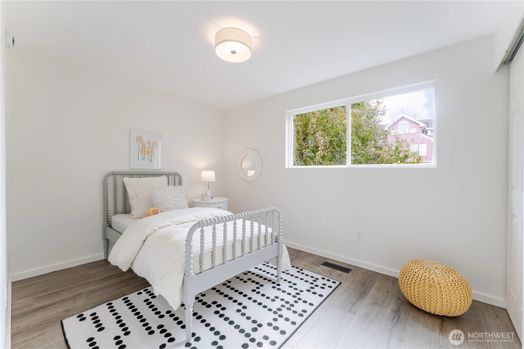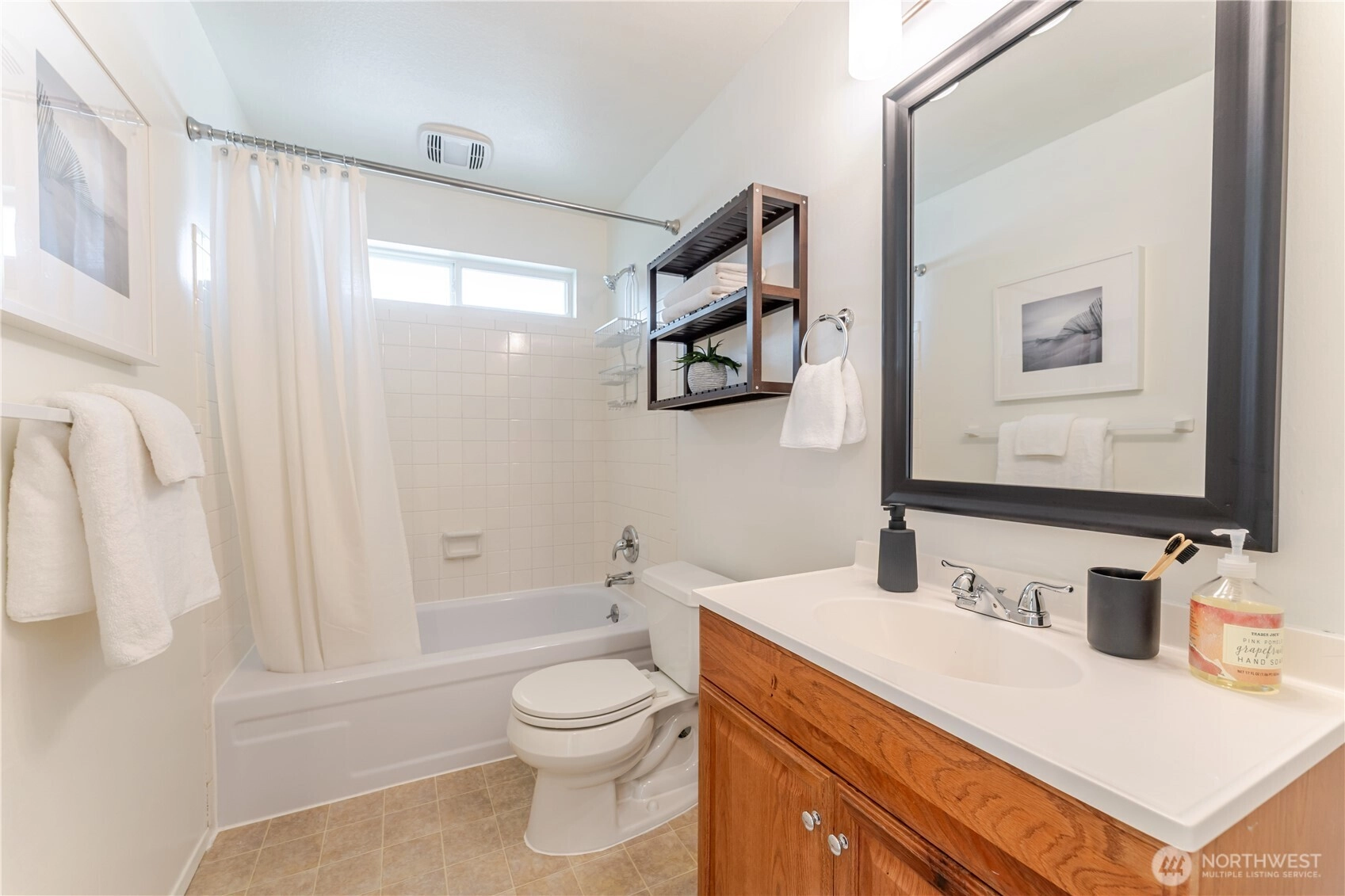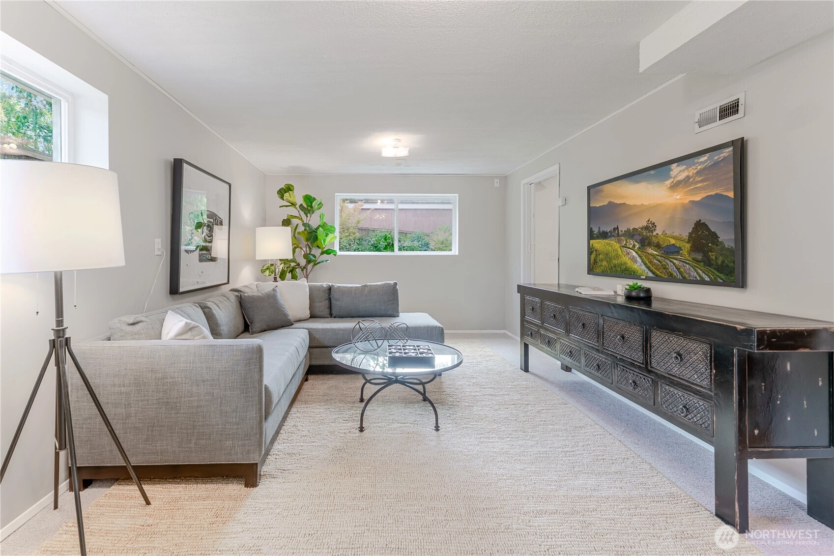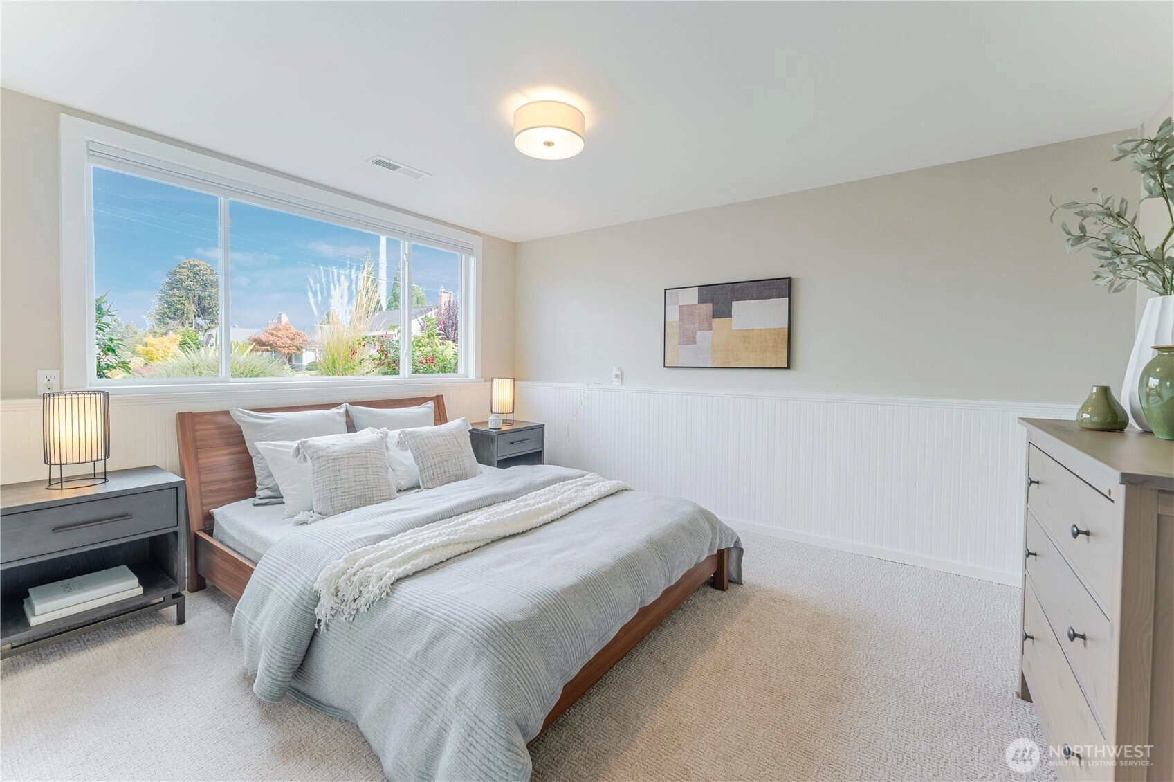 Perched atop desirable Gatewood Hill just a block from Myrtle Reservoir Park, this beautifully updated home enjoys abundant natural light and views of the Puget Sound and Olympics. The open living and dining area with a wood-burning fireplace connects seamlessly to the updated kitchen and baths, with 3 bedrooms on the main level. The lower level features a spacious bedroom, full bath, rec room, and large utility/storage area with walk-out access to the dreamy, fully fenced backyard. Covered patio, attached garage, newer roof, furnace, and panel complete this gem on a picturesque street and generous lot. Welcome home.