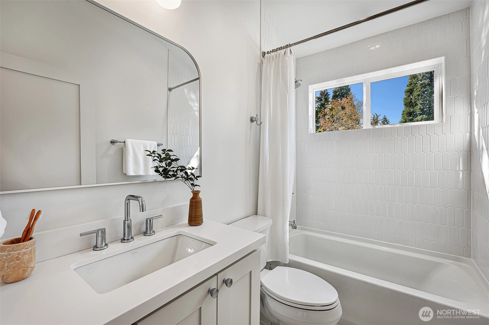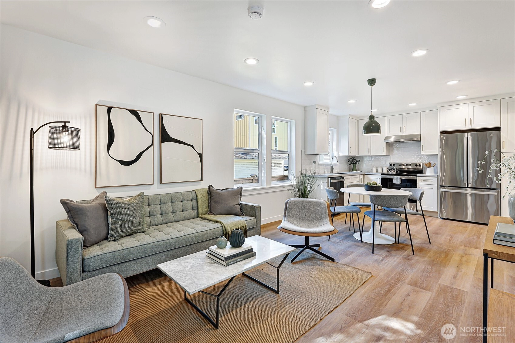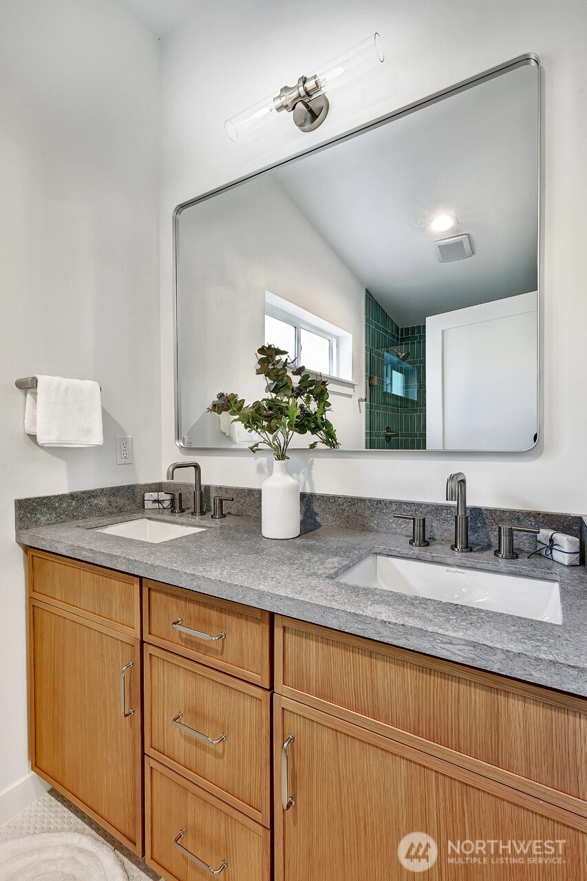 Brand-new 3 bedroom, 2.25 bathroom DADU in desirable Maple Leaf, just a half block from Reservoir Park. This thoughtfully designed 1,089 sq ft home offers open plan main-floor living complete with gleaming quartz counters, stainless steel appliances & french doors out to paved patio and parking area. Upstairs, all three bedrooms are on one level, including a bright primary suite with a spacious closet and ensuite ¾ bath. Attached 267 sq ft finished garage provides parking plus extra storage or could be converted into additional living space. Energy-efficient minisplits offer year-round comfort. Enjoy nearby favorites like Macrina Bakery, Snappy Dragon, and The Res, with easy access to I-5 and Northgate amenities.