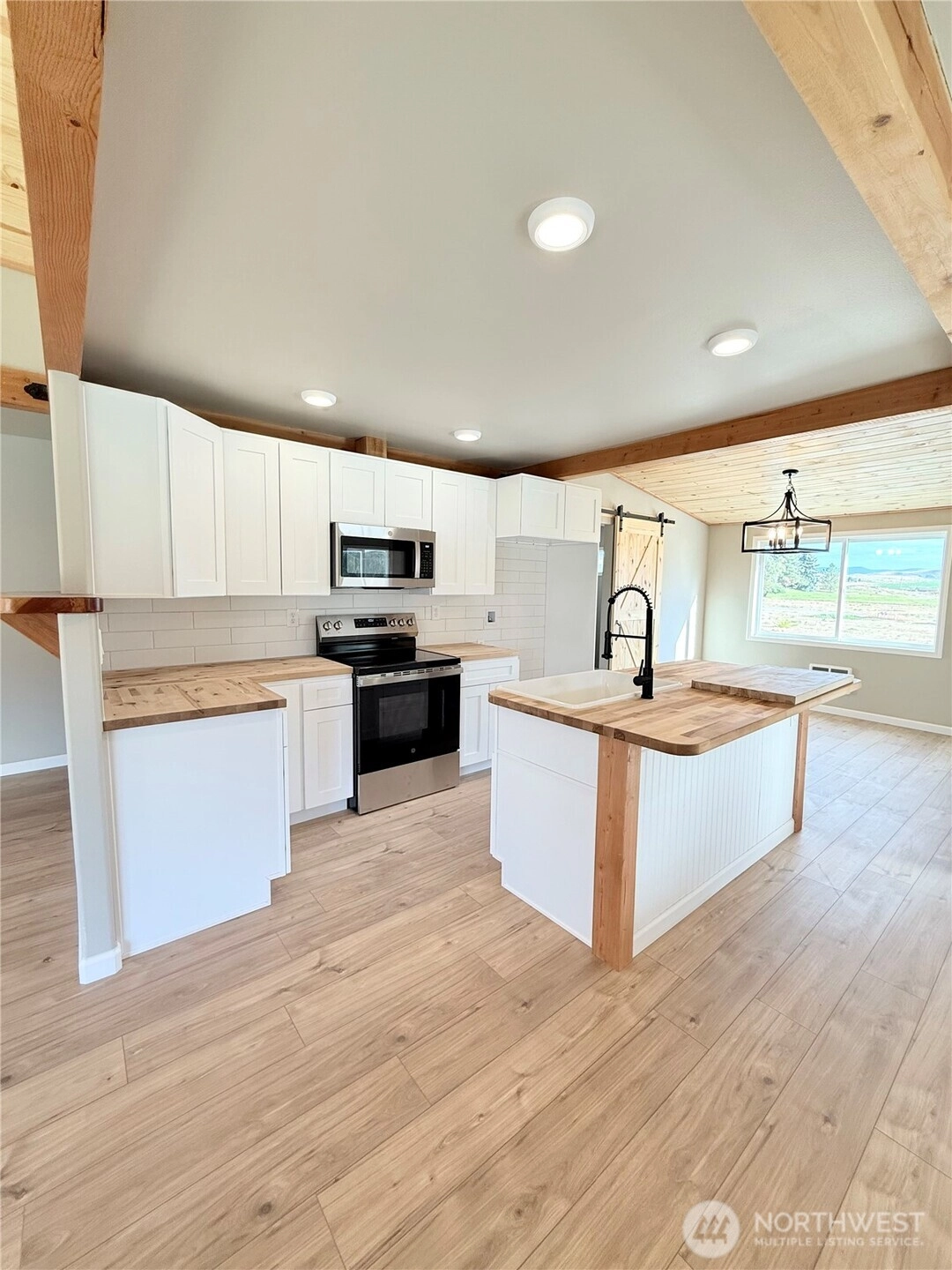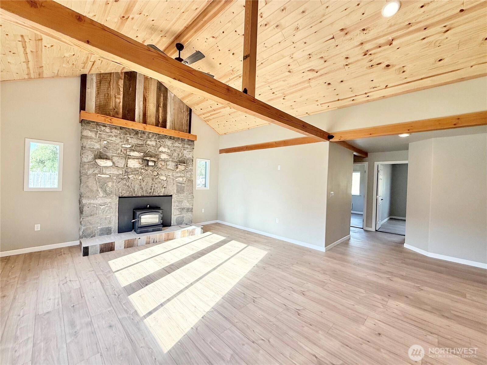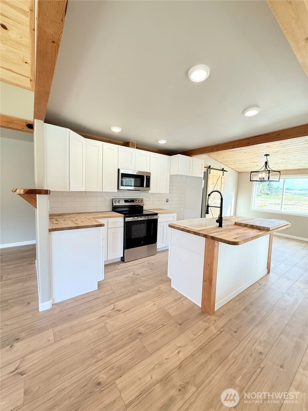 Okanogan -Old Hwy 97 just over an acre! COMPLETELY REMODELED 1860sqft 3 bed/1.75 bath home w/new exterior/interior paint, fresh new vinyl flooring, & all new light fixtures! Pristine new cabinets w/oversized walk-in pantry & butcher block island/countertops - all appliances stay, dining room, vaulted ceiling living room with native rock wood stove, reclaimed wood accent pieces, beautiful beams, full size tiled bathroom w/jetted tub, primary bedroom with three-quarter tiled en-suite, oversized laundry & mudroom off back entry w/new trek deck landing. Brand new well put in 2025. Septic. Basement for additional storage/utility room. Graveled driveway & rock yard decor. Additional space for potential shop or garage! $354,900 MLS-2441531/H-3724