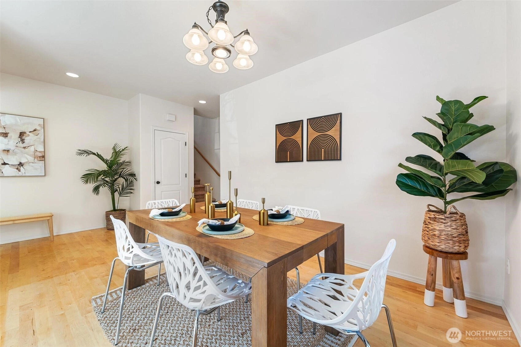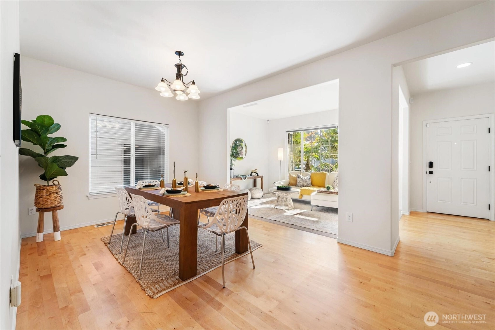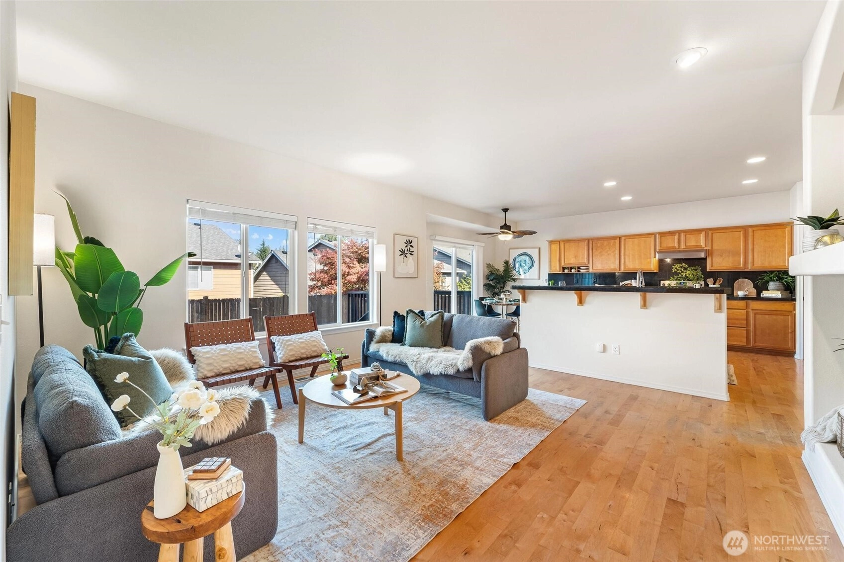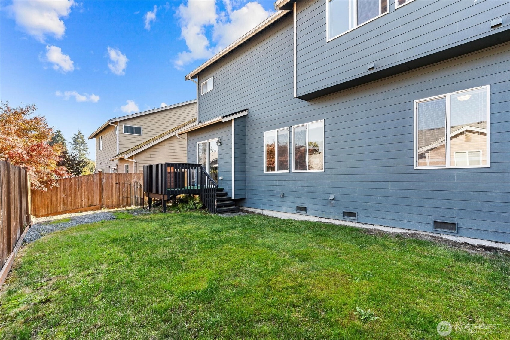 Welcome to Noble Court! This east-facing 5-bed, 3-bath home in the sought-after Rhodora Heights features an open layout that maximizes EVERY square foot. Step into bright formal living & dining areas that lead to a gourmet kitchen w/granite counters, SS appliances, & hardwood floors, opening to a cozy great room. Upstairs features the expansive primary suite with a spa-like 5-piece bath & walk-in closet, plus 3 oversized bedrooms. A main-floor bedroom w/full bath offers flexibility for guests or multi-generational living. NEW ROOF, FURNACE, INTERIOR PAINT, TRIM & CARPET! Enjoy a fenced backyard w/deck, & a prime location near Hwy 9 & 2, Costco, shopping, dining, the lake, and TOP-RATED SCHOOLS. Space. Style. Location. This home has it all!