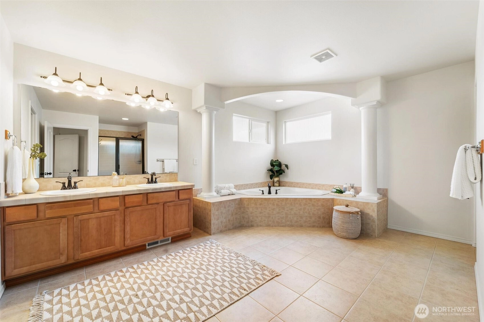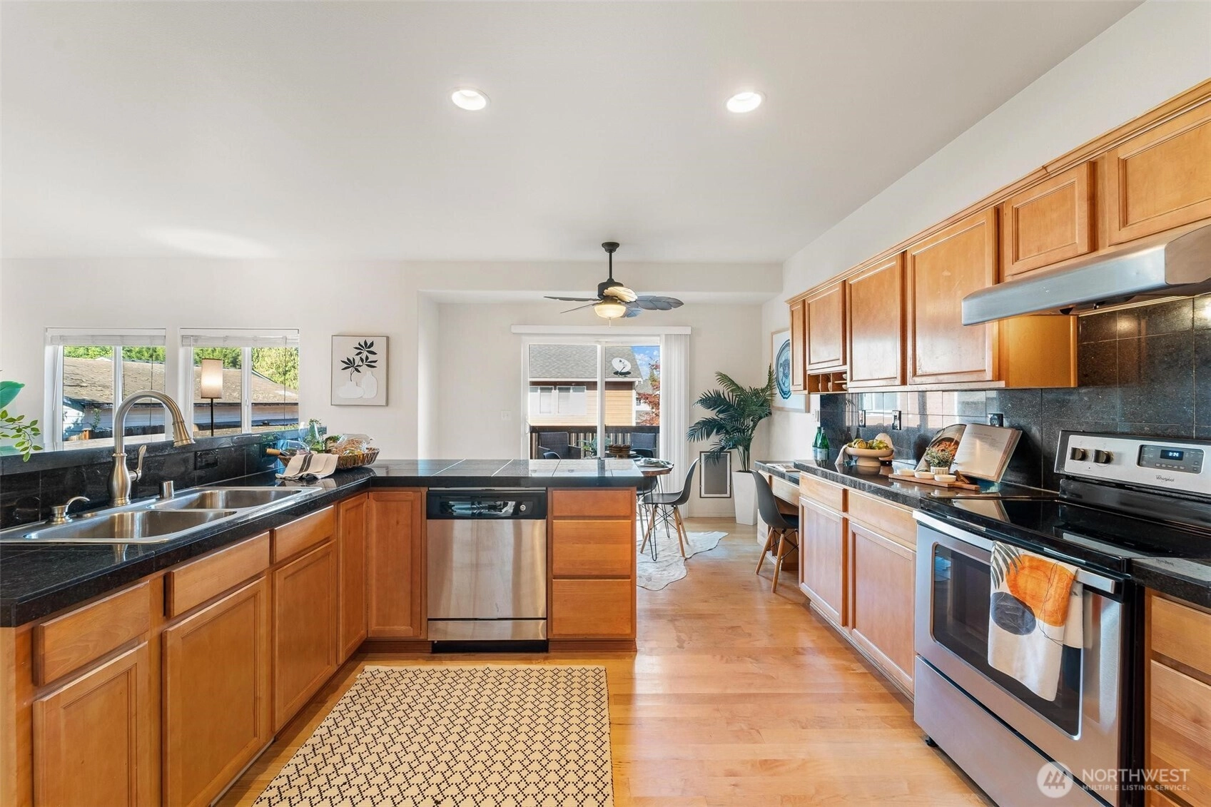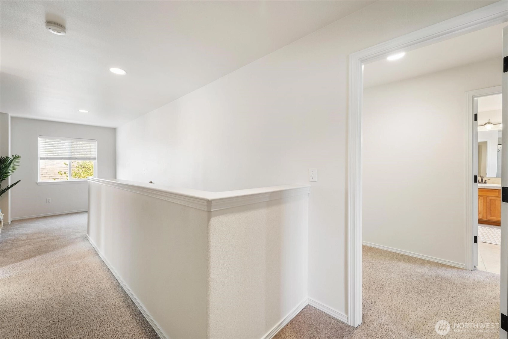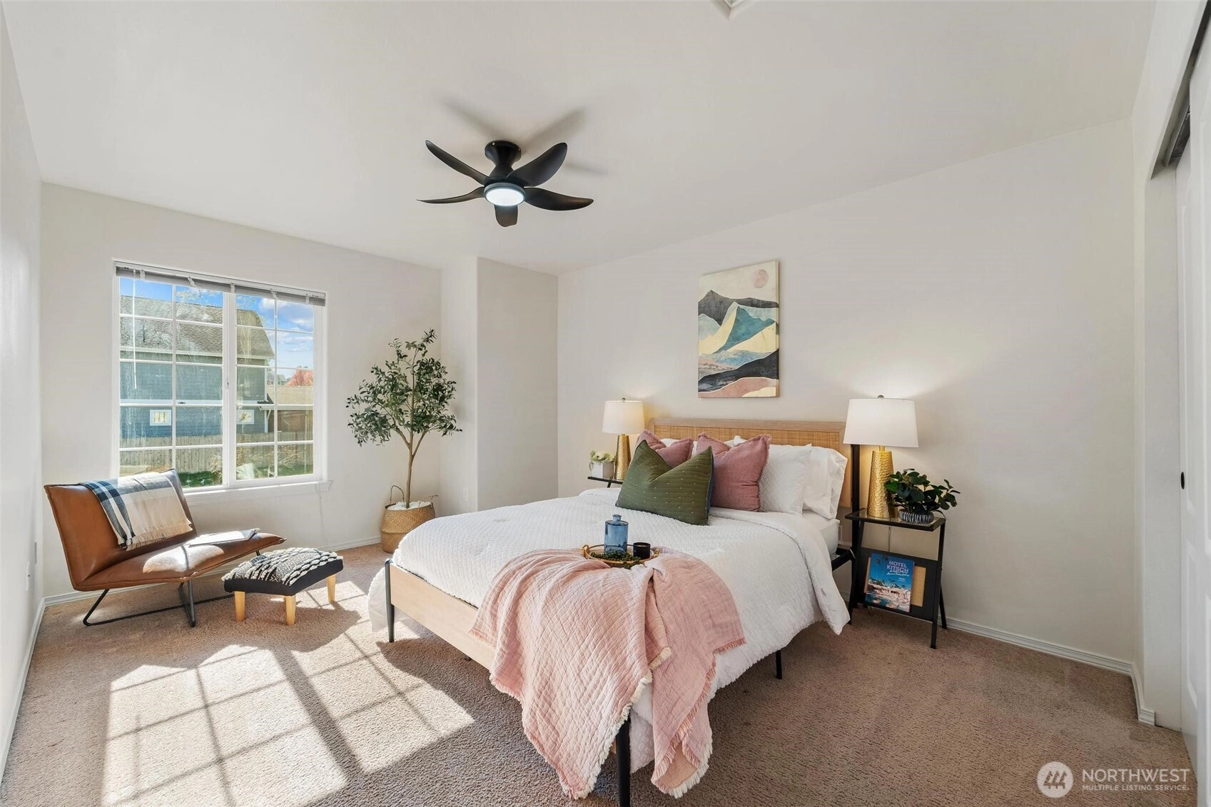 Welcome to Noble Court! This east-facing 5-bed, 3-bath home in the sought-after Rhodora Heights features an open layout that maximizes EVERY square foot. Step into bright formal living & dining areas that lead to a gourmet kitchen w/granite counters, SS appliances, & hardwood floors, opening to a cozy great room. Upstairs features the expansive primary suite with a spa-like 5-piece bath & walk-in closet, plus 3 oversized bedrooms. A main-floor bedroom w/full bath offers flexibility for guests or multi-generational living. NEW ROOF, FURNACE, INTERIOR PAINT, TRIM & CARPET! Enjoy a fenced backyard w/deck, & a prime location near Hwy 9 & 2, Costco, shopping, dining, the lake, and TOP-RATED SCHOOLS. Space. Style. Location. This home has it all!