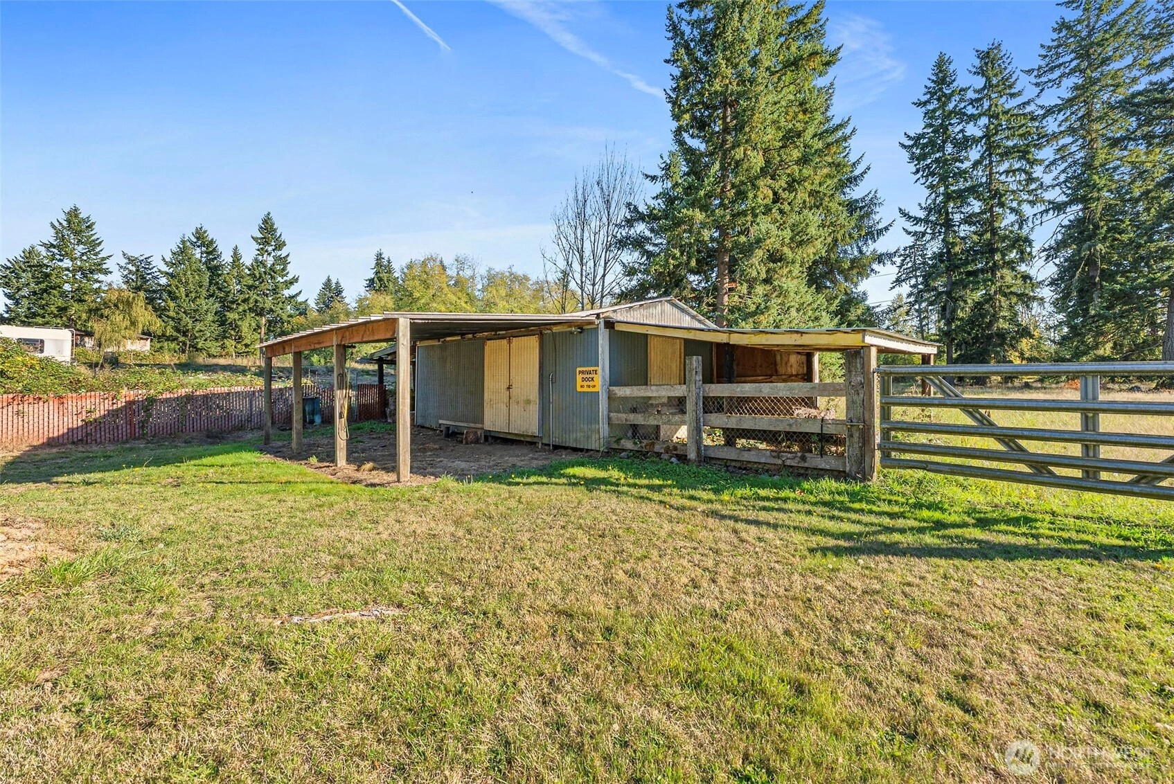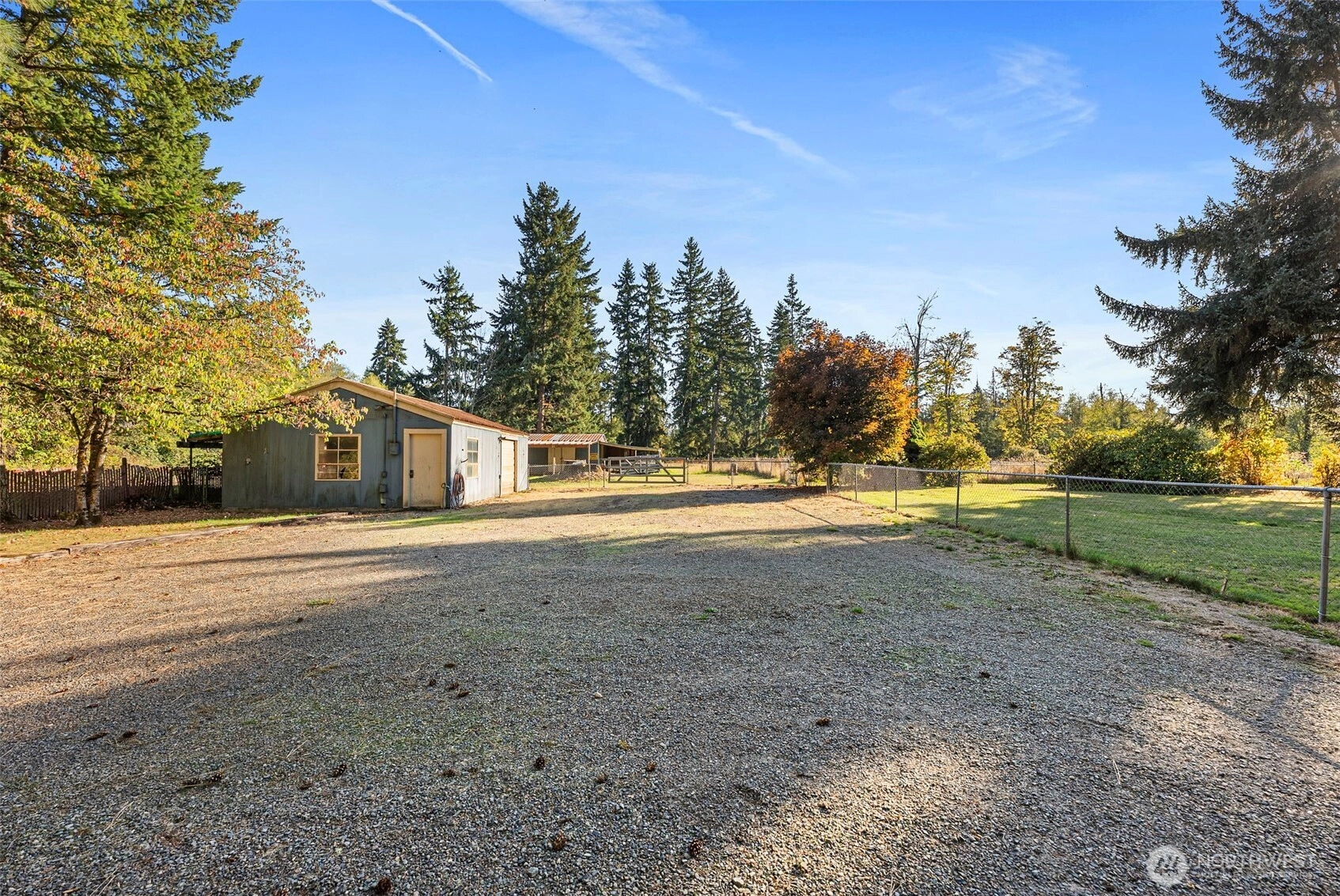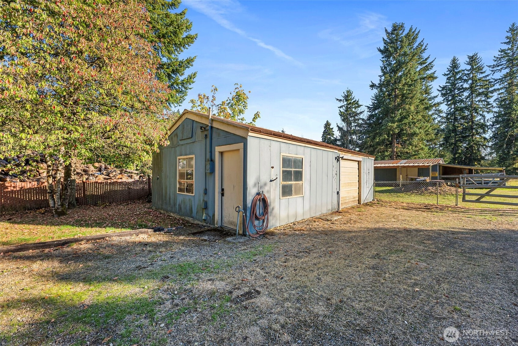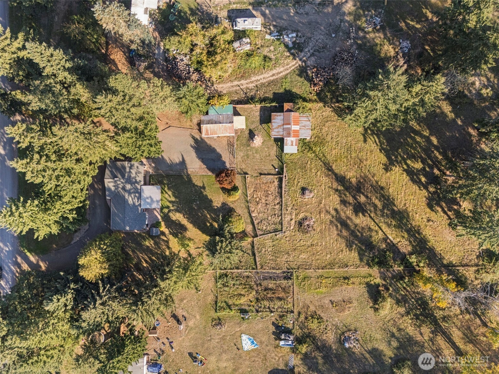 Your hobby farm awaits, on 2.46, acres, fenced in garden space & pasture, hayloft (w/power) w/enclosed storage , detached garage/shop w/lien-to, once was a quaint 640 sq ft home , own electrical panel=power. A beautiful 628 sg ft covered tile patio (hot tub ready), newer roof, newer electrical panel, water/power/RV hookups. Heat pump & wood stove to keep you warm on cold evenings w/AC for the hot summer days. Primary w/slider to breath fresh air. Fruit trees & low maintenance landscaping, pull through drive, room for so much parking. This home was the home to be at, music stages have been on the land to host the most wonderful events. Now it's time to pass this great home on. Wired for generator/gen stays. Get'it in time for Christmas!