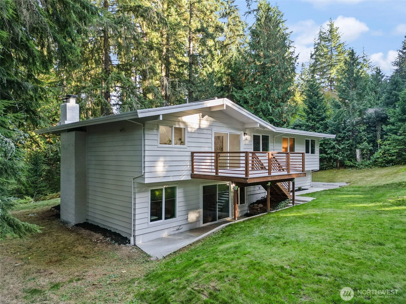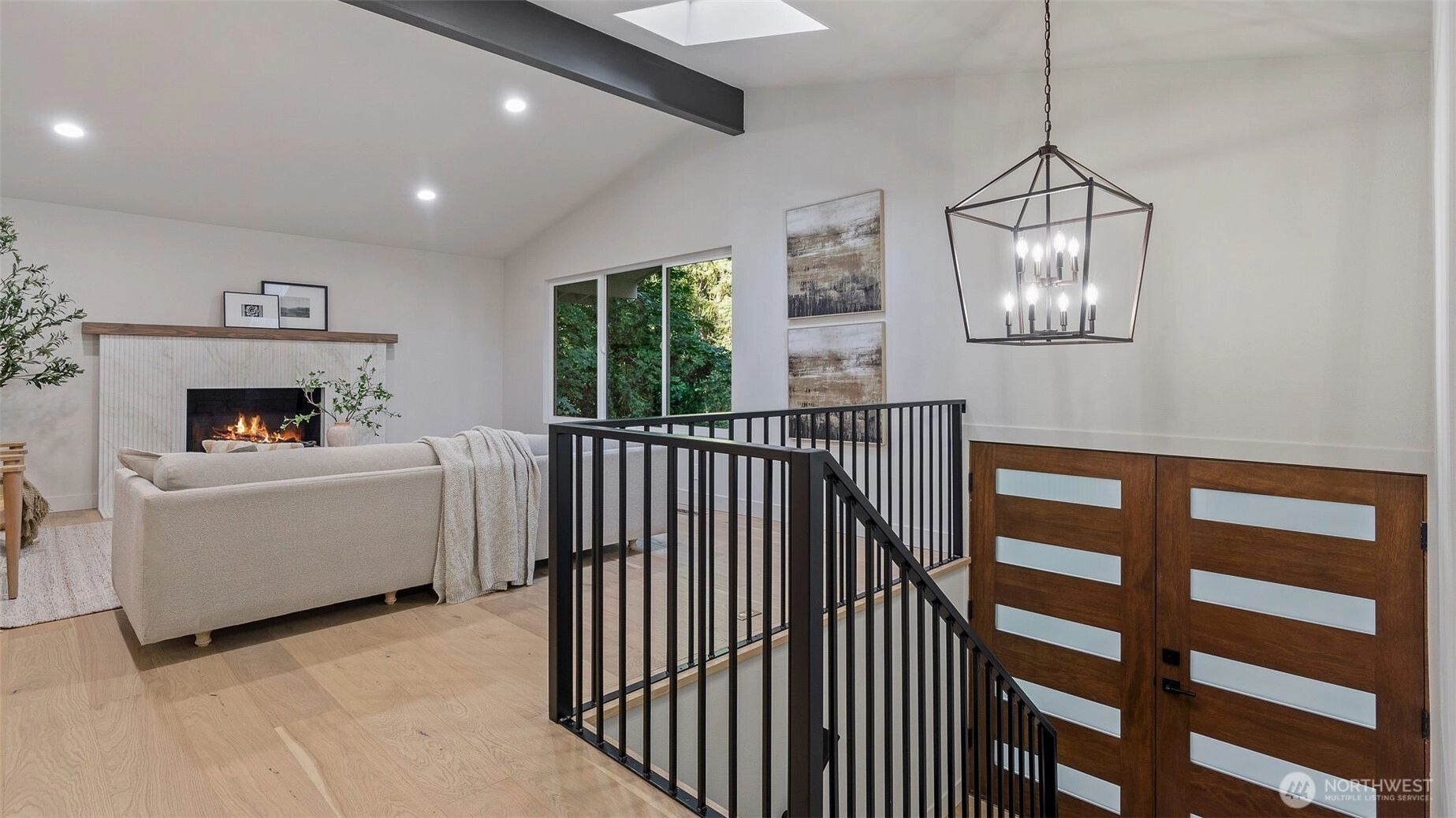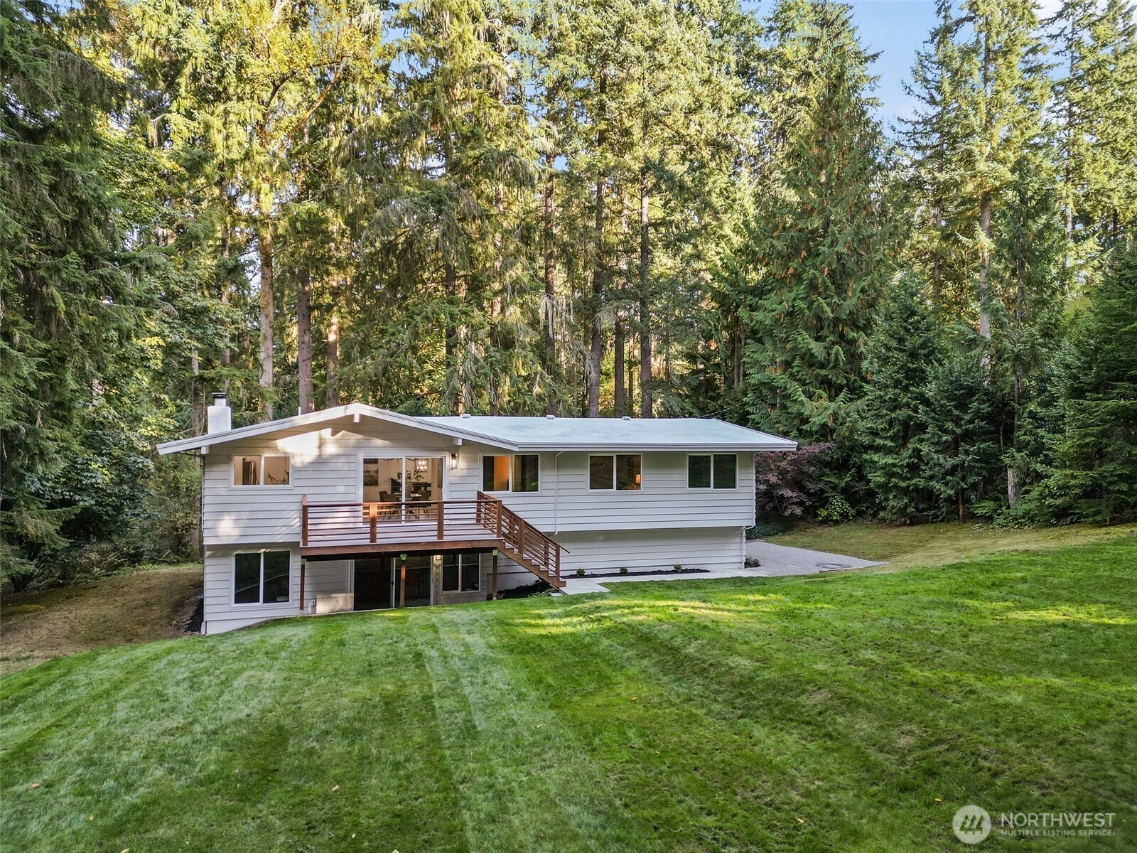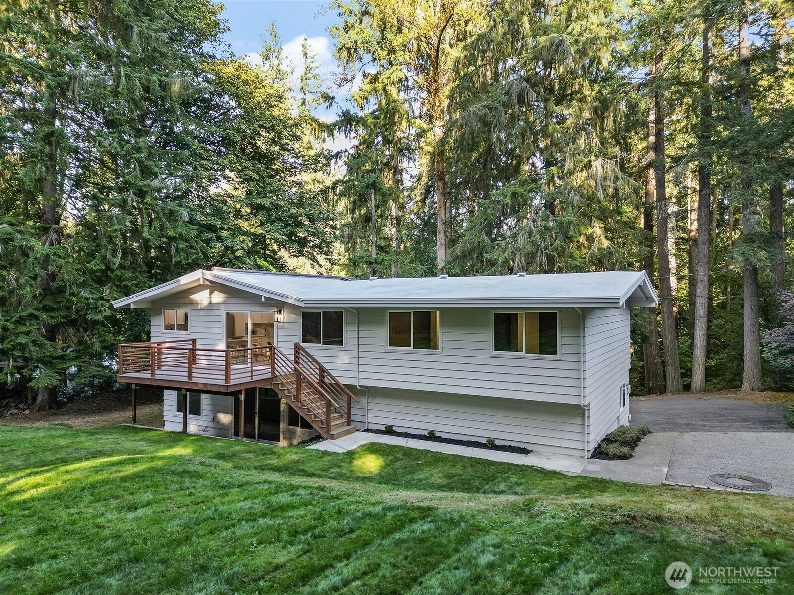 Set back from the road with a long private driveway, this beautifully updated home offers the perfect blend of privacy, space, and modern comfort. Situated on a generous 1-acre lot, this 5-bedroom, 3-bathroom home is truly move-in ready. Inside, you’ll find a bright and inviting living area featuring vaulted ceilings, a skylight that brings in abundant natural light, and a charming wood-burning fireplace that adds warmth and character. The kitchen is absolutely gorgeous—completely updated with modern finishes. Each bathroom has been tastefully renovated with stylish touches that feel both fresh and timeless. Downstairs, a spacious family room opens up to a large backyard, offering endless possibilities for outdoor living.