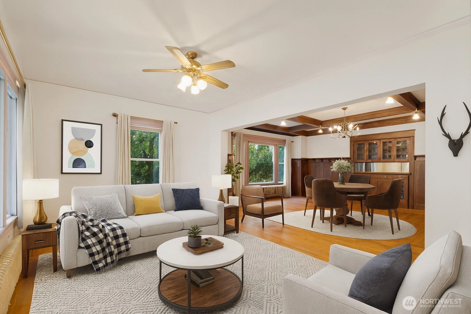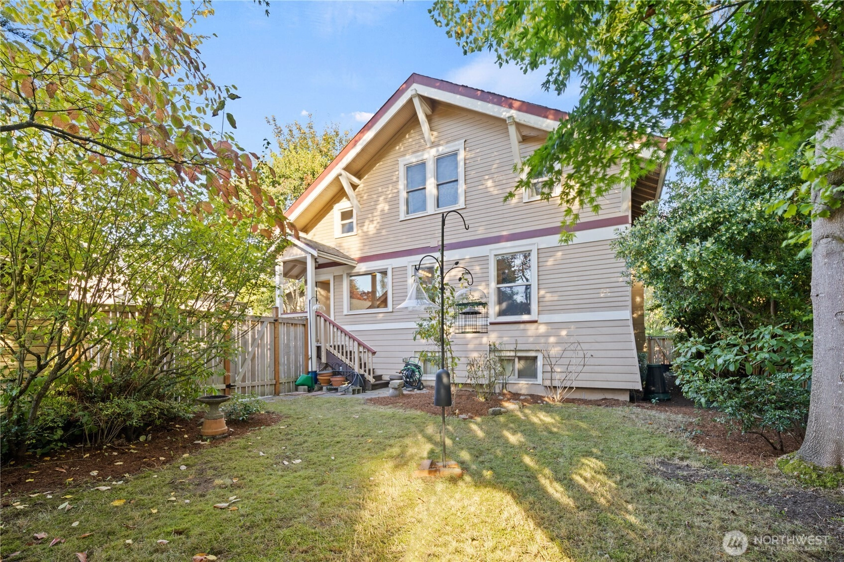 Discover the charm of this 1915 Ballard classic, offering 4 bedrooms, 2 baths, and nearly 2,800 sq ft of living space. Tucked on a 5,100 sq ft lot, this home blends historic character—original hardwoods, built-ins, and radiator heating with modern upgrades, including updated plumbing, electrical, and a new sewer line. The inviting front porch and mature landscaping add timeless appeal, while the private backyard creates a peaceful retreat. A spacious layout and unfinished basement with finishing potential provide endless opportunities. Ideally located near Ballard’s vibrant shops, eateries, and parks, this is a rare chance to restore and reimagine a turn-of-the-century gem.