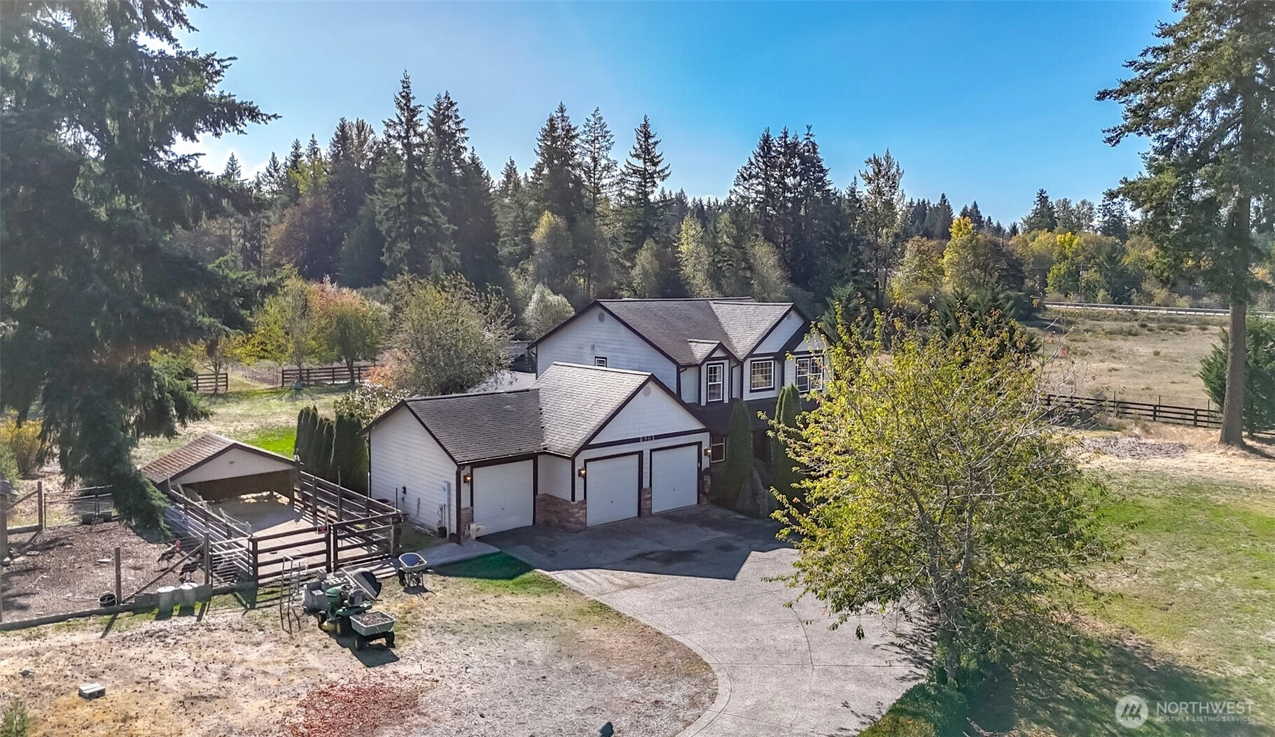 Unique opportunity to own this 10 acre Eatonville retreat with custom home, 3 car garage & NO HOA. This 2665 sq ft home features a dramatic 20 ft. stone fireplace, soaring ceilings & main floor primary suite w/5 piece bath. Private den & formal dining room sit on either side of the spacious foyer. Upstairs are the two extra bedrooms, full bath & a large bonus room/loft. This thoughtfully designed home has flexible space for gym, media room, crafting & more. The classic PNW style and 10acres makes this the perfect equestrian, hobby farm, or small homestead with plenty of room for shop or barn. Enjoy the expansive patio, partially covered for outdoor living & water feature. This property offers ample room for RV, boats & all the extra toys.
