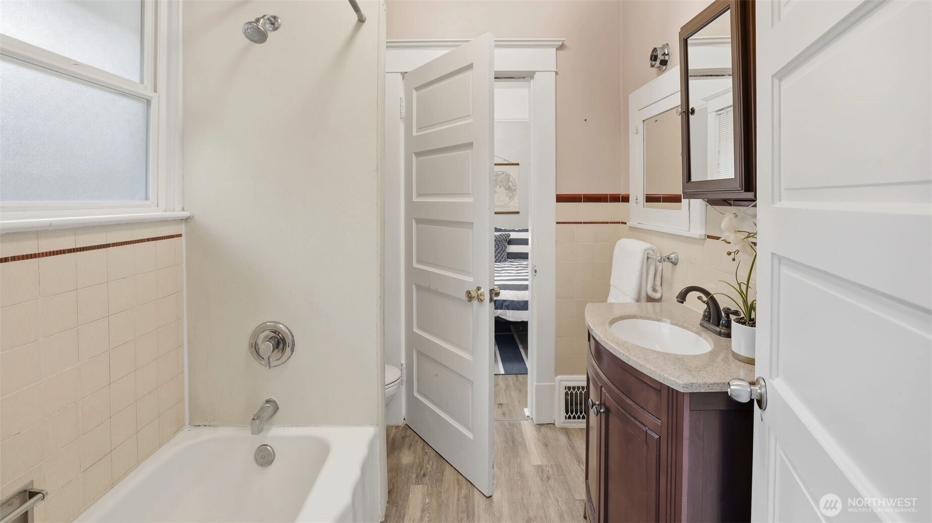 Discover the charm of Seward Park and Columbia City living in this spacious, light-filled home with flexible spaces and strong investment potential. The main home offers two bedrooms with a shared Jack & Jill bath, a bonus den/office, and a basement. The ADU adds a private 1-bed, 1-bath retreat—perfect for guests, rental income, or multi-generational living. Enjoy well-maintained hardwood floors in the living and dining room and new vinyl plank flooring in the bedrooms! You will love the large detached garage and partially fenced yard with ample space to run and play while the covered front porch provides year-round enjoyment. Minutes to Lake Washington, Seward Park trails, and easy I-5/I-90 access.