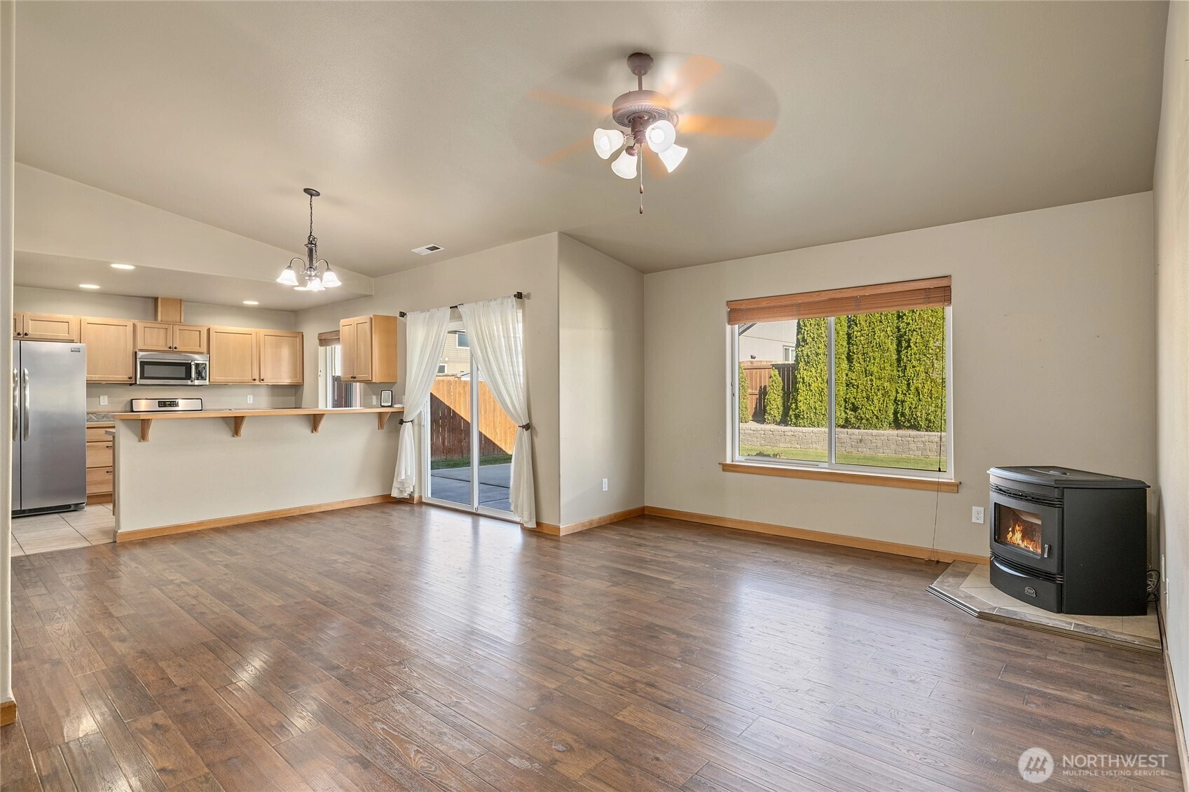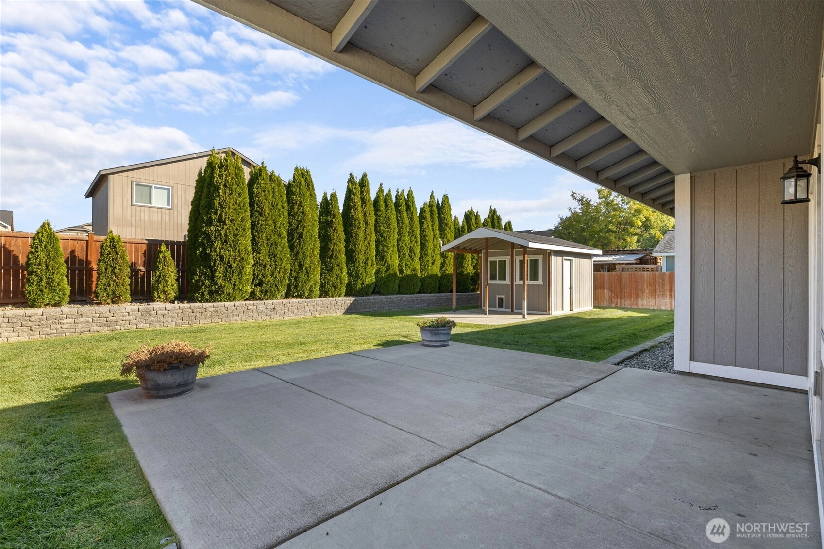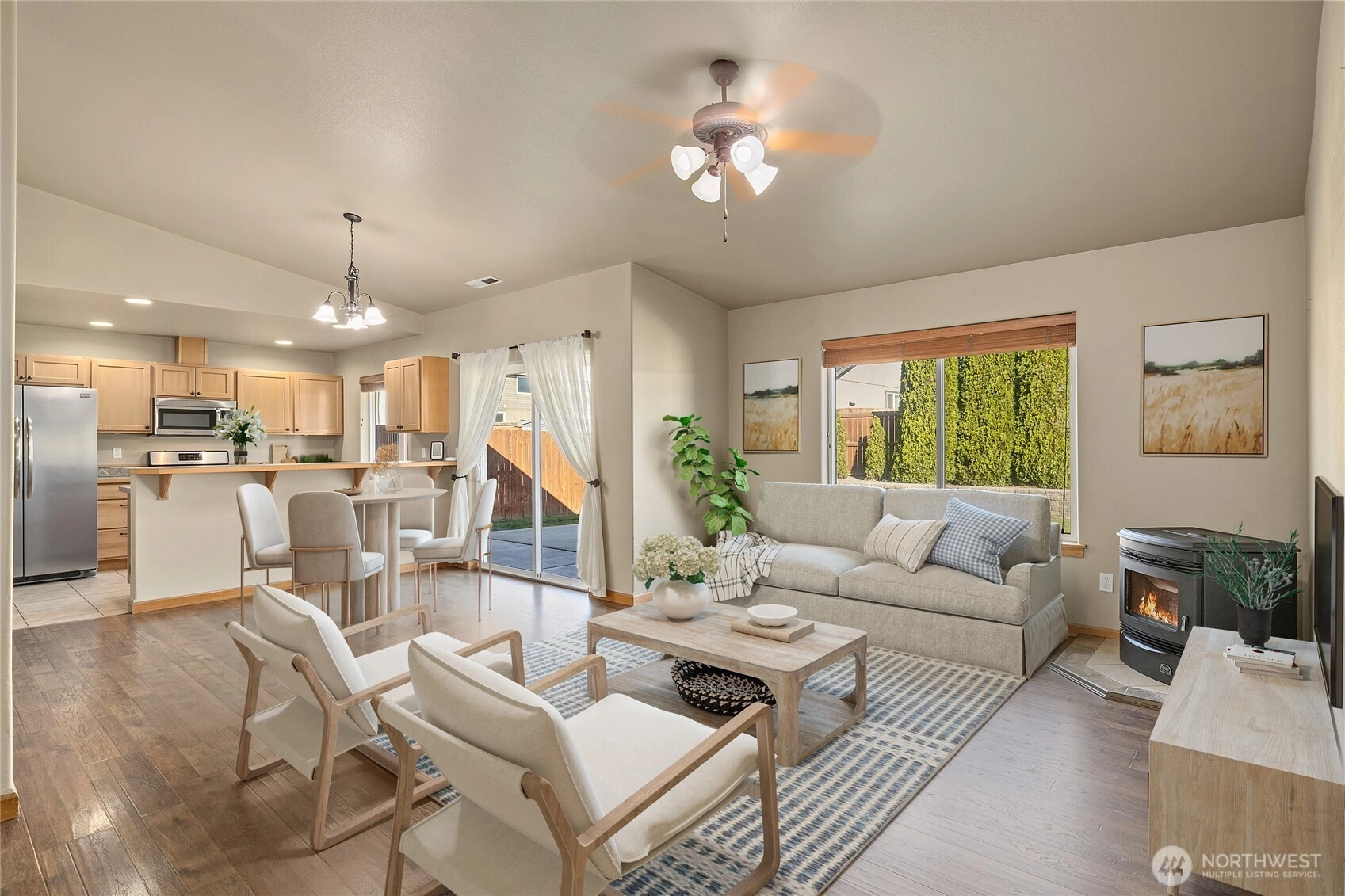 Move-in ready 1,330 SqFt rambler in Ellensburg's desirable Vista View Estates. This three bedroom, two bathroom home built on concrete slab features an open kitchen to the great room, efficient pellet stove heating, central air conditioning and abundant storage. Enjoy a peekaboo view of Mount Rainier from the front yard in this quiet established neighborhood. The beautifully cared for, fully fenced and landscaped backyard is perfect for outdoor living with an insulated storage shed PLUS sprinkler system for front and backyard. All appliances stay in the home, two vehicle garage and NO HOA fees! The south-end neighborhood has easy access to parks, schools, and services. This home is ready now for you to enjoy!