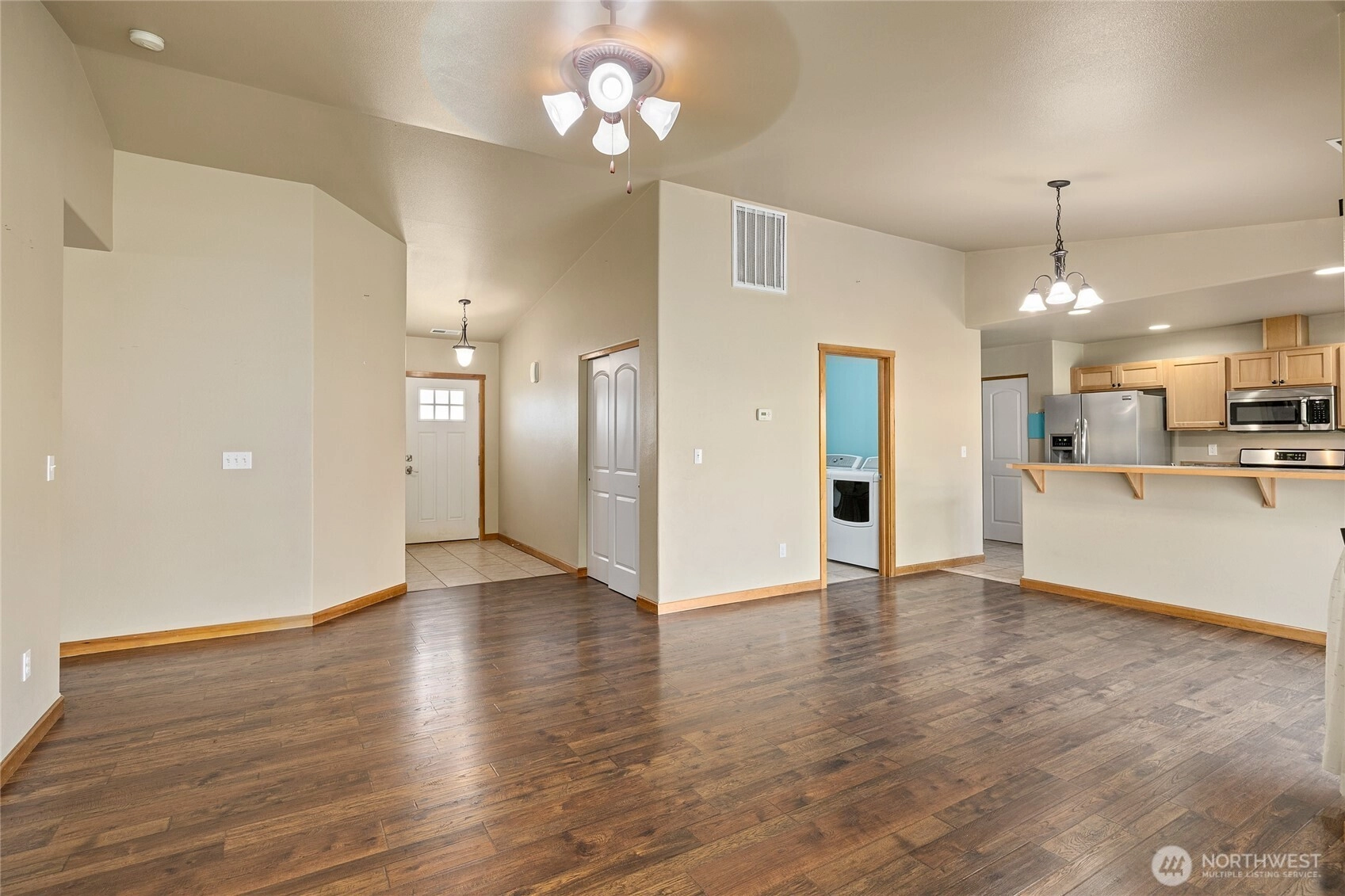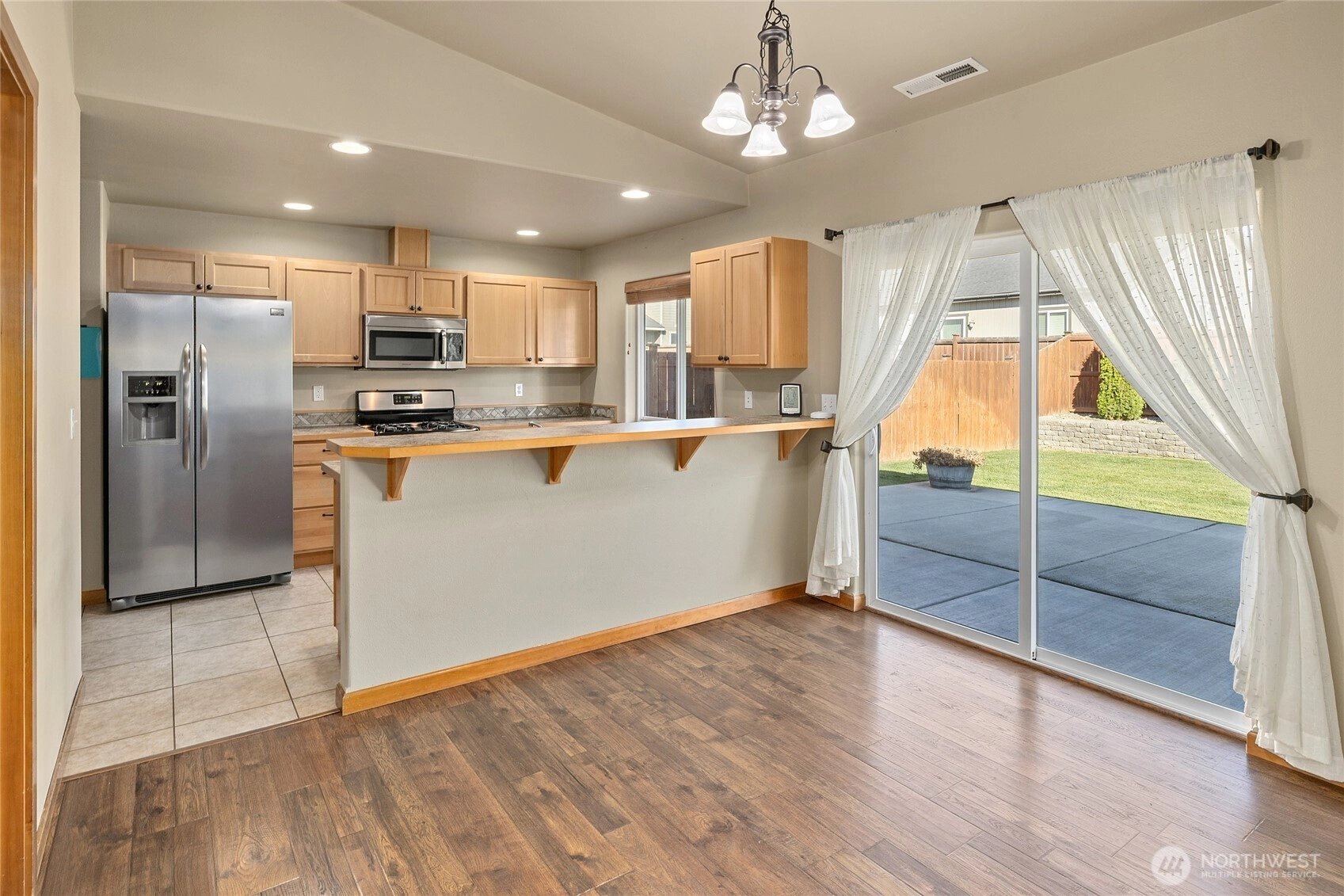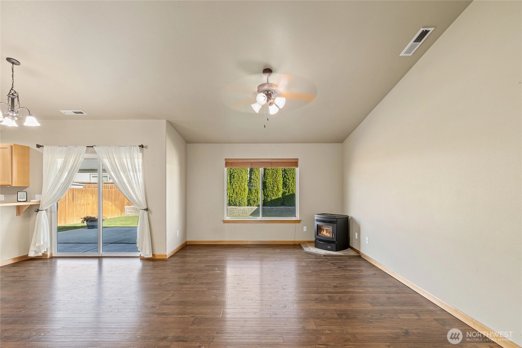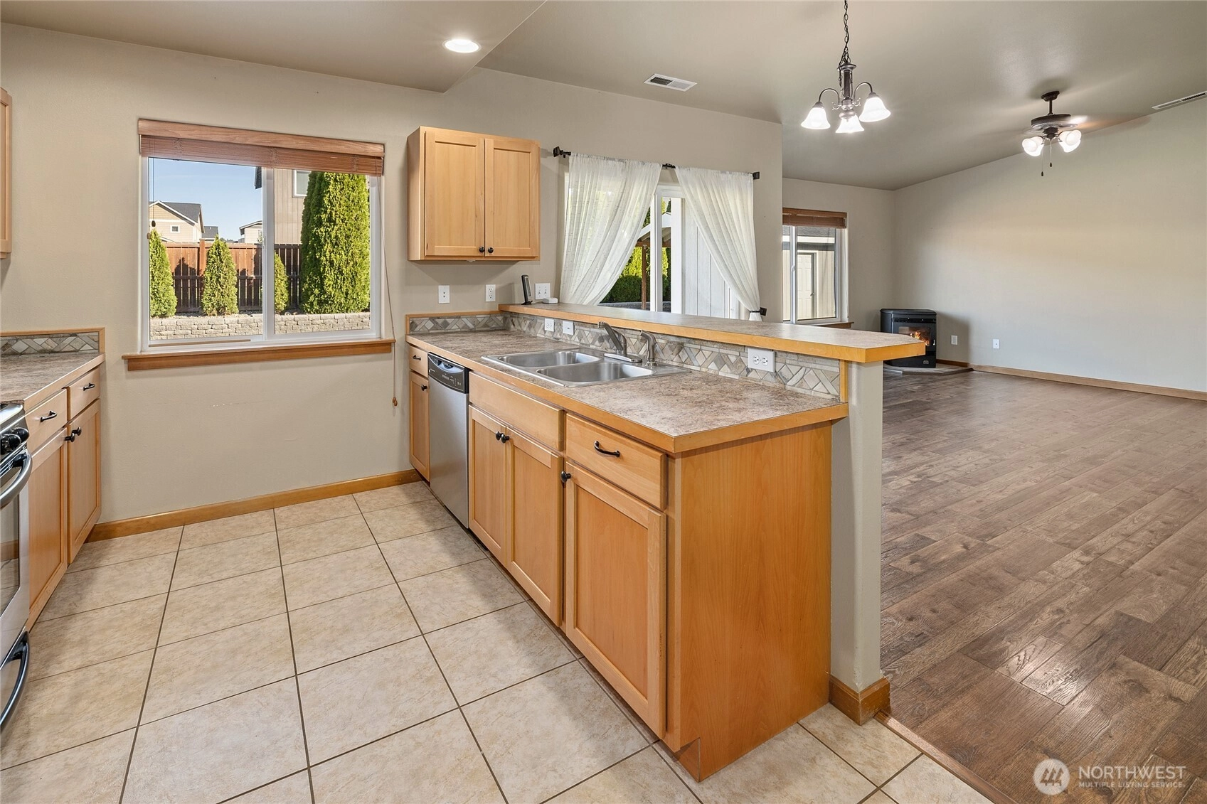 Move-in ready 1,330 SqFt rambler in Ellensburg's desirable Vista View Estates. This three bedroom, two bathroom home built on concrete slab features an open kitchen to the great room, efficient pellet stove heating, central air conditioning and abundant storage. Enjoy a peekaboo view of Mount Rainier from the front yard in this quiet established neighborhood. The beautifully cared for, fully fenced and landscaped backyard is perfect for outdoor living with an insulated storage shed PLUS sprinkler system for front and backyard. All appliances stay in the home, two vehicle garage and NO HOA fees! The south-end neighborhood has easy access to parks, schools, and services. This home is ready now for you to enjoy!