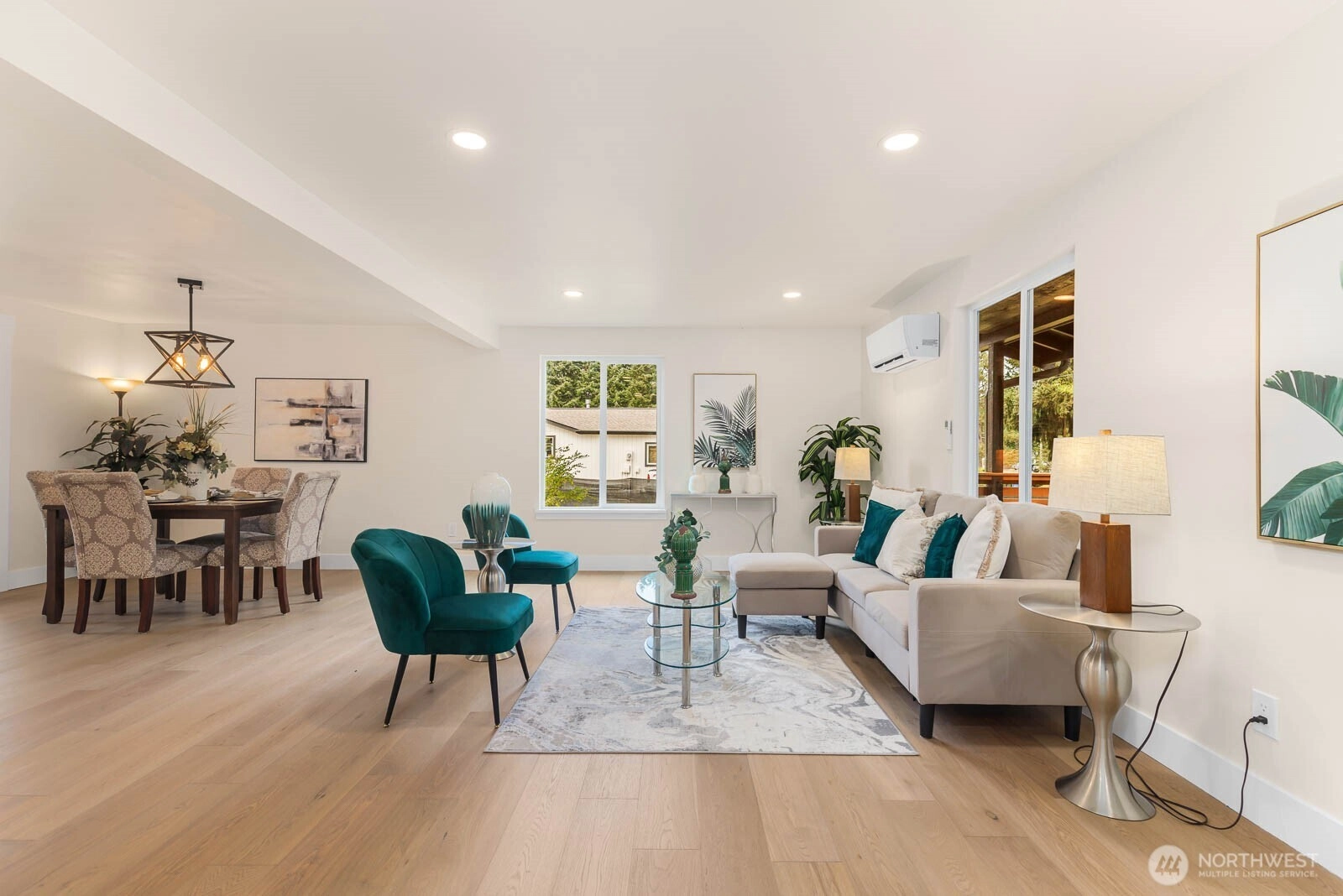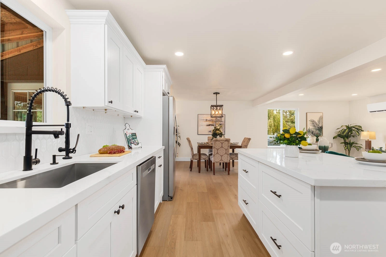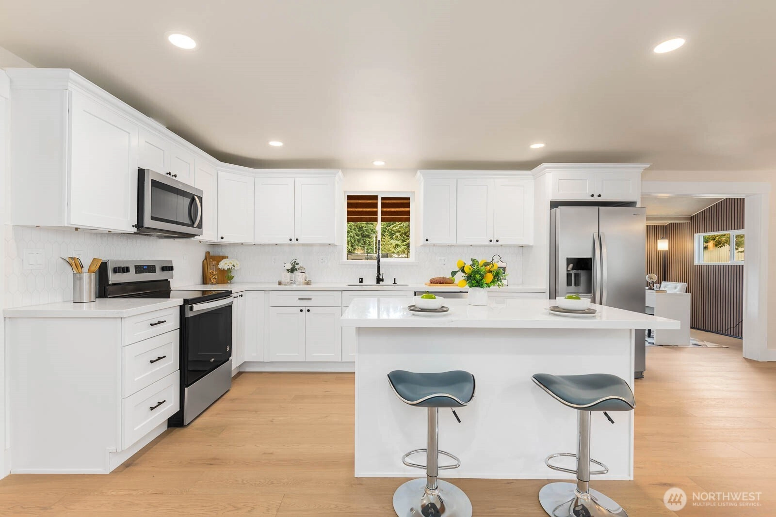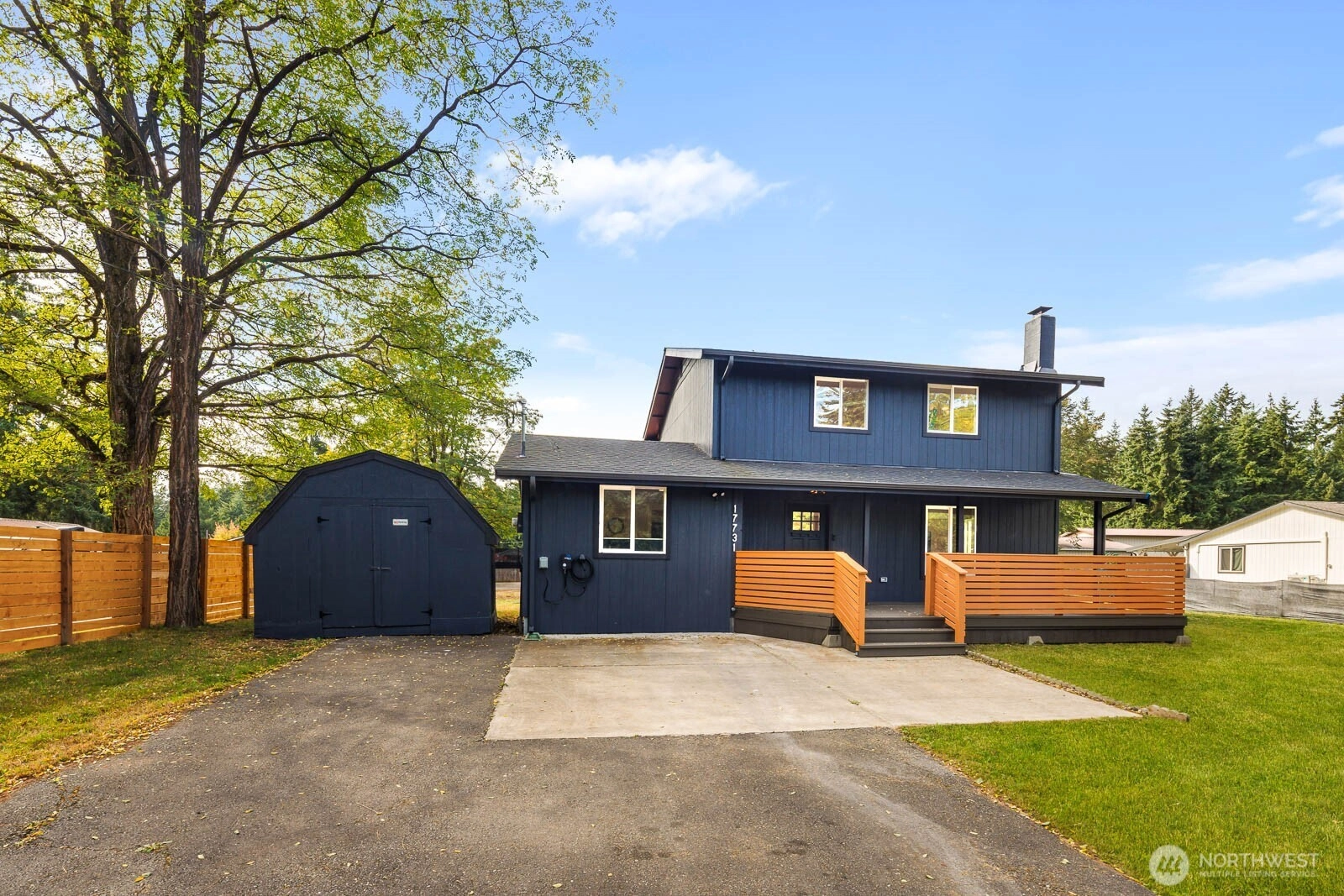 This beautifully renovated residence offers flexible living with 4 bedrooms, 2.75 baths, and an inviting open-concept layout. The brand-new kitchen shines with quartz countertops, SS appliances, and a spacious island perfect for gatherings. Enjoy year-round comfort with a mini-split heating & cooling system. The home also features a bonus/den area plus a versatile outdoor office, or entertaining space. Step outside to a massive 36’ x 36’ shop with soaring 15’ ceilings and an additional 12’ x 36’ lean-to—ideal for projects, hobbies, or storage. Sitting on a large, level half-acre lot with RV parking, this property also provides six covered parking spaces and endless room for your lifestyle needs. This is truly a rare find!