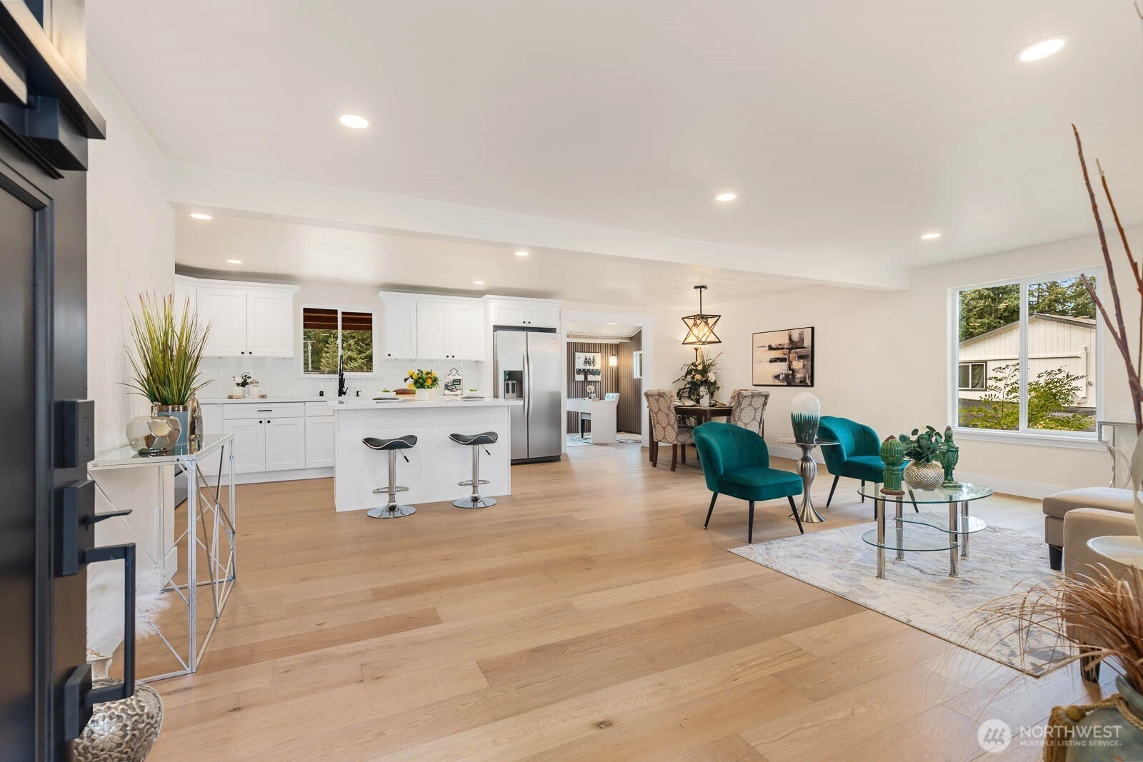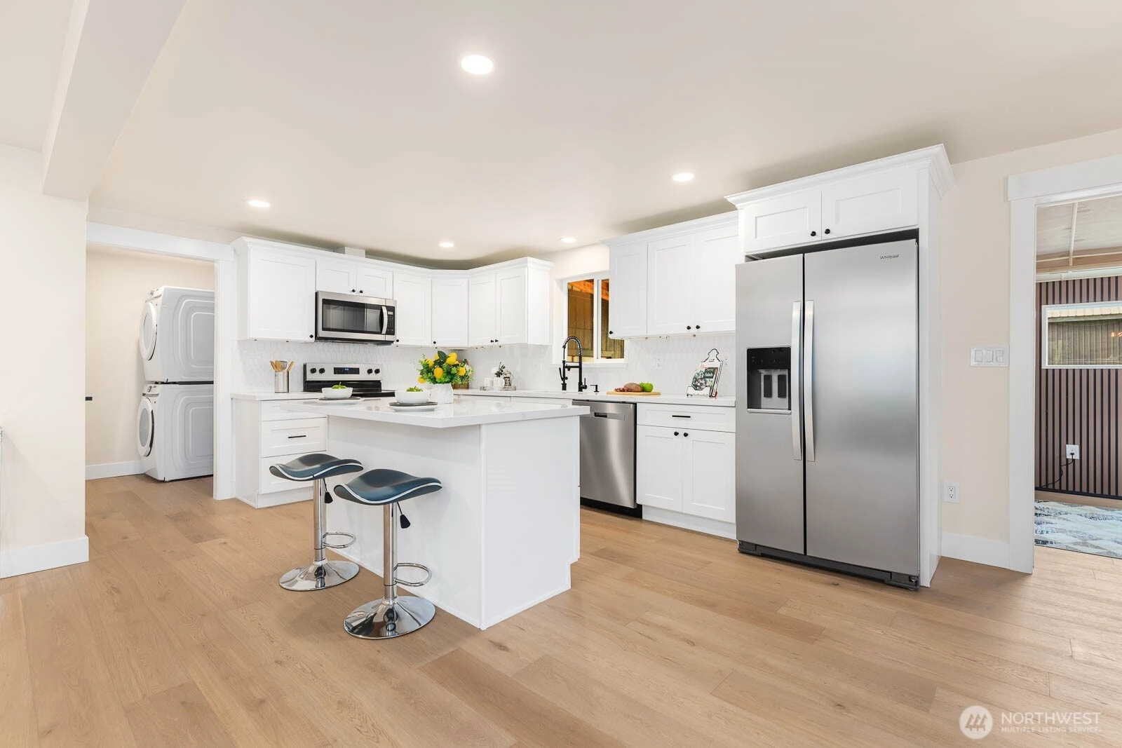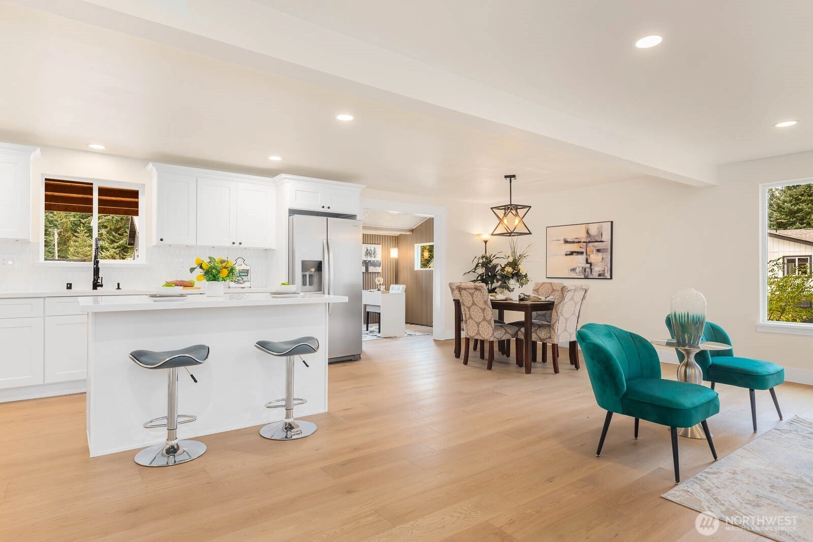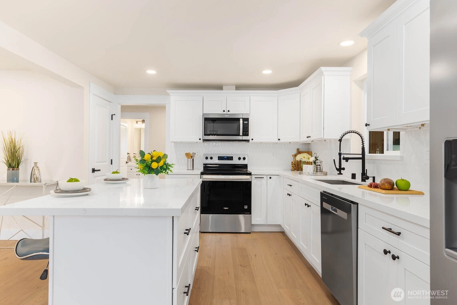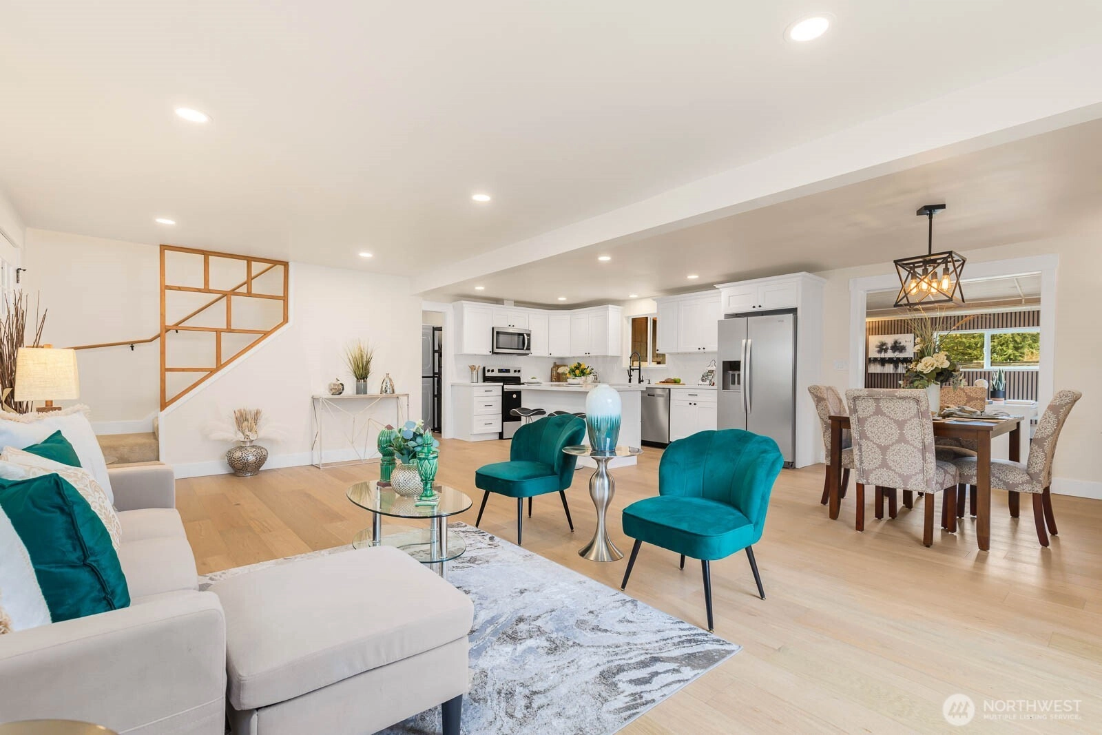 This beautifully renovated residence offers flexible living with 4 bedrooms, 2.75 baths, and an inviting open-concept layout. The brand-new kitchen shines with quartz countertops, SS appliances, and a spacious island perfect for gatherings. Enjoy year-round comfort with a mini-split heating & cooling system. The home also features a bonus/den area plus a versatile outdoor office, or entertaining space. Step outside to a massive 36’ x 36’ shop with soaring 15’ ceilings and an additional 12’ x 36’ lean-to—ideal for projects, hobbies, or storage. Sitting on a large, level half-acre lot with RV parking, this property also provides six covered parking spaces and endless room for your lifestyle needs. This is truly a rare find!
