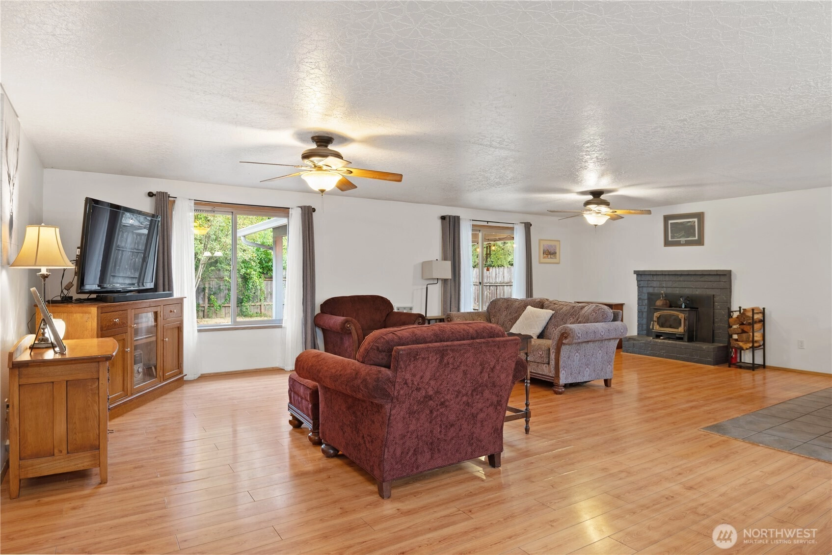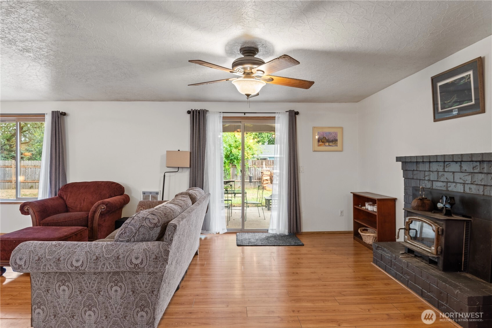 Must-see 3 bed, 2 bath charmer! This 1,442 sq ft home boasts an open layout centered around a kitchen with island seating and a large living room with a wood-burning fireplace. Features include a spacious primary suite with a private 3/4 bath. Located on a corner lot with a large, fenced yard and covered patio. Located in a great neighborhood with lots of parking! Ready for its next owner. Call today to schedule your showing