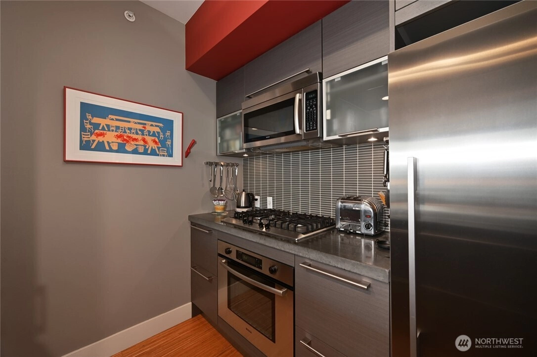 Seaplanes rise in the distance as you sip wine on the balcony. A gathering of friends on the community deck or a quiet dinner at home against the backdrop of city lights & Lake Union sailboats. It’s all possible at Enso Unit 1301, this luxury high rise in the heart of SLU. This coveted 01 corner unit offers a 1-bdrm + den/office layout w a modern kit, spacious bath & thoughtful storage throughout. Includes 1 secure garage pkg, 2 storage units & AC. Enso is a well-managed, luxury high-rise w top-tier amenities; concierge, gym, community deck & lounge, guest suite, EV charging, 2 pet policy, no rental cap & steps to award-winning restaurants, shops, and entertainment—city living at its finest.