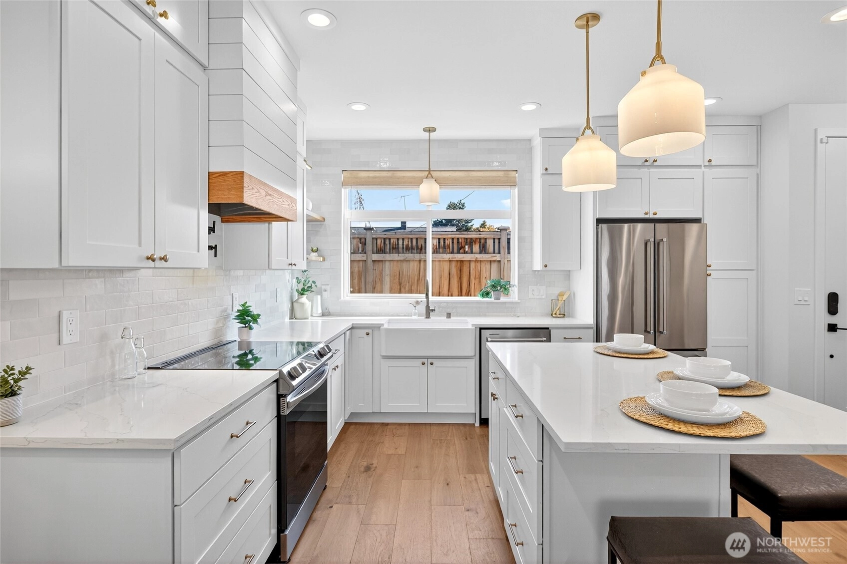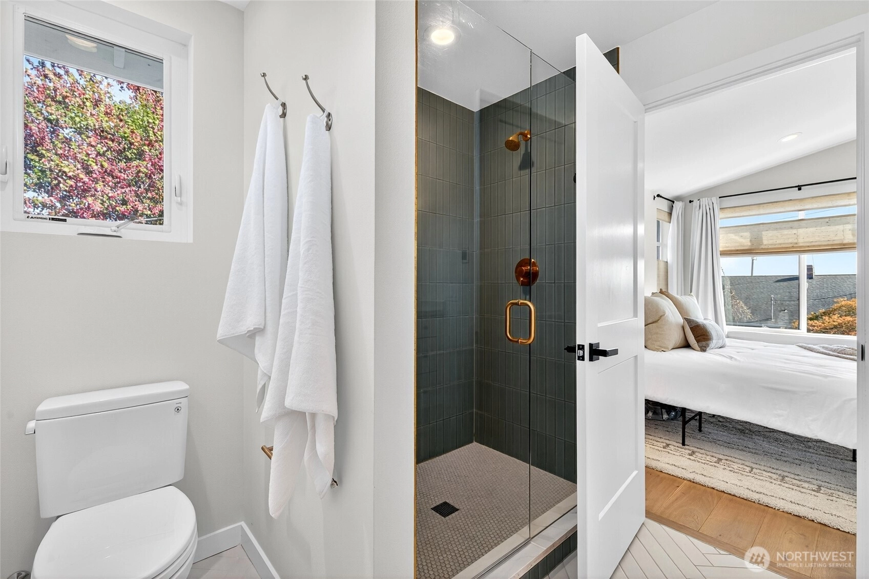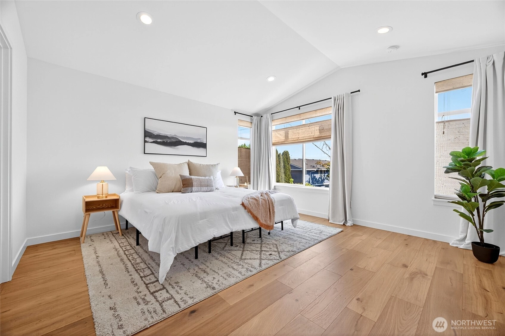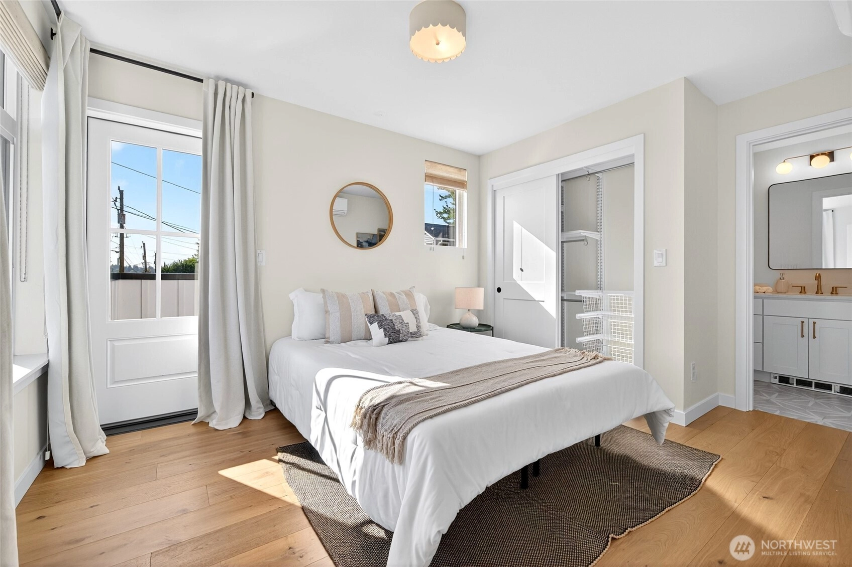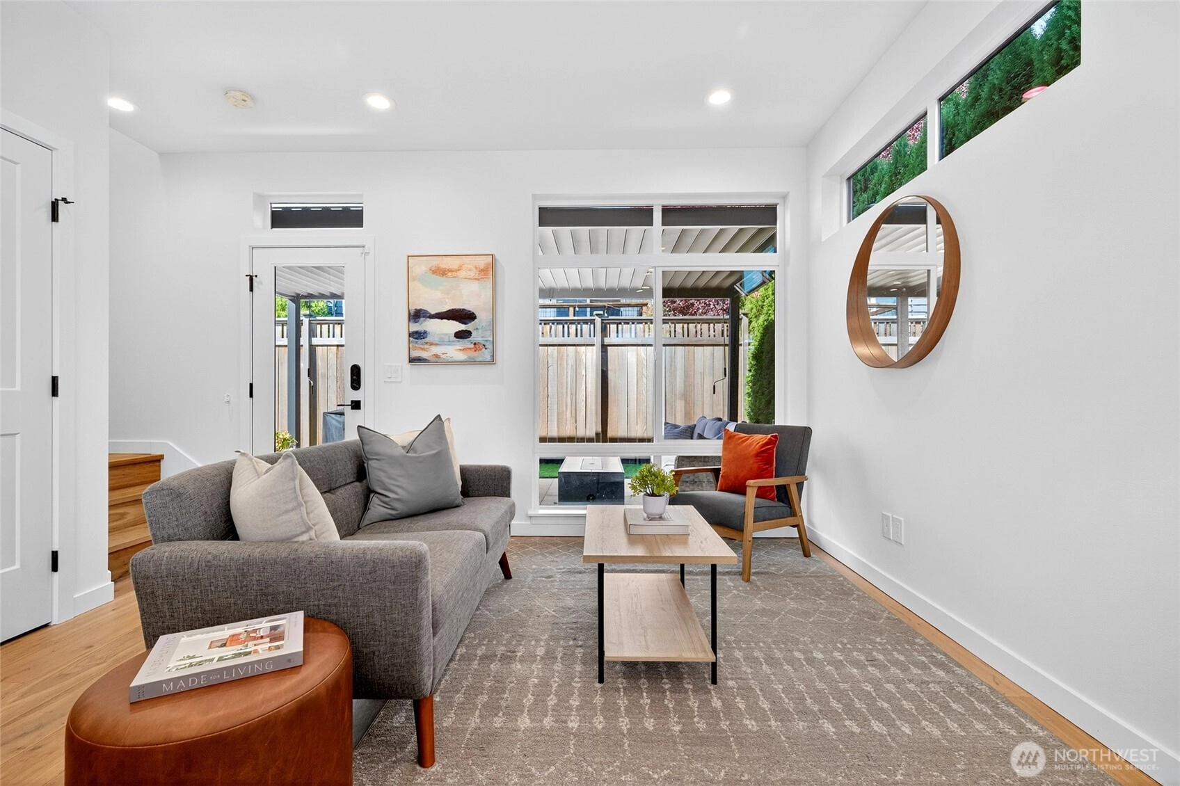 Featuring skyline views from the primary bedroom and Mt. Rainier views from the roof deck, this custom-built and designed home checks all of the boxes! Nine-foot ceilings on the main floor with shaker cabinetry, quartz counters, and pantry space. Private, backyard oasis complete with a pergola, heater, and turf for year-round enjoyment. Wide plank engineered hardwoods throughout. Vaulted ceilings in the primary bed with a walk-in closet, heated tile flooring, en-suite bath & sun-soaked windows. Main floor office/den/gym adds flexibility. Heated garage is equipped with an EV charger. Accessible commuting location, easy access to downtown, HWY 99, I-5, bus stops, and a 1/2 mile from the proposed West Seattle "Avalon" light rail station.