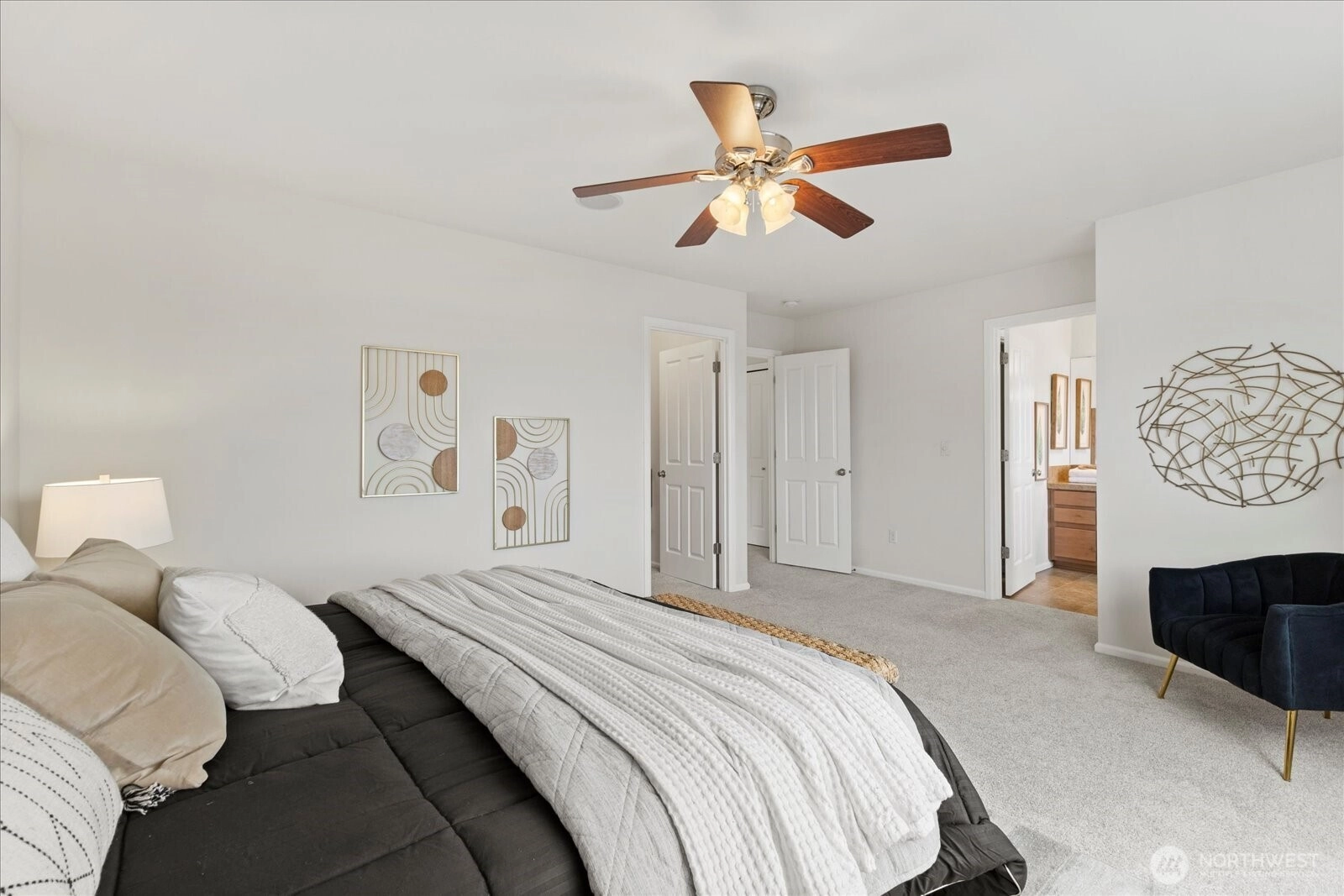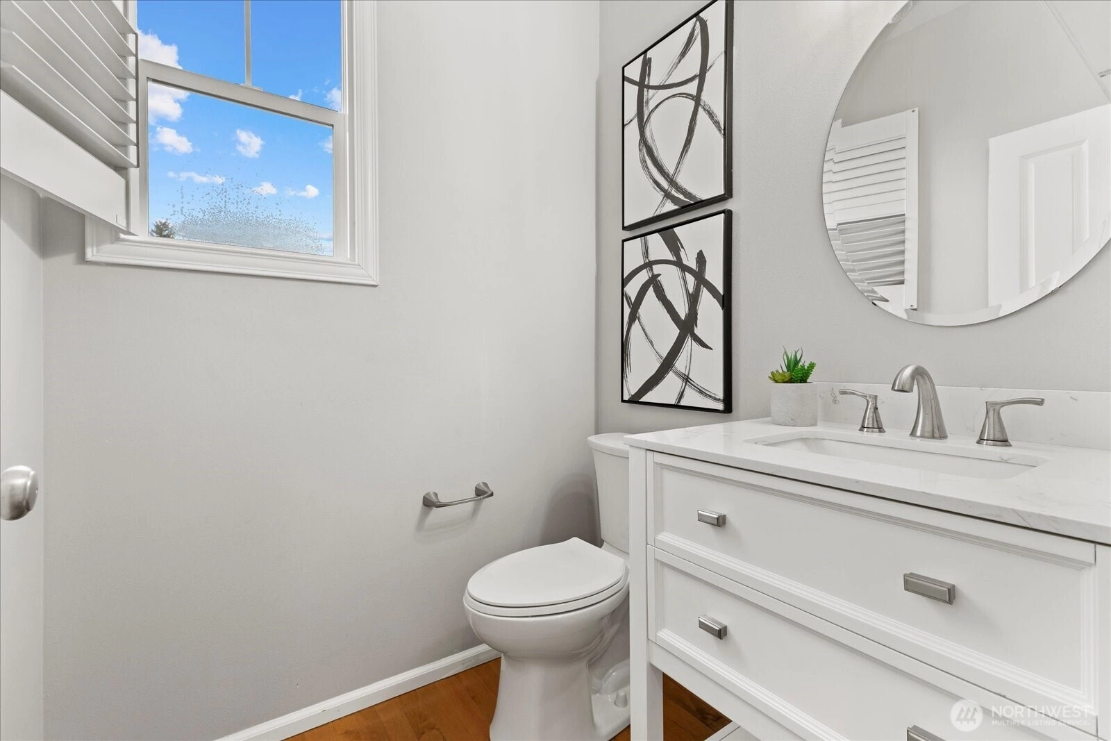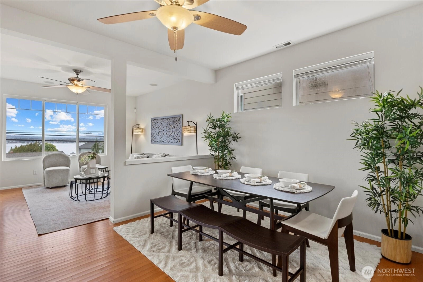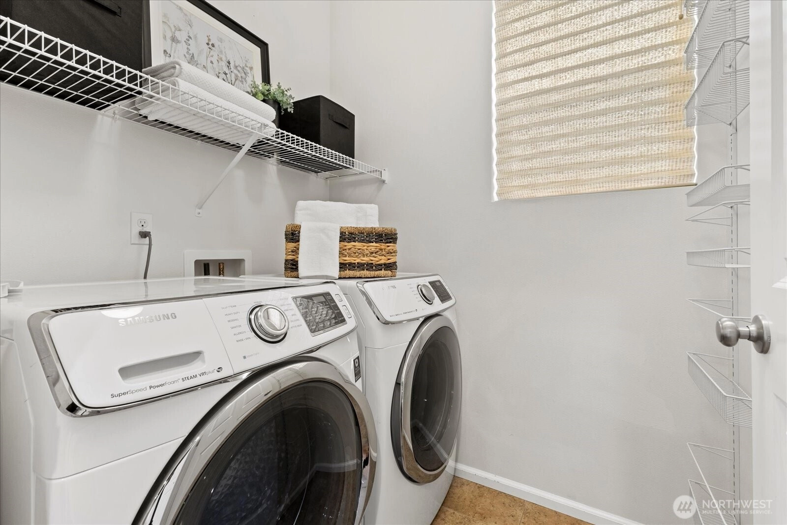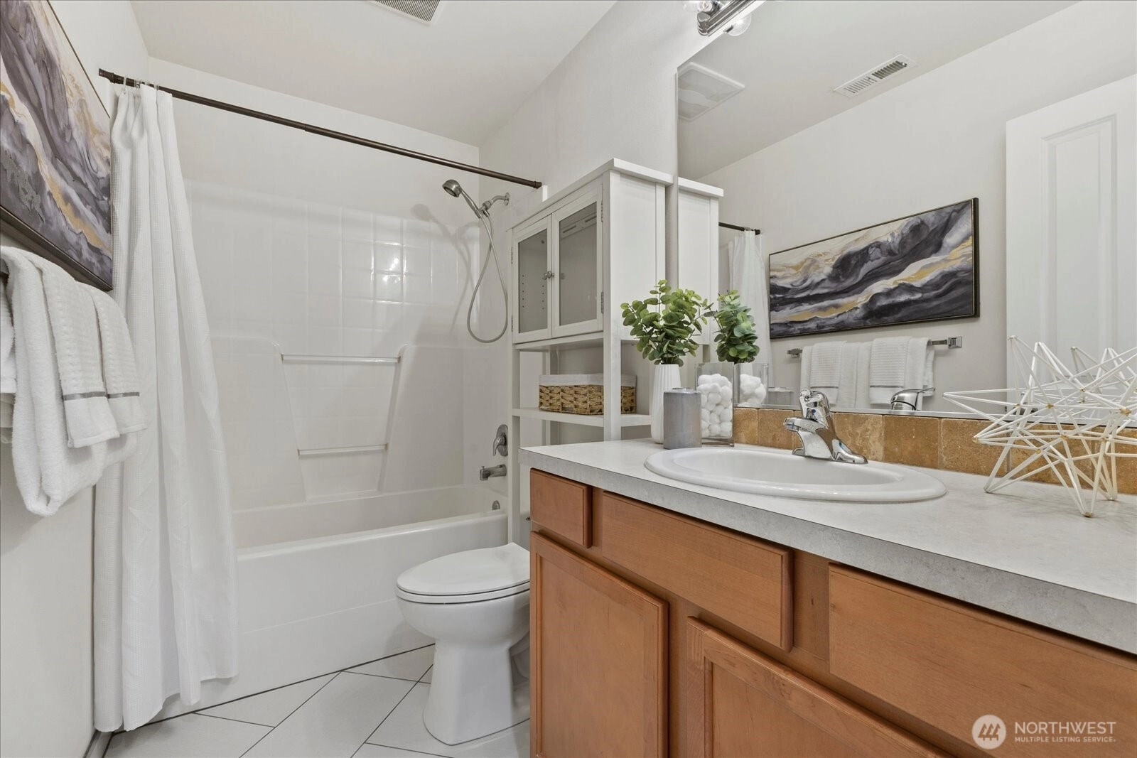 Lake Views! This 1,960 sq. ft. Lake Point home is perfectly placed to capture some of the best vistas in the neighborhood. The open great room with corner fireplace flows to a covered deck overlooking Lake Stevens. The kitchen features granite tile counters, Samsung appliances, and a breakfast bar. Upstairs, the primary suite offers a spa-inspired bath and walk-in closet. Central A/C, hardwired surround sound, new water heater installed in 2024, and a serviced furnace ensure comfort. A private driveway, oversized garage, and fully fenced patio complete this exceptional property—just minutes to Frontier Village and Lundeen Park.