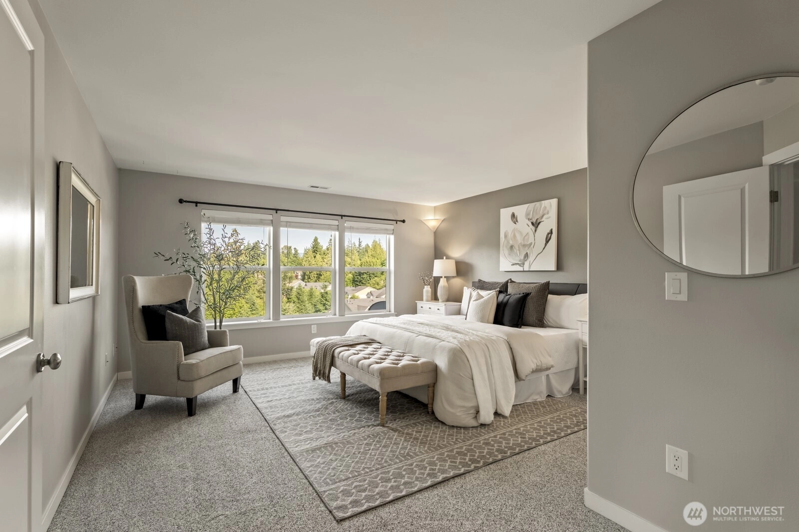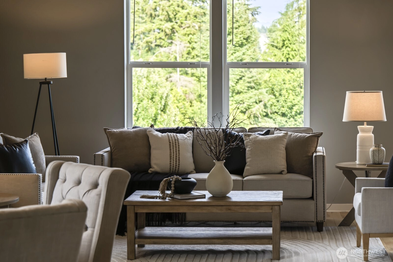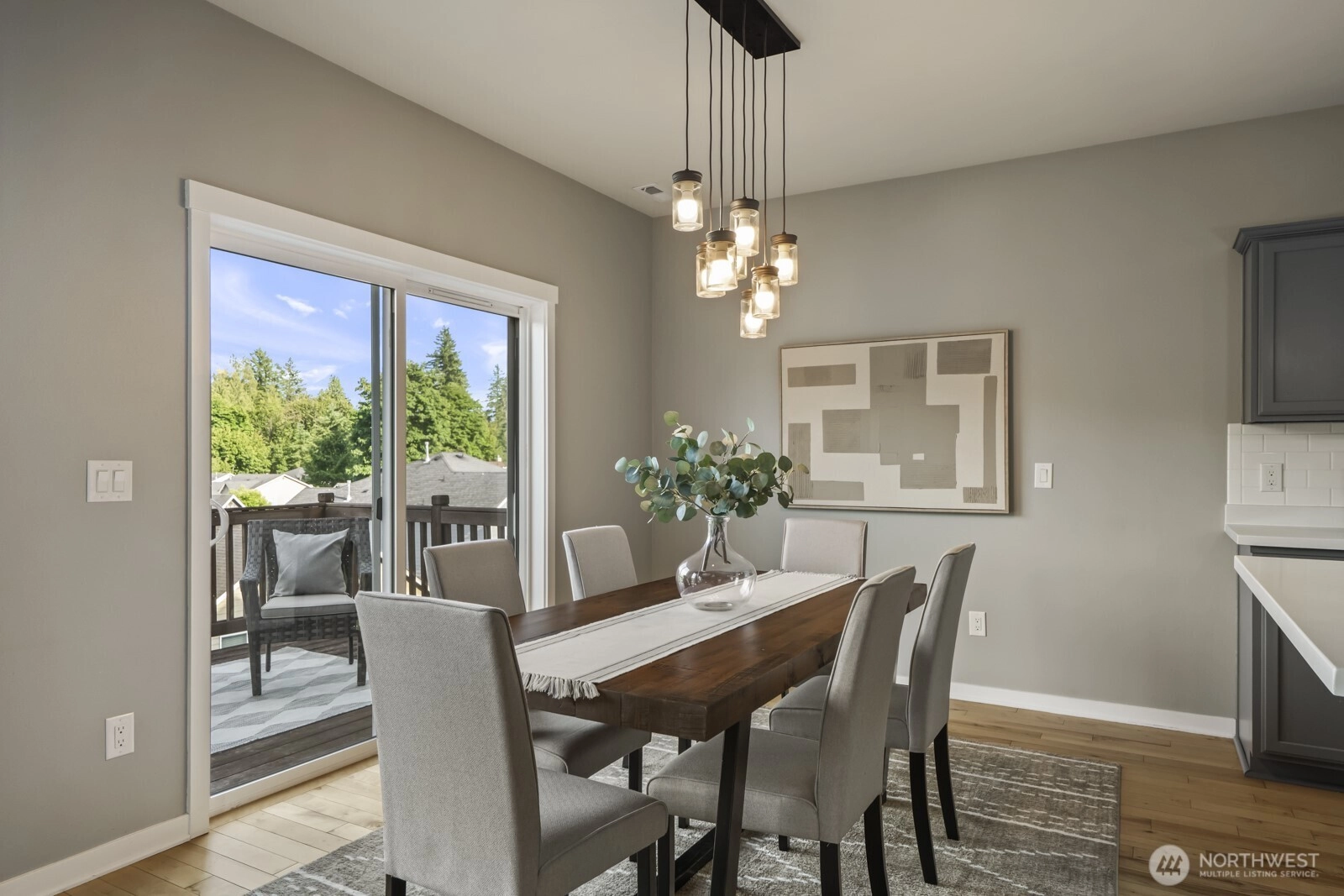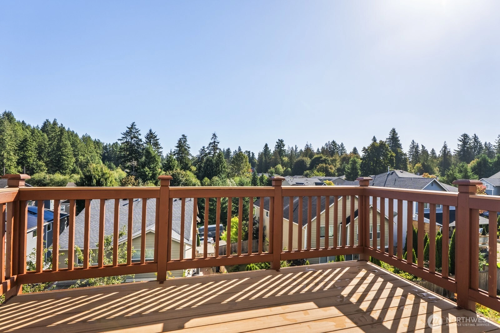 Welcome to your secluded Maple Valley retreat! Enjoy an enviable, newly added deck with true tree-house seclusion & stunning privacy—your view is to the treetops, not to the neighbor's living room. Spacious great room w/ high-end finishes. Gourmet Kitchen boasts quartz, subway tile, stainless appliances, walk-in pantry, & mudroom w/ built-ins. Baths feature sleek tile & quartz. Luxurious Primary Suite w/ step-in shower (dual heads), custom closet built-ins, & laundry chute. Enjoy morning sun in the primary facing east! Deck opens to a fully fenced turf backyard for low-maintenance entertaining. Don't miss the charming wild fruit orchard just beyond the fence! ***Photos virtually staged.