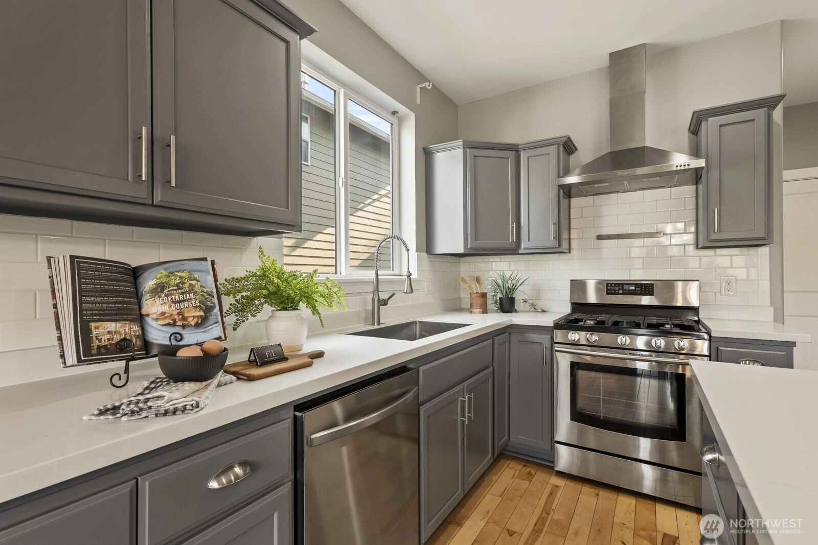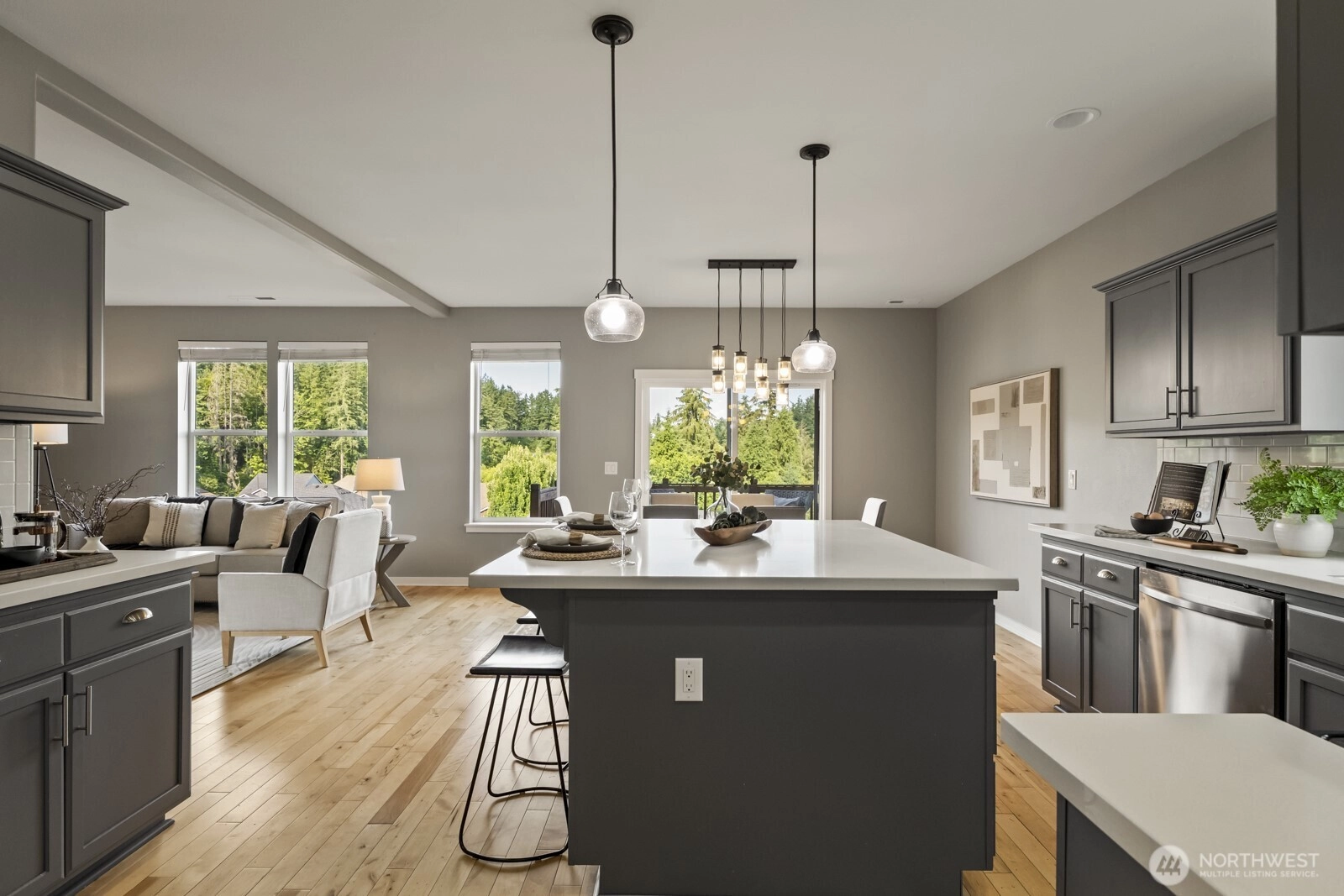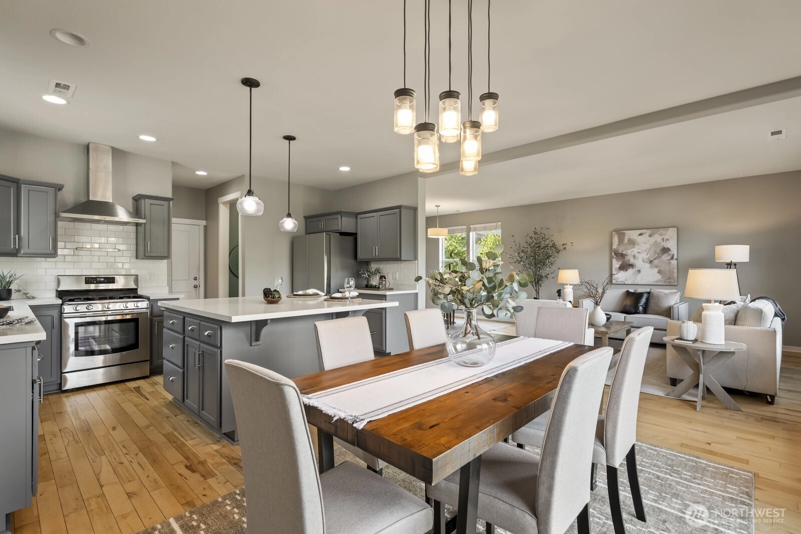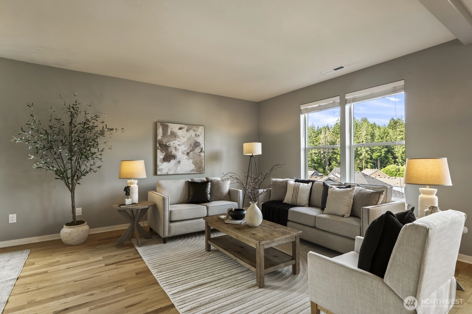 Welcome to your secluded Maple Valley retreat! Enjoy an enviable, newly added deck with true tree-house seclusion & stunning privacy—your view is to the treetops, not to the neighbor's living room. Spacious great room w/ high-end finishes. Gourmet Kitchen boasts quartz, subway tile, stainless appliances, walk-in pantry, & mudroom w/ built-ins. Baths feature sleek tile & quartz. Luxurious Primary Suite w/ step-in shower (dual heads), custom closet built-ins, & laundry chute. Enjoy morning sun in the primary facing east! Deck opens to a fully fenced turf backyard for low-maintenance entertaining. Don't miss the charming wild fruit orchard just beyond the fence! ***Photos virtually staged.