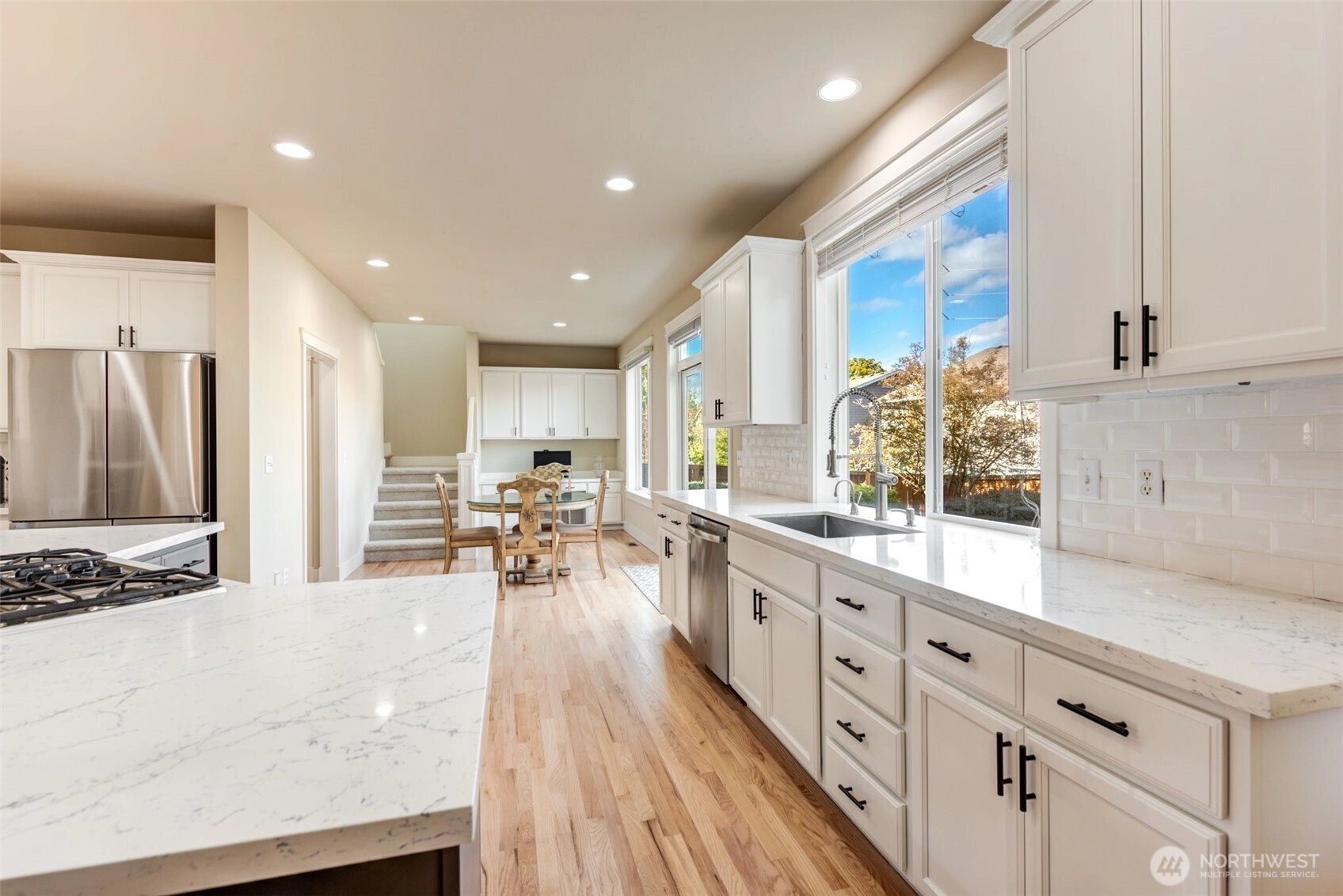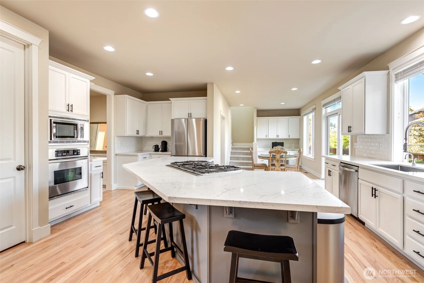 Immaculate Fernwood Hills home in the sought-after Northshore School District! Spacious 4,065 sq ft layout offers 4 beds, bonus, office and 3.25 baths. Fresh interior paint and new carpet throughout create a move-in ready feel. Main flr features extended hardwoods, formal dining, open great rm with gas fireplace, and a chef’s kitchen w/ quartz counters, stainless appliances & walk-in pantry. Upstairs, the generous primary suite includes a spa-style 5-piece bath and walk-in closet. Dual staircases add elegant flow and functionality. Enjoy year-round comfort with central A/C. Private backyard patio perfect for entertaining. Close to top-rated schools, parks, shopping, easy access to I-405 & I-5. A beautiful blend of comfort, style & location.