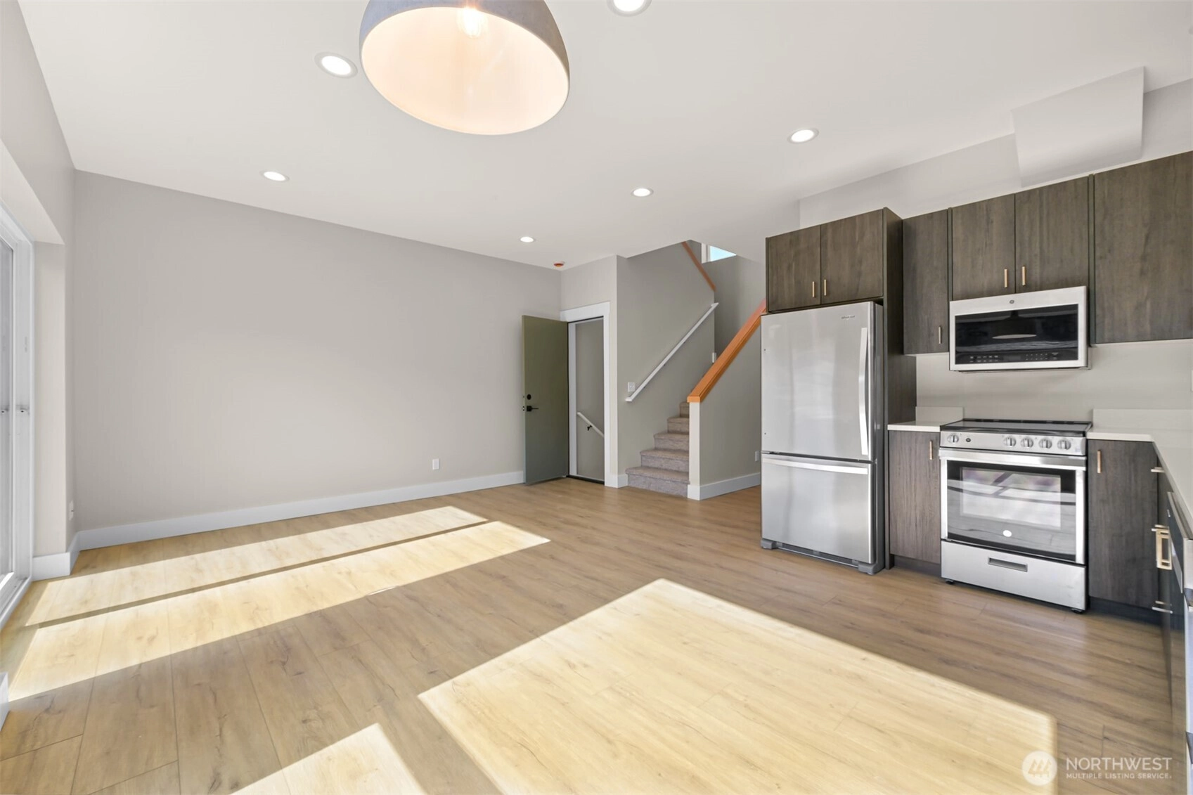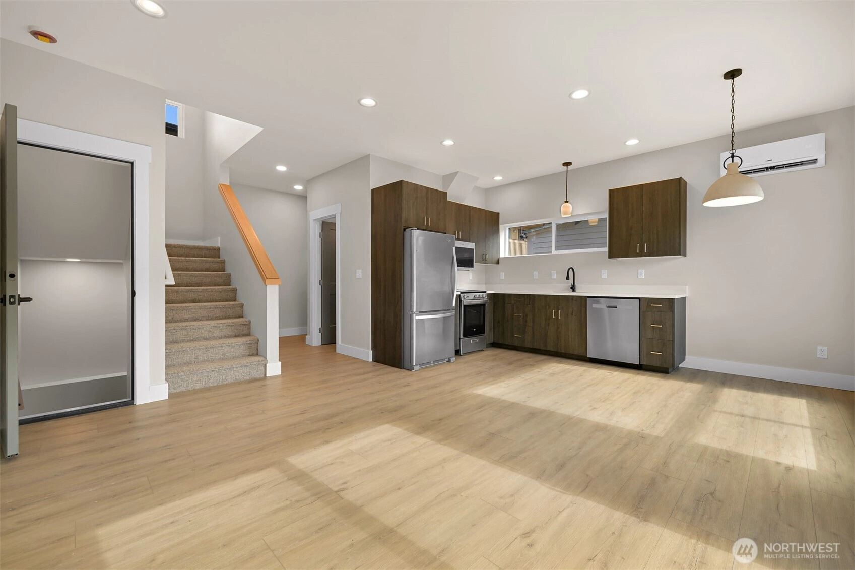 Welcome to a brand new construction townhome in Bellingham! 984 square feet of living space w/ 3 bedrooms, 1.5 bathrooms, + addl 480 SF + spacious flex area downstairs - great for storage, workout equipment, etc. Kitchen has quartz countertops, new appliances (option for extended warranty) and locally-made cabinetry. Built to current energy code with high-efficiency mini split heating & air conditioning. Double one-hour fire walls between this & neighboring unit. Located on a quiet street with off-street parking & ~9x20' fully fenced yard space. Roosevelt Park is 1 min away, just off the end of the alley! An easy walk/bike to Barkley Village, Trader Joe's, & Whatcom Falls Park - come live in the heart of Bellingham!