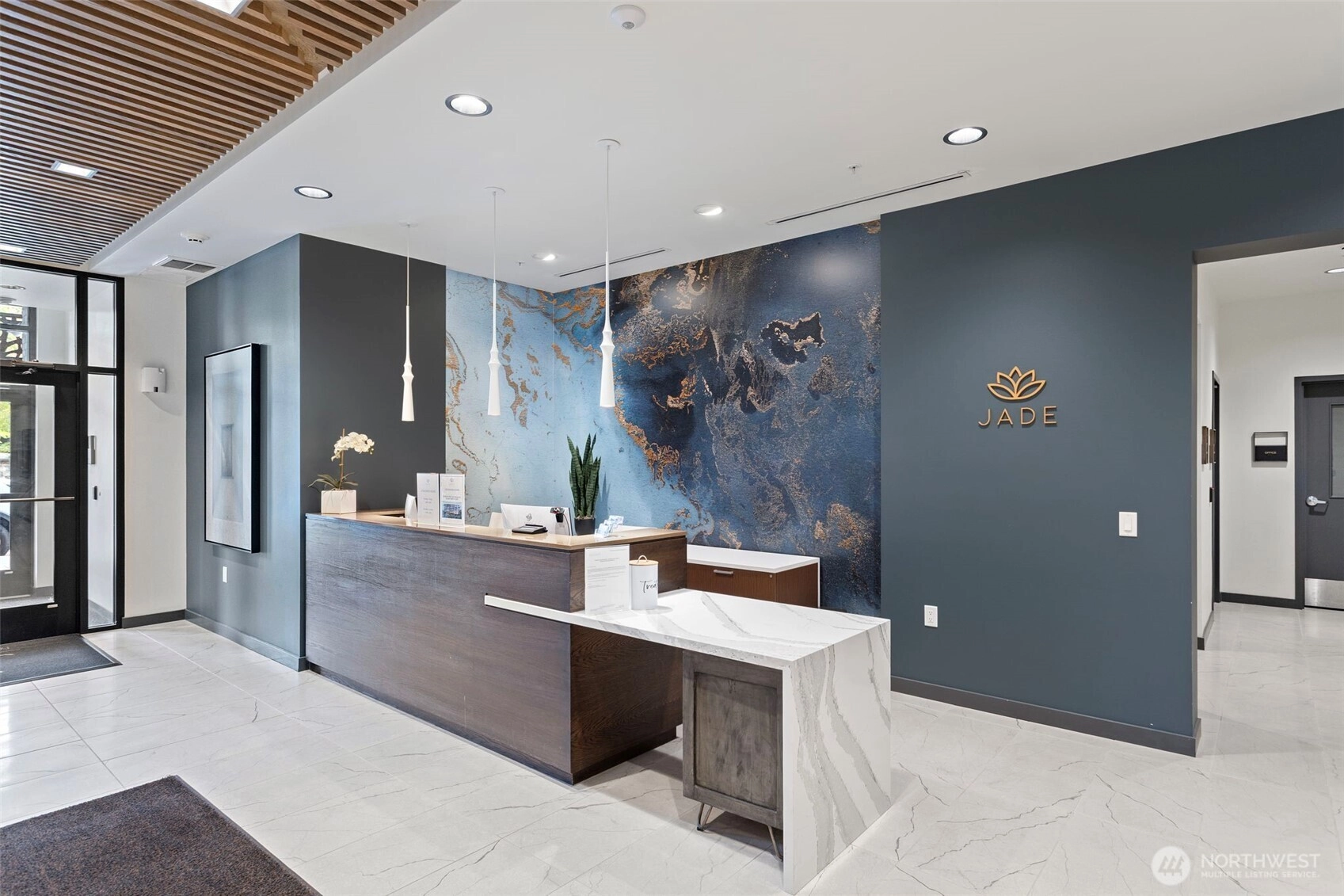 Welcome to The Jade Residences, where modern design meets resort-style living in the heart of Totem Lake. This stunning 1-bedroom plus den/2nd bedroom, 1.75-bath home features soaring ceilings, oversized windows, and luxury finishes throughout – including quartz countertops, stainless steel appliances, and a full-size washer/dryer. Enjoy top-tier amenities: a fully equipped fitness center, rooftop deck with panoramic views, stylish lounge spaces, and even a dog wash station. Just minutes from Totem Lake Village, you'll have easy access to high-end retail, dining, theaters, parks, Evergreen Health Centers, the transit center, and top-rated schools.