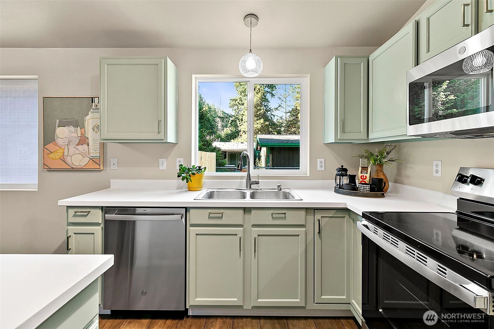 Welcome home to this beautifully remodeled rambler! Every inch of this home has been updated to blend modern style with everyday comfort. Step inside to discover gorgeous new LVP flooring, fresh interior paint, crisp new trim, and contemporary hardware that add a polished touch. Stylish new lighting creates a warm and inviting atmosphere. The kitchen is a true standout—completely updated with brand-new SS appliances that convey. A new composition roof adds peace of mind and long-term value. Outside, enjoy a spacious, level, fully fenced lot—ideal for entertaining, gardening, or play—with plenty of room for RV parking. You’re just minutes from shopping, restaurants, parks, and the Sounder train. This home has it all and all the work is done.