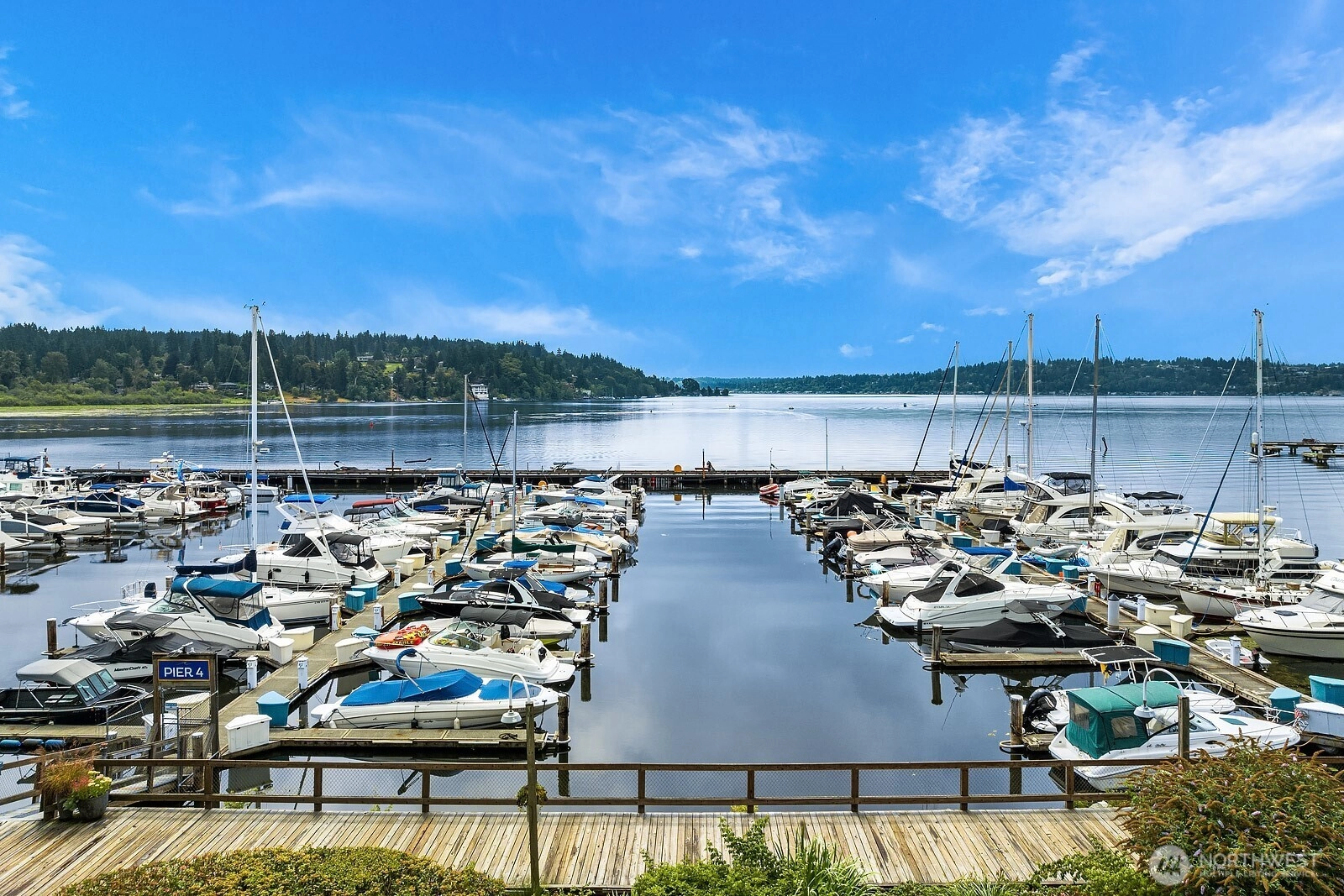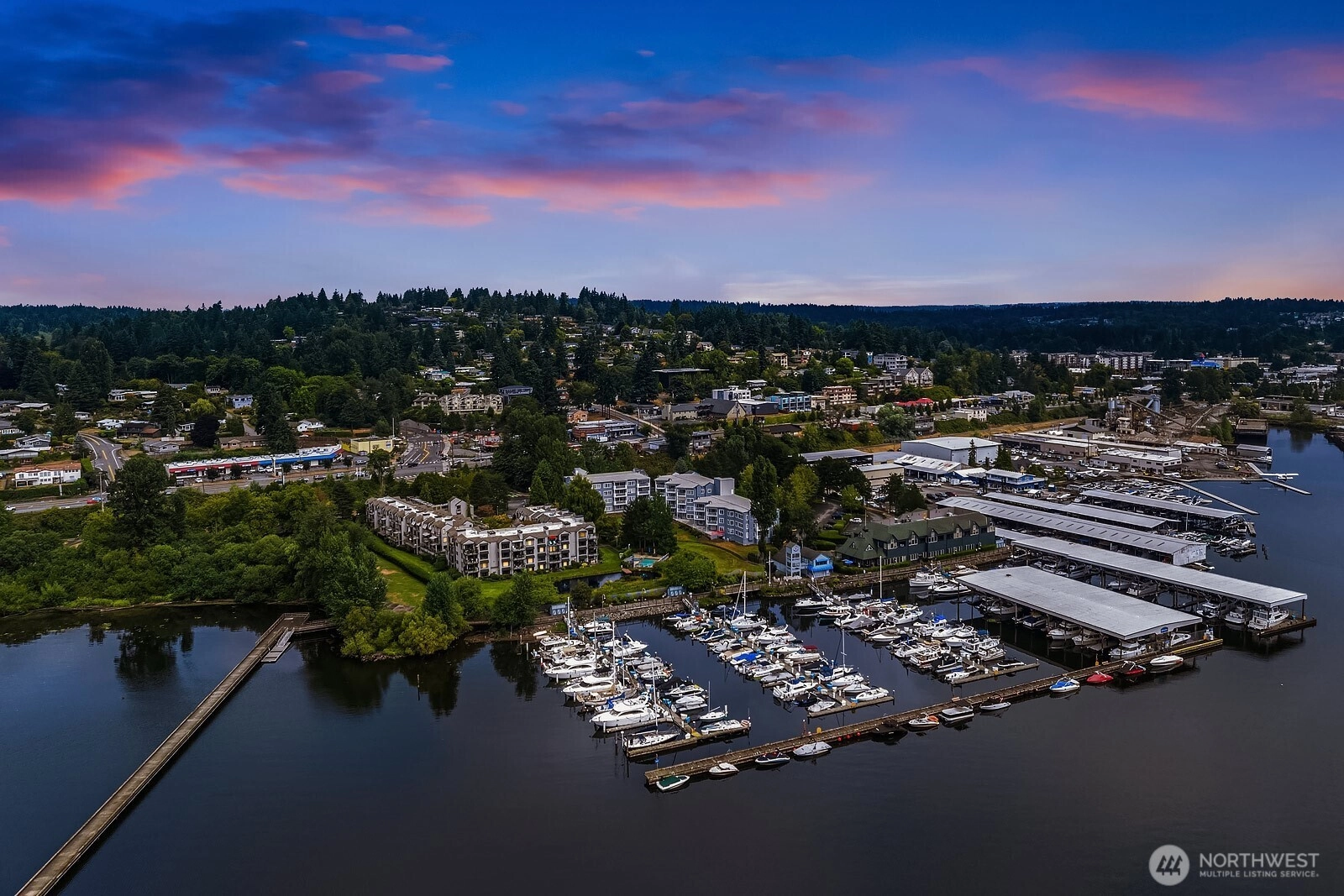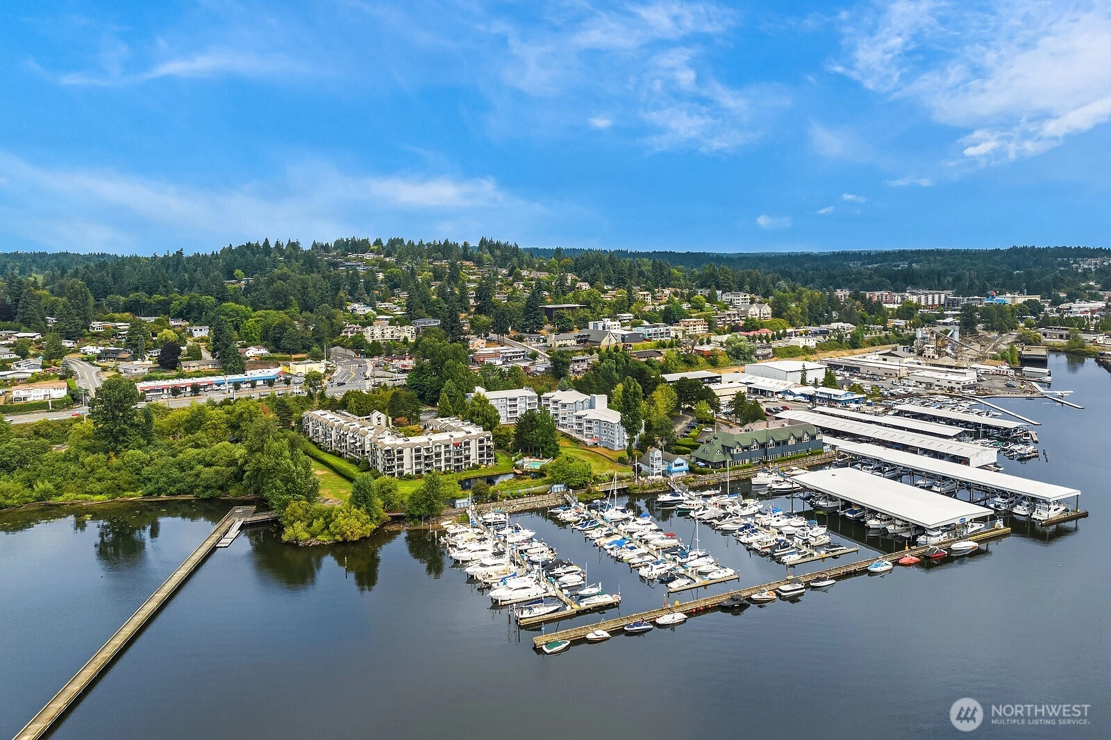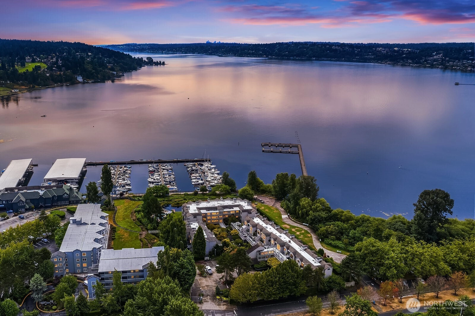Discover effortless elegance at Harbour Village Condominiums, a gated waterfront community on the serene shores of Lake Washington. This beautifully designed 1,450 sq. ft. home offers two spacious bedrooms with cathedral ceilings and ensuite baths, creating a perfect blend of comfort and sophistication. The open-concept kitchen features rich cabinetry, premium stainless appliances, and a breakfast bar overlooking inviting living and dining spaces. Gather around the gas fireplace, surrounded by custom built-ins and warm designer finishes, or enjoy fresh air on three private decks. Residents enjoy resort-style amenities—including a pool, hot tub and direct access to the Burke-Gilman Trail, Log Boom Park, Pier, Beach and nearby cafés.