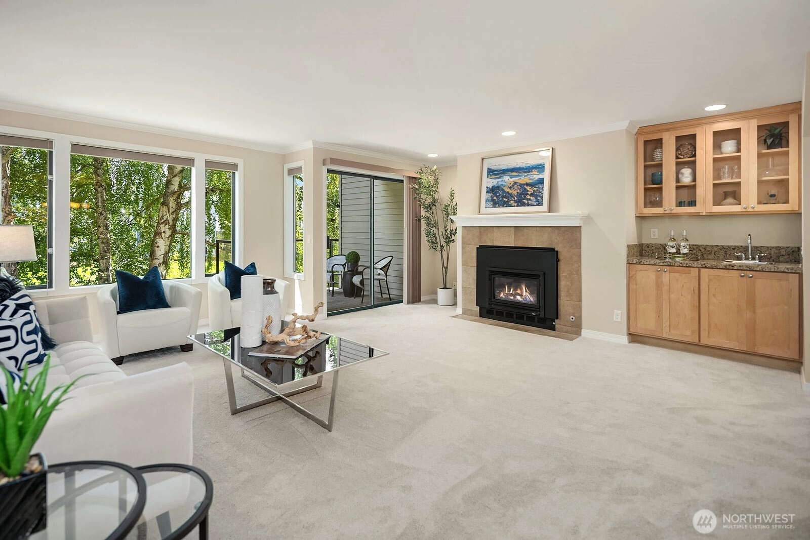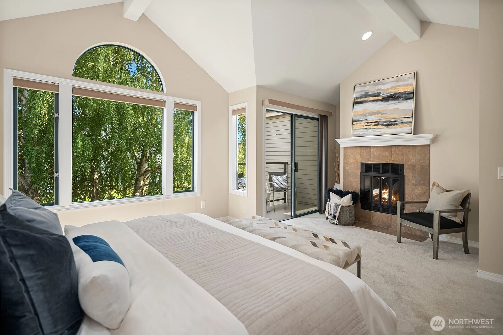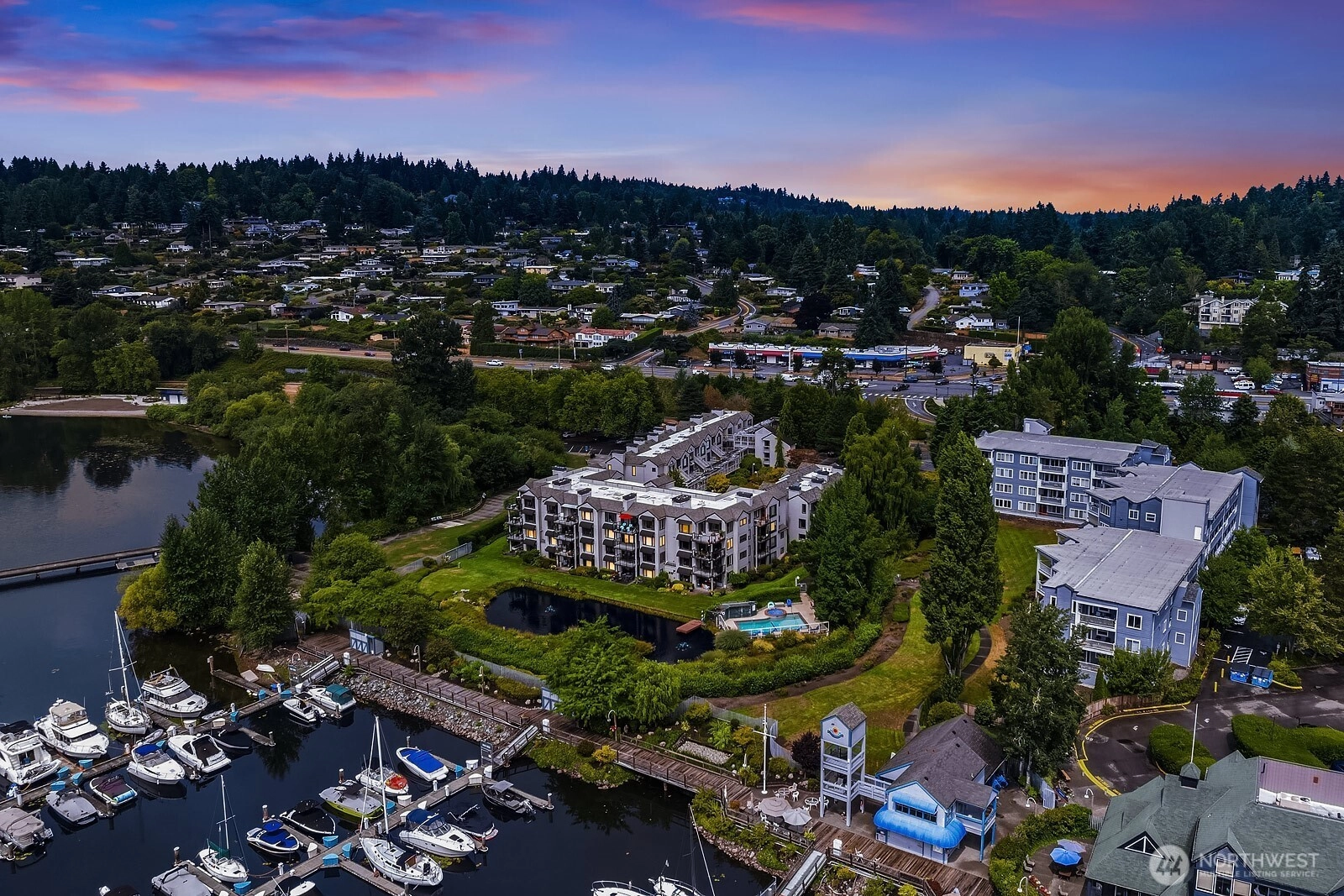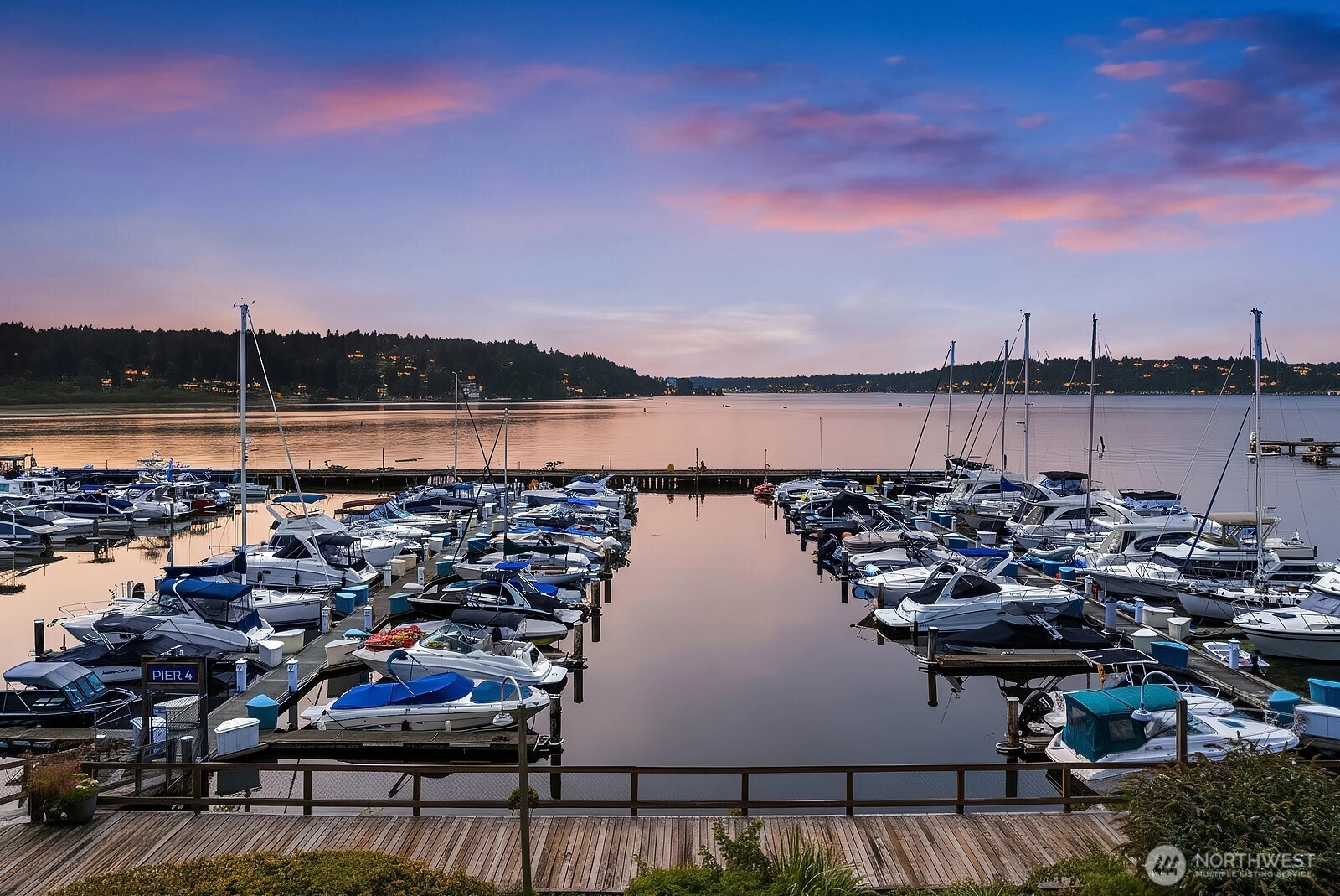 Discover effortless elegance at Harbour Village Condominiums, a gated waterfront community on the serene shores of Lake Washington. This beautifully designed 1,450 sq. ft. home offers two spacious bedrooms with cathedral ceilings and ensuite baths, creating a perfect blend of comfort and sophistication. The open-concept kitchen features rich cabinetry, premium stainless appliances, and a breakfast bar overlooking inviting living and dining spaces. Gather around the gas fireplace, surrounded by custom built-ins and warm designer finishes, or enjoy fresh air on three private decks. Residents enjoy resort-style amenities—including a pool, hot tub and direct access to the Burke-Gilman Trail, Log Boom Park, Pier, Beach and nearby cafés.