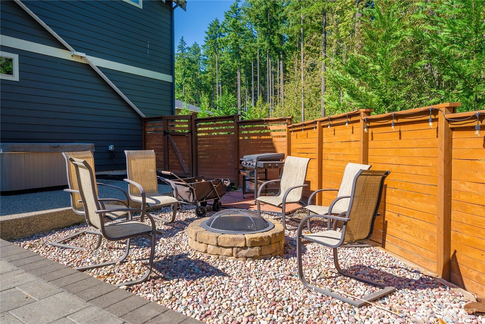 Tehaleh Dream home on desired Forest Park Greenbelt! Resort style backyard is private w/beautiful views, hot tub, covered & expanded patio w/ indoor/outdoor fireplace, fire pit, garden space, seating areas and more! Inside a grand engineered hardwood staircase sets the tone for the 4 bdm, home w/ 2 flex rooms for gym?office? theater room? or use one as a 5th bdm. Walls of beautiful wrapped windows. The primary has a peekaboo view of the mountain, spa inspired bath w/stand alone tub, lg walk-in closet, the other bdms have greenbelt views. The generator conveys/ with dedicated outlet & AC. Tehaleh features 40+ miles of trails, walk to the many parks right from the front yard trail! Rare home, very few of this floor plan built in Tehaleh!