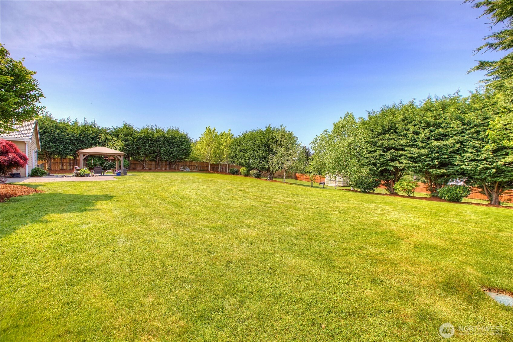 Experience peaceful, quiet, country-like living in the beautiful gated community of Lacamas Valley Ranches West! Custom-designed rambler sits on 1.16-acre lot surrounded by mature landscaping. 2285 SF, 3 bed & 2.5 bath, featuring soaring vaulted ceilings, hardwood floors, cozy gas fireplace PLUS freestanding wood stove. Open-concept kitchen includes center island, pantry & double ovens. Primary suite with soaking tub, custom walk-in closet & slider that opens to backyard oasis. Fully Fenced yard with beautiful water feature, gazebo & garden shed. Ample space for RV parking, future shop or even a pool! FRESH exterior paint, newer oversized H2O tank & Central AC. Located just 15 min to JBLM & close to restaurants, shopping, movies & schools.