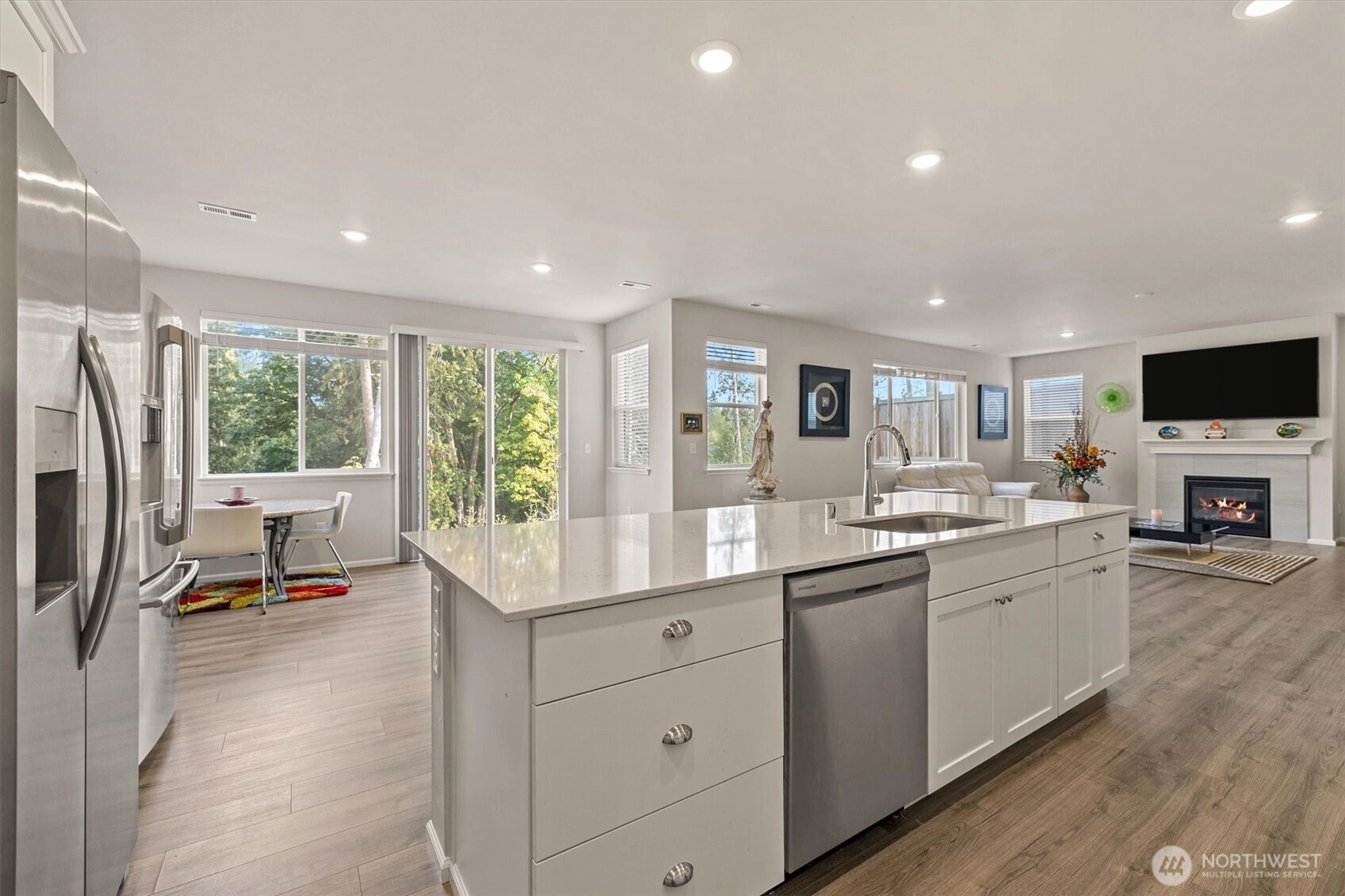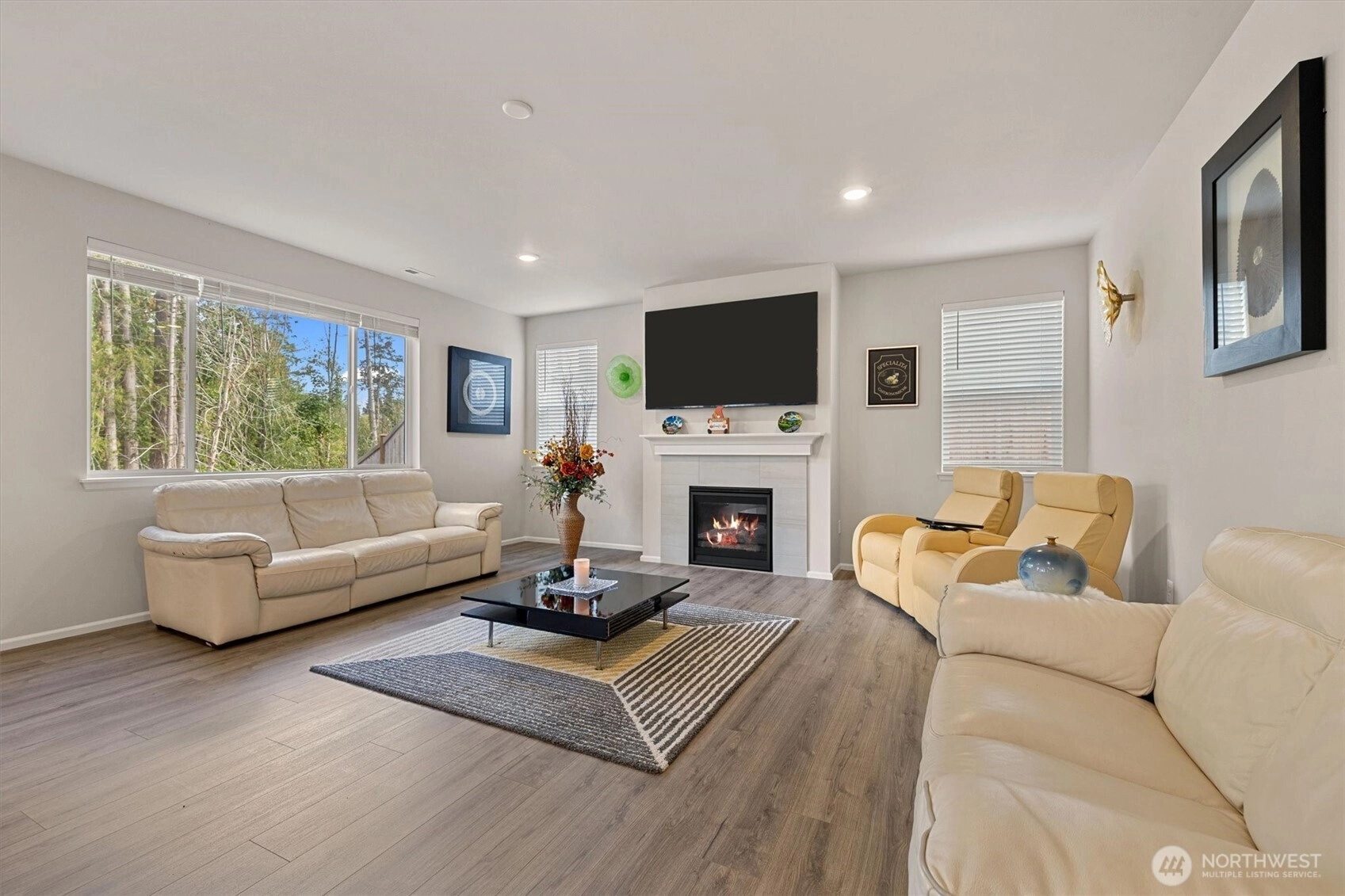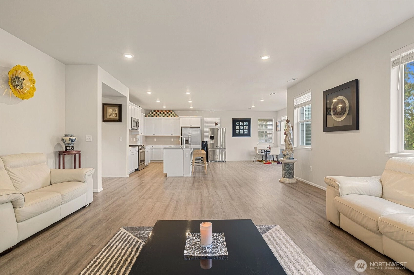 Like-new 2024 two-story home in Chandler’s Reserve offering 3,245 sq. ft. on a 6,970 sq. ft. lot with 3-car garage and greenbelt privacy. Multi-gen floor plan includes a private suite with separate entrance, living room, kitchenette, bedroom, bath & laundry. The main home features open concept living/dining, vinyl plank floors, quartz counters, and stainless appliances. Upstairs offers 3 bedrooms and a versatile loft. Added details include window blinds, ample natural light, and thoughtful built-in storage. Stanwood, known for its small-town charm, sits along the Stillaguamish River near Port Susan and offers outdoor recreation with convenient proximity to I-5 for commuting.