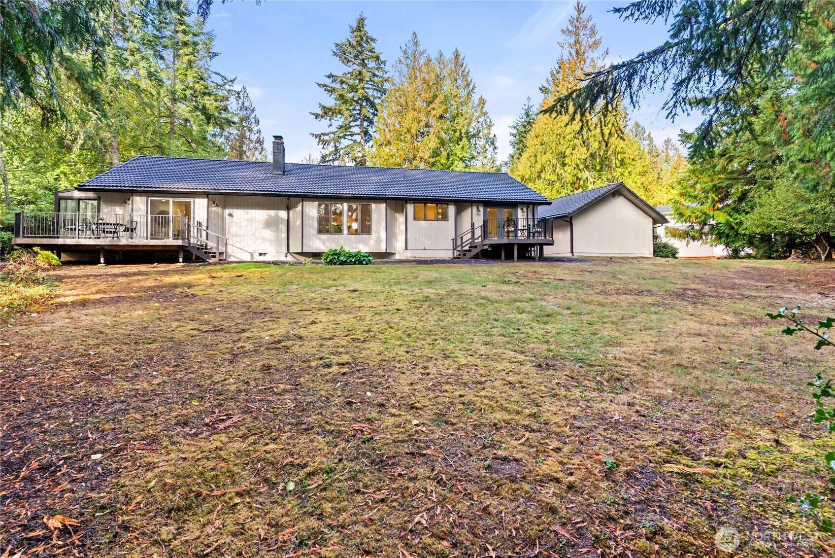 Modern luxury meets timeless design! Single Story with half acre w/private setting & unbelievable finishes; 2812sf, 4bed, 2.25bath w/ bonus living room or flex room. Updates throughout: New counters, cabinets, backsplash, flooring, paint, tile work, custom lighting, high-end fixtures & more! The kitchen boasts a LARGE island & new appliances. Sunroom breakfast nook & lovely solarium for indoor garden plumbed w/sink. Walk-in pantry w/spacious laundry. Wood burning fireplace & electric. Sleek modern spa styled bathrooms. Primary offers his/hers reading lights, walk-in shower & closet, custom tile & plenty of natural light. Deck access leads to private backyard. Tile roof, newer AC & water heater. This is a must see property to appreciate the updates and detailed finish work. Just over the bridge, minutes from Met Market & Downtown Gig Harbor this is one of the best values you can find that will feel like new construction. Call today to tour!