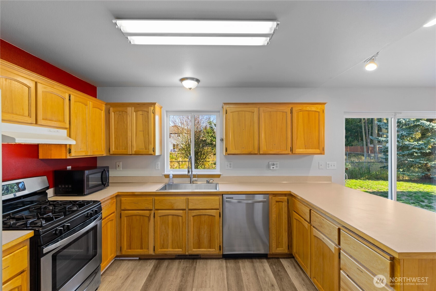 Welcome home to this beautifully maintained single-level gem in the sought-after East Park neighborhood. Enjoy an open floor plan with soaring cathedral ceilings, a spacious kitchen with oak cabinets, stainless steel appliances, and a walk-in pantry. The primary suite offers a walk-in closet and updated bath with a new walk-in tub. Relax by the cozy gas fireplace or step outside to your fully fenced yard with lush landscaping, fruit trees, and a patio for entertaining. Conveniently located near Fort Nugent Park, shopping, and NAS Whidbey.