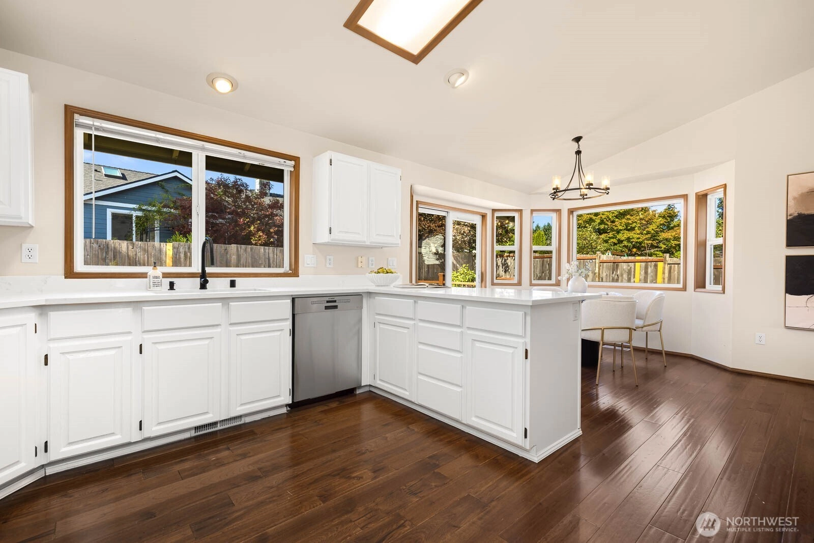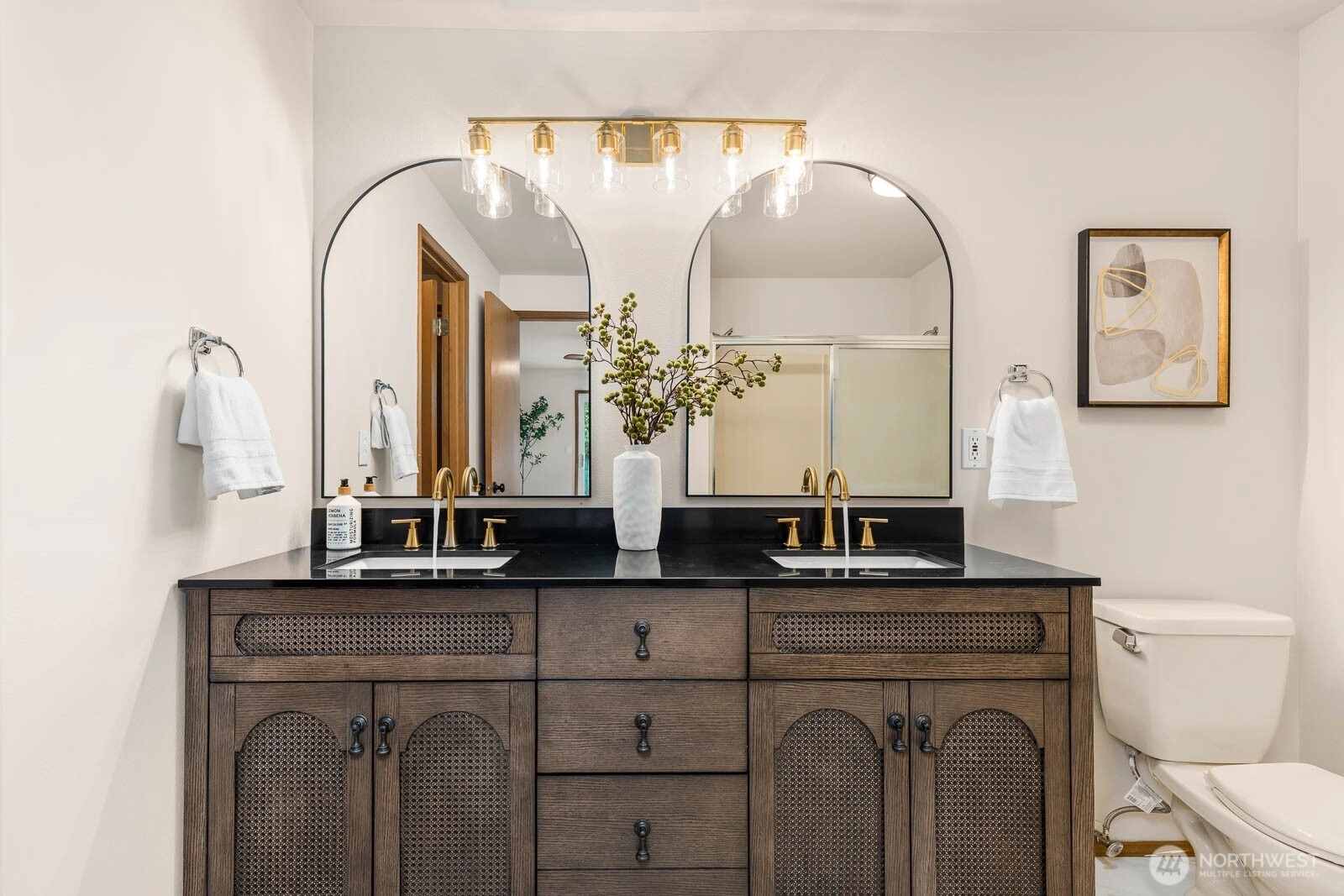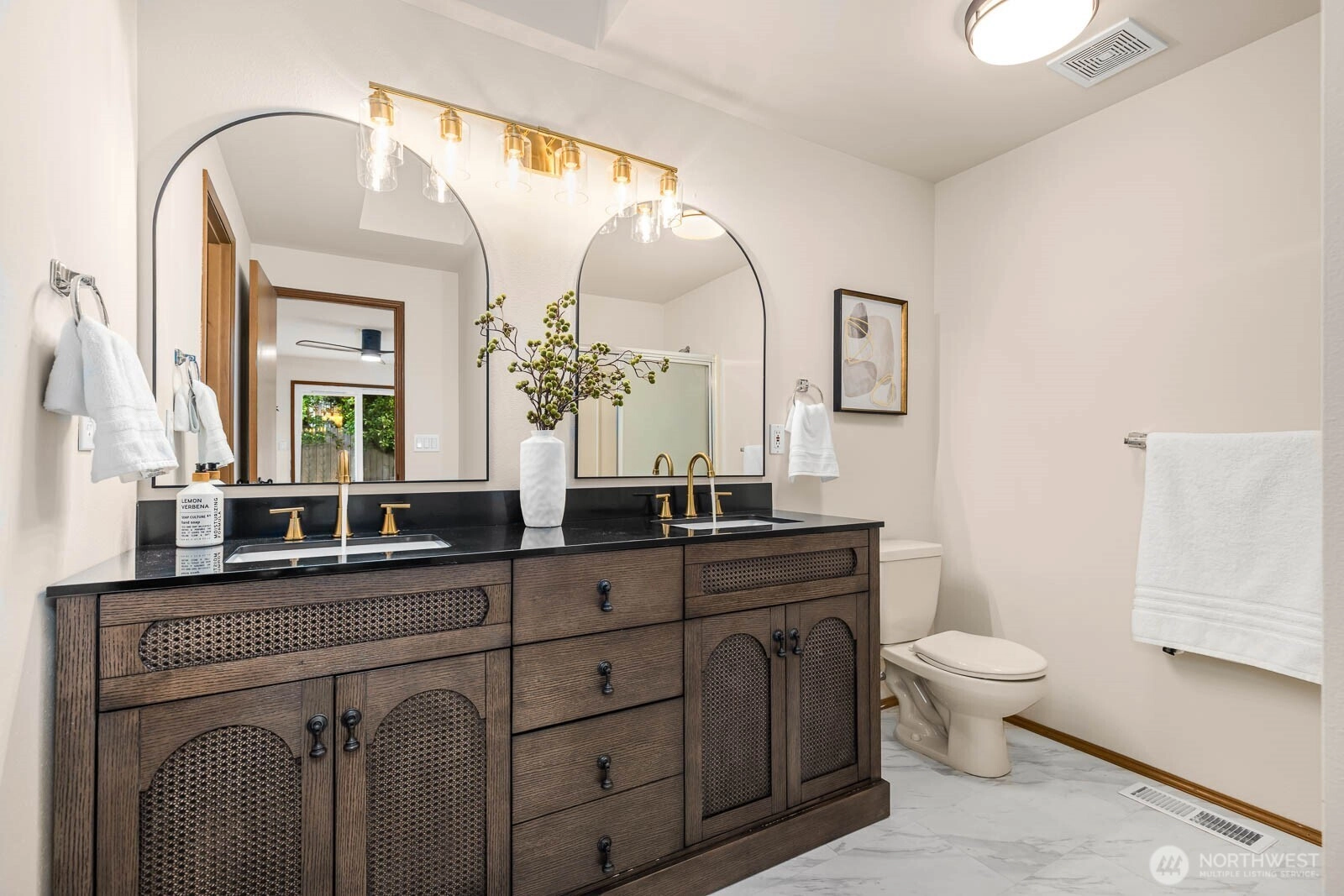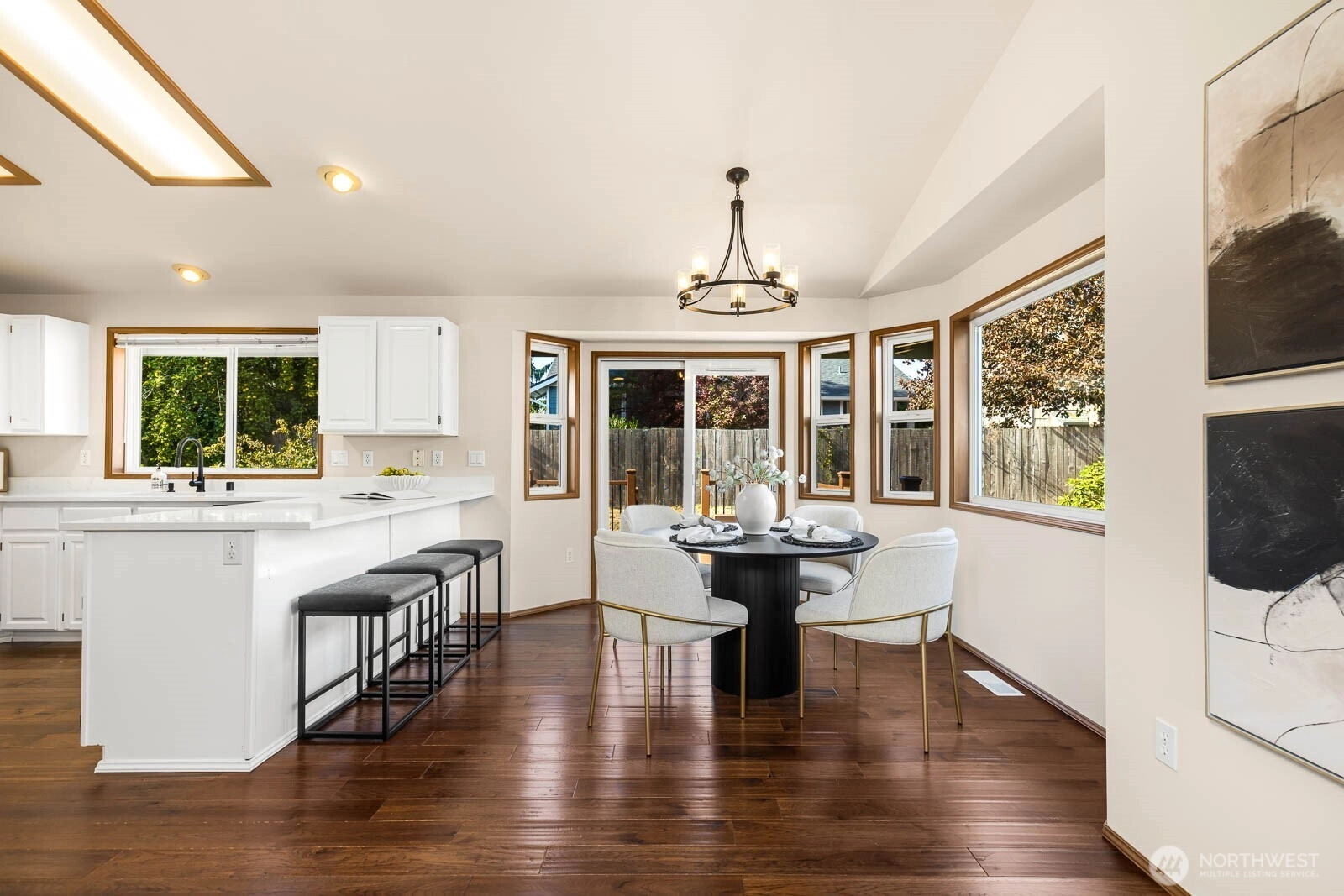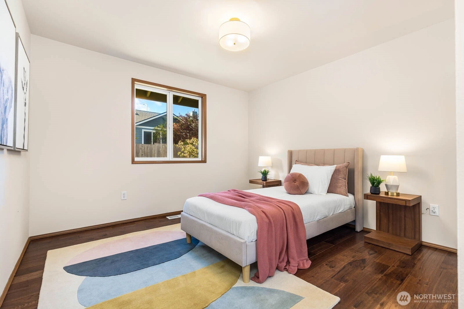 Welcome to this beautifully updated 3-bedroom, 2-bath rambler tucked in a peaceful Lacey cul-de-sac across from neighborhood trails and a park—perfect for walks and playtime. Inside, enjoy vaulted ceilings, a cozy fireplace, and a bright kitchen with new luxury quartz countertops. Thoughtful updates include modern fixtures, fresh paint inside and out, and new bathroom vanities. The spacious primary suite offers a walk-in closet, ensuite bath, and private patio to the backyard. Relax or entertain on the large Trex deck overlooking an expansive fully fenced backyard. Enjoy fruit trees and moments around the fire pit! New furnace & A/C (2021) and large 2-car garage with 10' ceilings and ample storage. Located 15 mins to DT Olympia & JBLM.