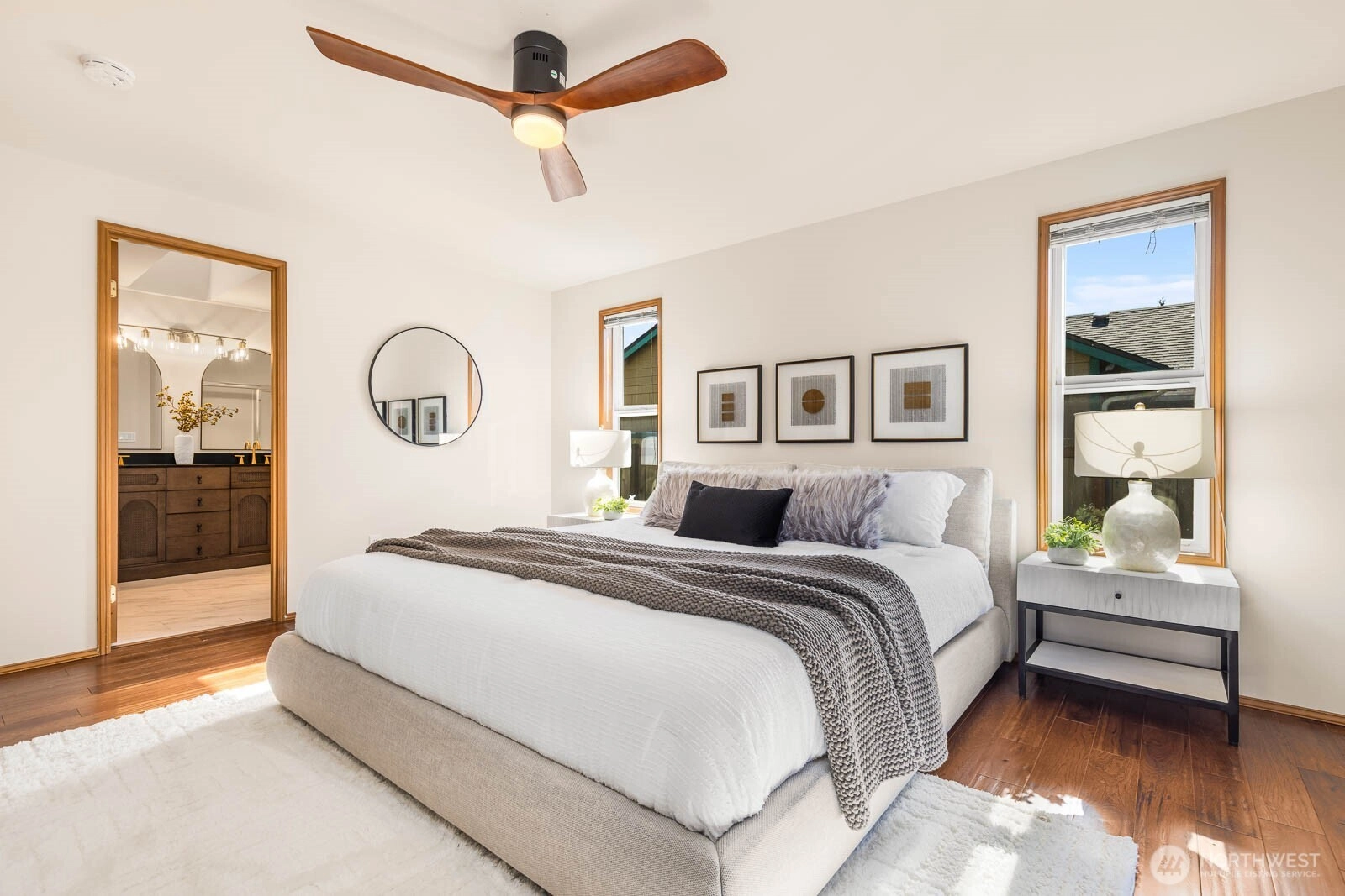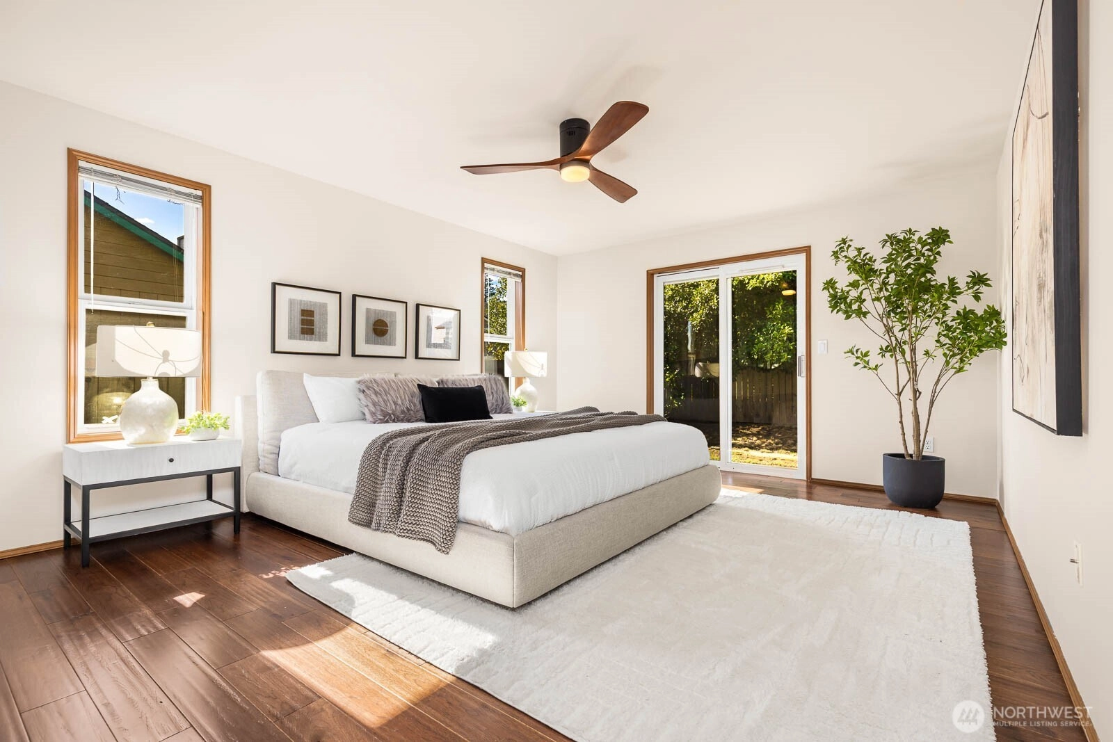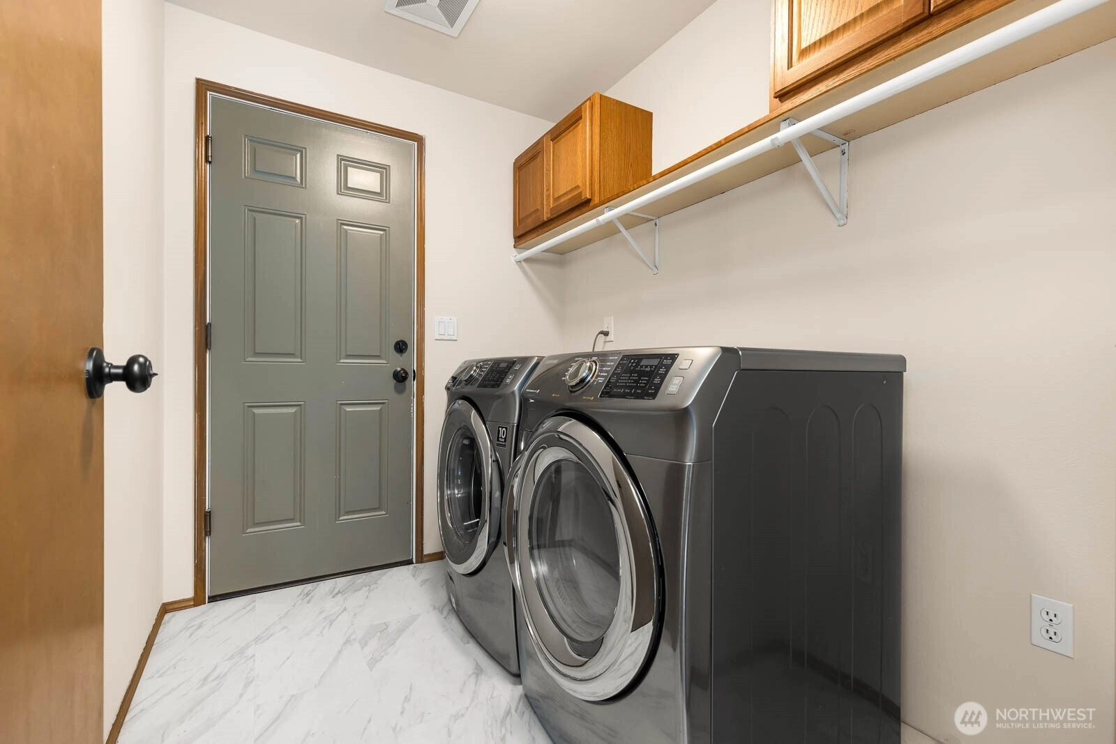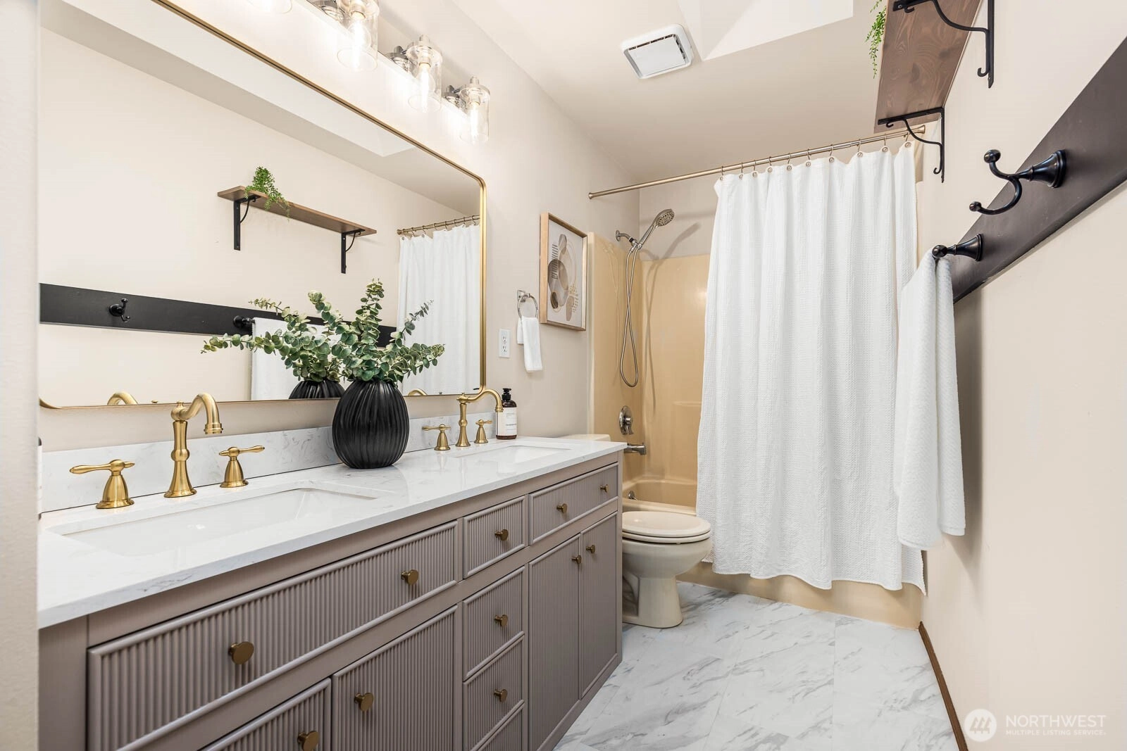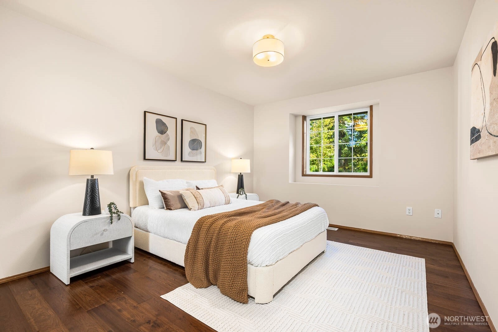 Welcome to this beautifully updated 3-bedroom, 2-bath rambler tucked in a peaceful Lacey cul-de-sac across from neighborhood trails and a park—perfect for walks and playtime. Inside, enjoy vaulted ceilings, a cozy fireplace, and a bright kitchen with new luxury quartz countertops. Thoughtful updates include modern fixtures, fresh paint inside and out, and new bathroom vanities. The spacious primary suite offers a walk-in closet, ensuite bath, and private patio to the backyard. Relax or entertain on the large Trex deck overlooking an expansive fully fenced backyard. Enjoy fruit trees and moments around the fire pit! New furnace & A/C (2021) and large 2-car garage with 10' ceilings and ample storage. Located 15 mins to DT Olympia & JBLM.