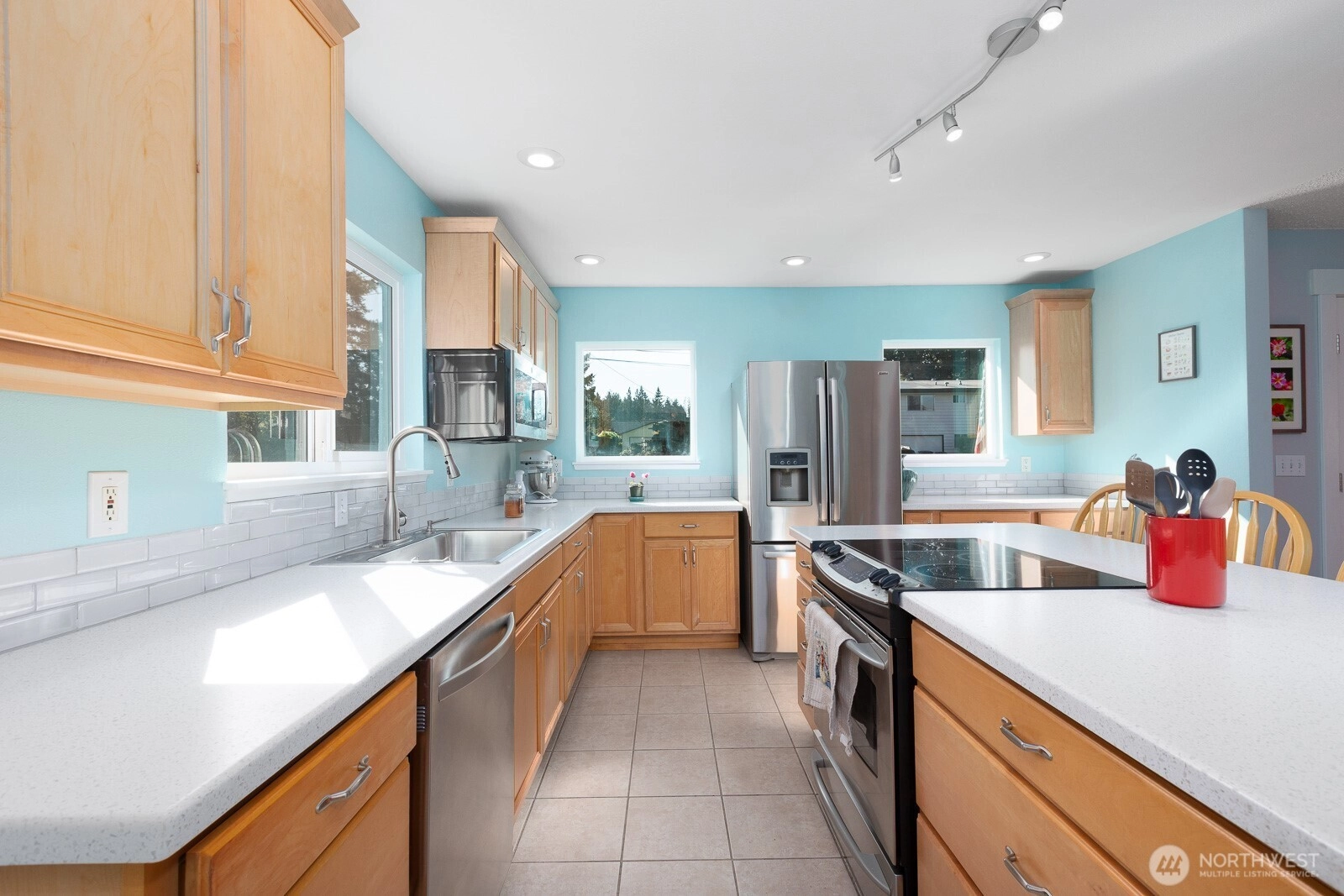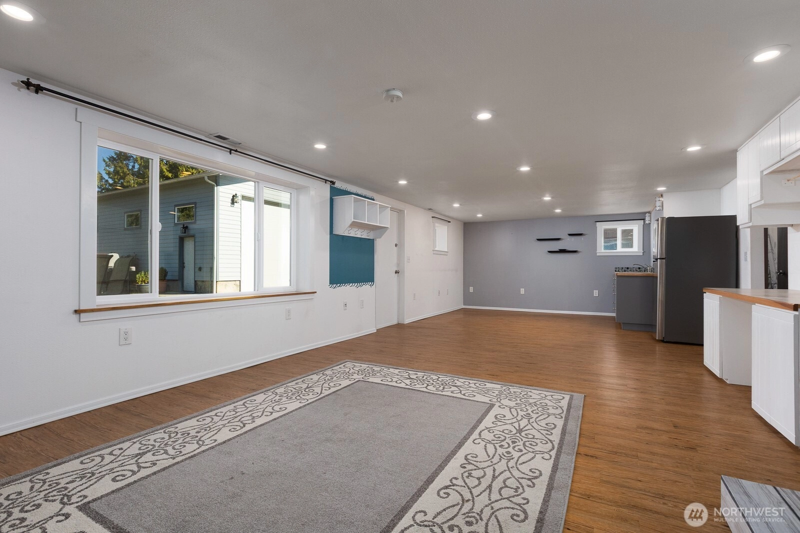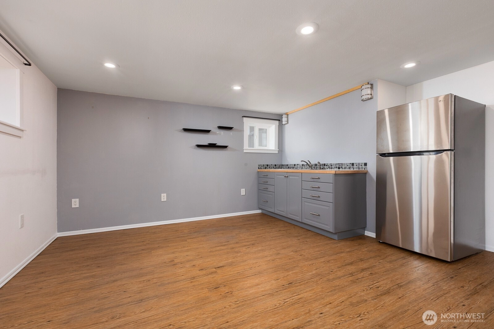 Welcome to this charming Burien home on a huge 1/3-acre lot with a fully finished basement & an oversized detached shop/garage. Remodeled over the years to create an inviting floor plan with custom kitchen, stainless appliances, solid surface countertops & an island. The main floor includes 3 bedrooms & a full bath. The lower level has a walk out basement to patio with firepit. The basement has a 3/4 bath, bedroom with walk-in closet, family room with wet bar (could be converted into a mother-in-law), large laundry room with sink, and bonus space, ideal for an office. Interior/exterior of home painted recently. Other updates include high efficiency A/C and tankless water heater, electrical, high-speed wiring and a new front lawn & porch.