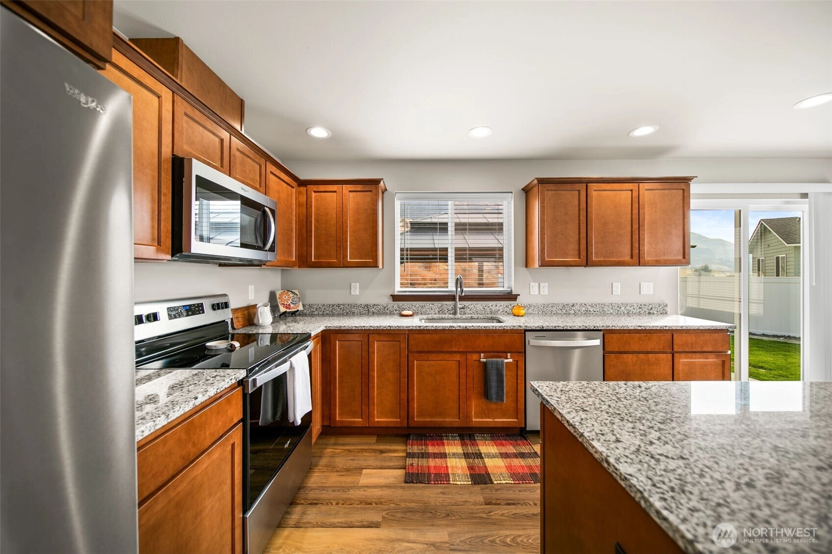 Like-new 2-story home packed with upgrades! The main floor offers open living and dining with a slider to the backyard retreat, plus a beautiful kitchen with granite counters, island, and included appliances. Upstairs you’ll find 3 bedrooms, including a vaulted primary suite, 2 full baths with granite, and a convenient same-floor laundry room. Custom window coverings throughout add a finishing touch. The backyard boasts a 12x20 gazebo with TV, speakers, and heaters. A large lot provides RV parking with 50-amp service, 2 storage sheds, and a heated 2-car garage with built-in storage. Truly move-in ready—a must-see!