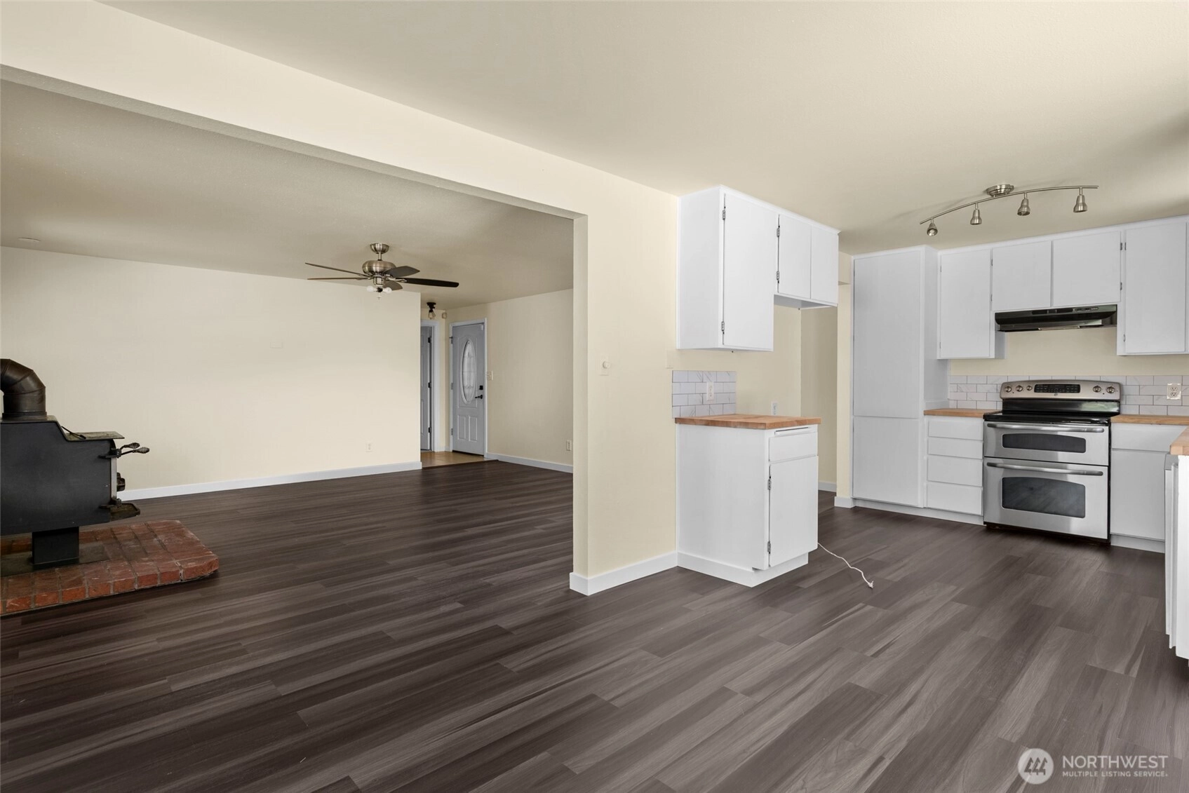 Welcome to a stunning, fully transformed 4-bedroom home on 2.5 private acres! This property is a true turnkey opportunity with a no-expense-spared renovation. Enjoy the peace of mind that comes with a NEW roof, insulation, LVP floors, slider door, and interior and exterior paint. The fully remodeled kitchen features butcher block counters and SS hood/dishwasher/stove, all illuminated by new lighting fixtures throughout. A versatile bonus room with a propane stove and a living room with a huge wood stove create a warm, inviting atmosphere. Outside, your private park awaits with a firepit, tire swing, treehouse, 864sqft 2 bay barn, garden, and chicken coop!Even has ductless A/C! Located in the County but minutes from NAS Whidbey and the City!