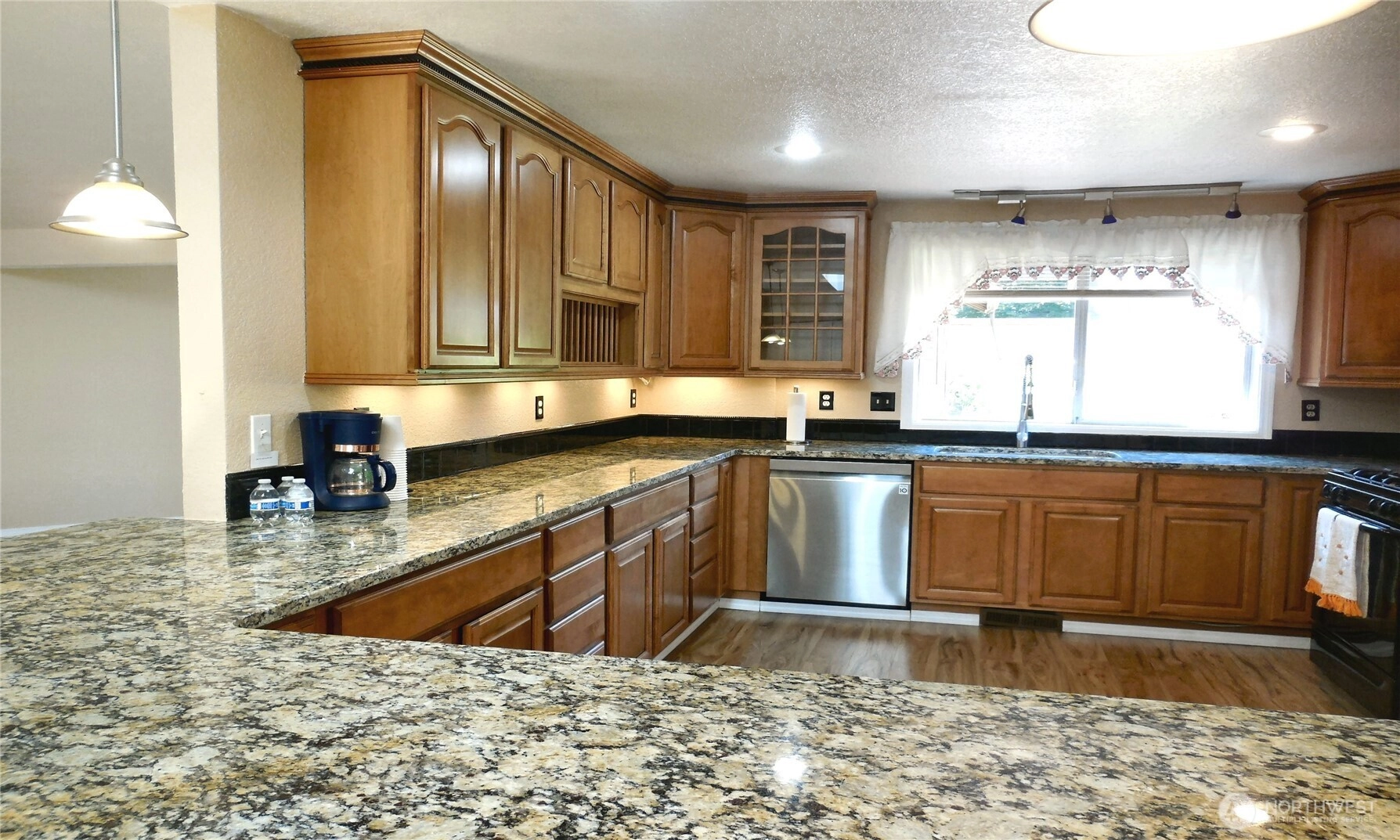 Beautiful home with .25 acre lot in a quiet neighborhood and private beach community. 3 bedroom 2 full bath, skylights, gas fireplaces & wood stove. Large Primary bedroom, dual vanities, jetted tub, walk-in shower & huge closet. Kitchen w/maple cabinets & brand new granite countertops. Fully fenced for privacy. Retreat Cave with lights, ceiling fan and electrical outlet, ready for sauna or office. Private South Sound community offers residents w/access to 1/2 mile private beach, 2 waterfront cabanas, high tide marina, kayak/canoe rack slots, boat ramp, mooring buoys, a nature trail, playground, park, basketball court, & school bus shelter. 1 yr Home Warranty provided by seller.