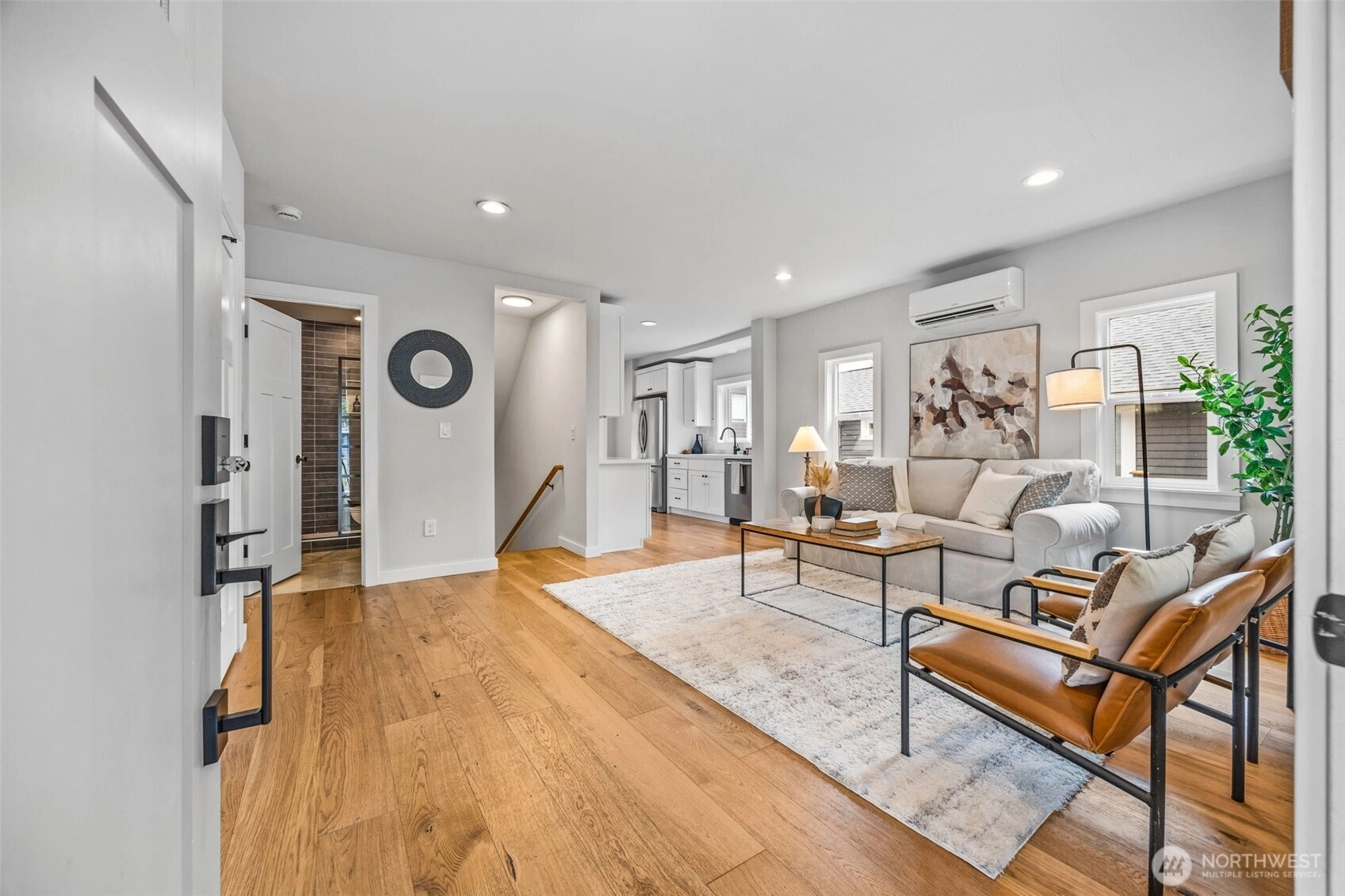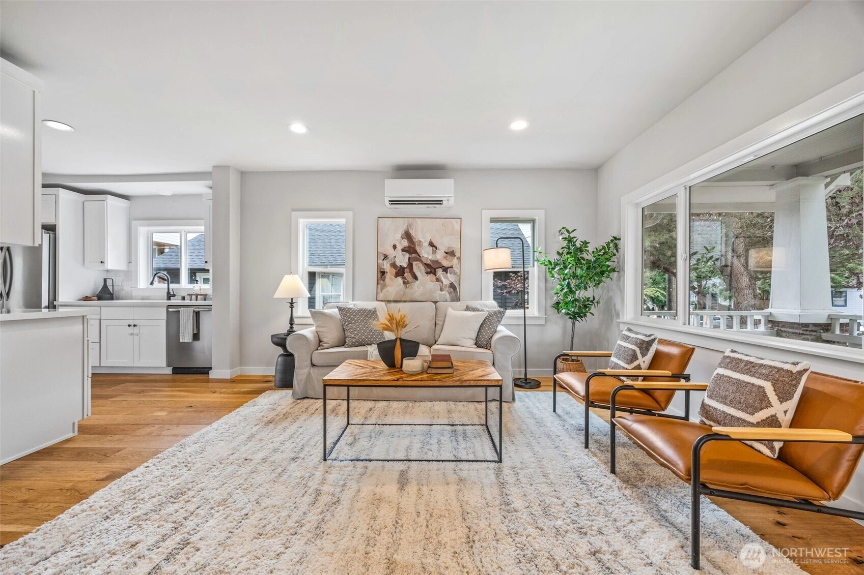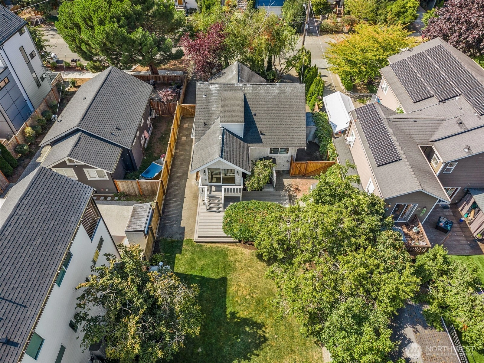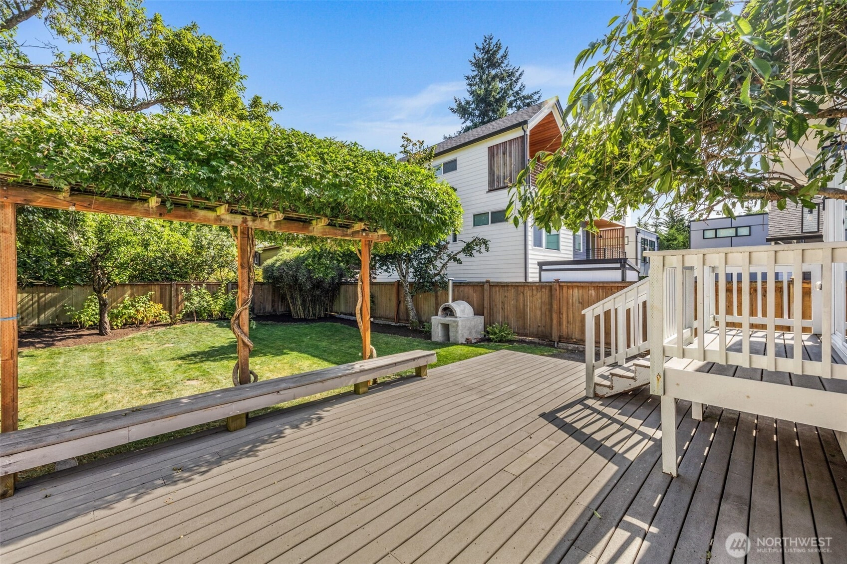 Charm meets modern living by following the enchanting, brick path under blooming cherry trees to this beautifully remodeled 1924 Craftsman with covered front porch. Light-filled spaces w/ wide-plank oak floors, sunny office w/ French doors, stylish kitchen w/ soaring vaulted dining leads to sprawling deck for seamless indoor/outdoor living. Main floor primary room w/ bath & designer finishes plus flex spaces for work, play & guests on both upper & lower floors including media/recreation room. Fully updated systems for peace of mind & fenced yard w/ custom pizza oven offers the ultimate entertaining experience. Plenty of off-street parking with two driveways and two sheds for gear storage. Close to Metropolitan Market, eateries, & shopping.