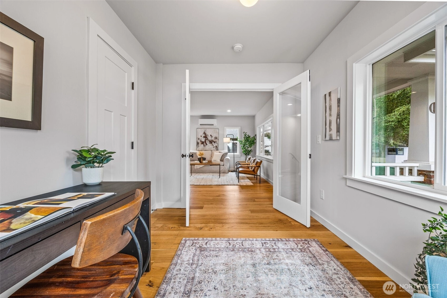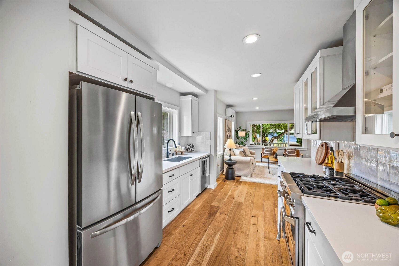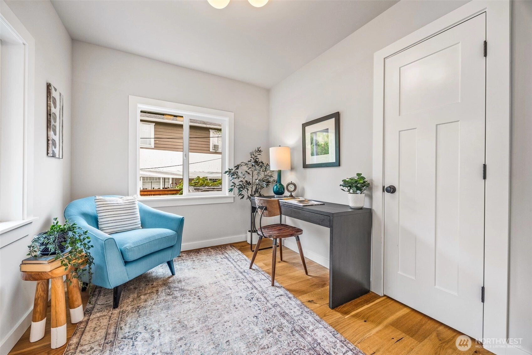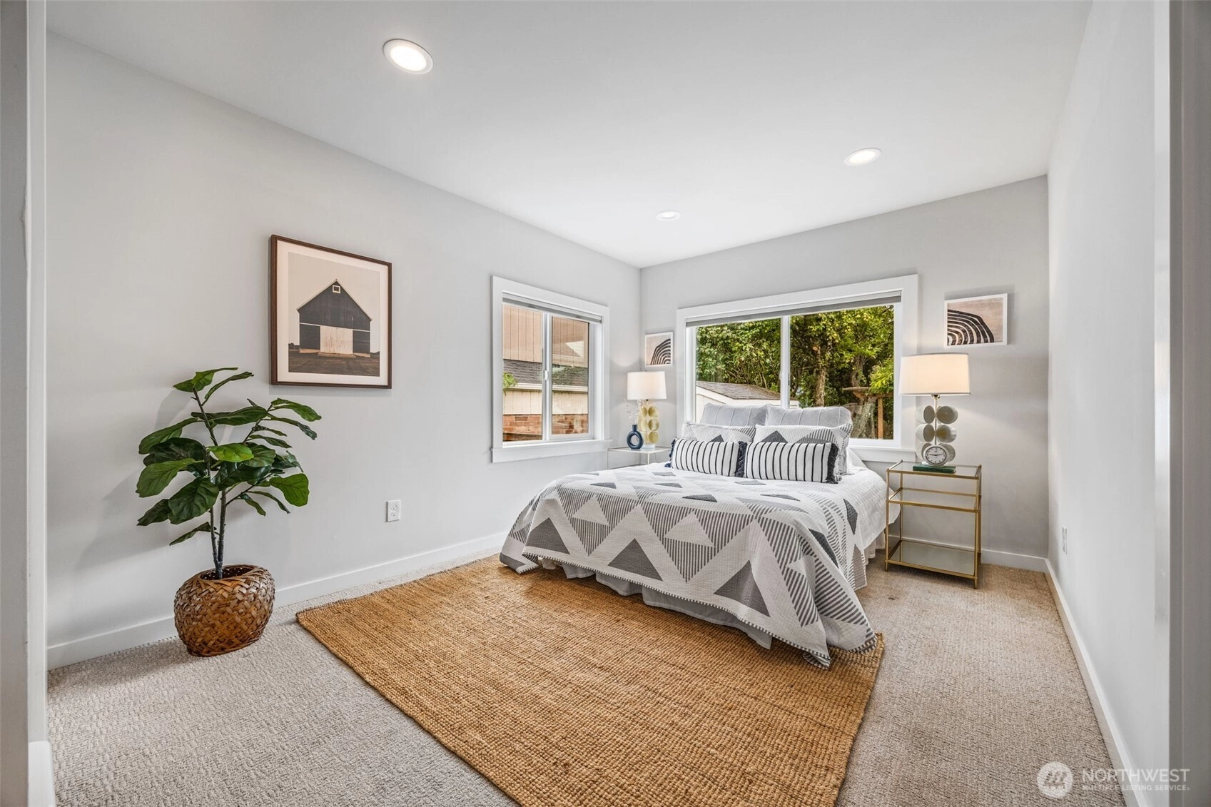 Charm meets modern living by following the enchanting, brick path under blooming cherry trees to this beautifully remodeled 1924 Craftsman with covered front porch. Light-filled spaces w/ wide-plank oak floors, sunny office w/ French doors, stylish kitchen w/ soaring vaulted dining leads to sprawling deck for seamless indoor/outdoor living. Main floor primary room w/ bath & designer finishes plus flex spaces for work, play & guests on both upper & lower floors including media/recreation room. Fully updated systems for peace of mind & fenced yard w/ custom pizza oven offers the ultimate entertaining experience. Plenty of off-street parking with two driveways and two sheds for gear storage. Close to Metropolitan Market, eateries, & shopping.