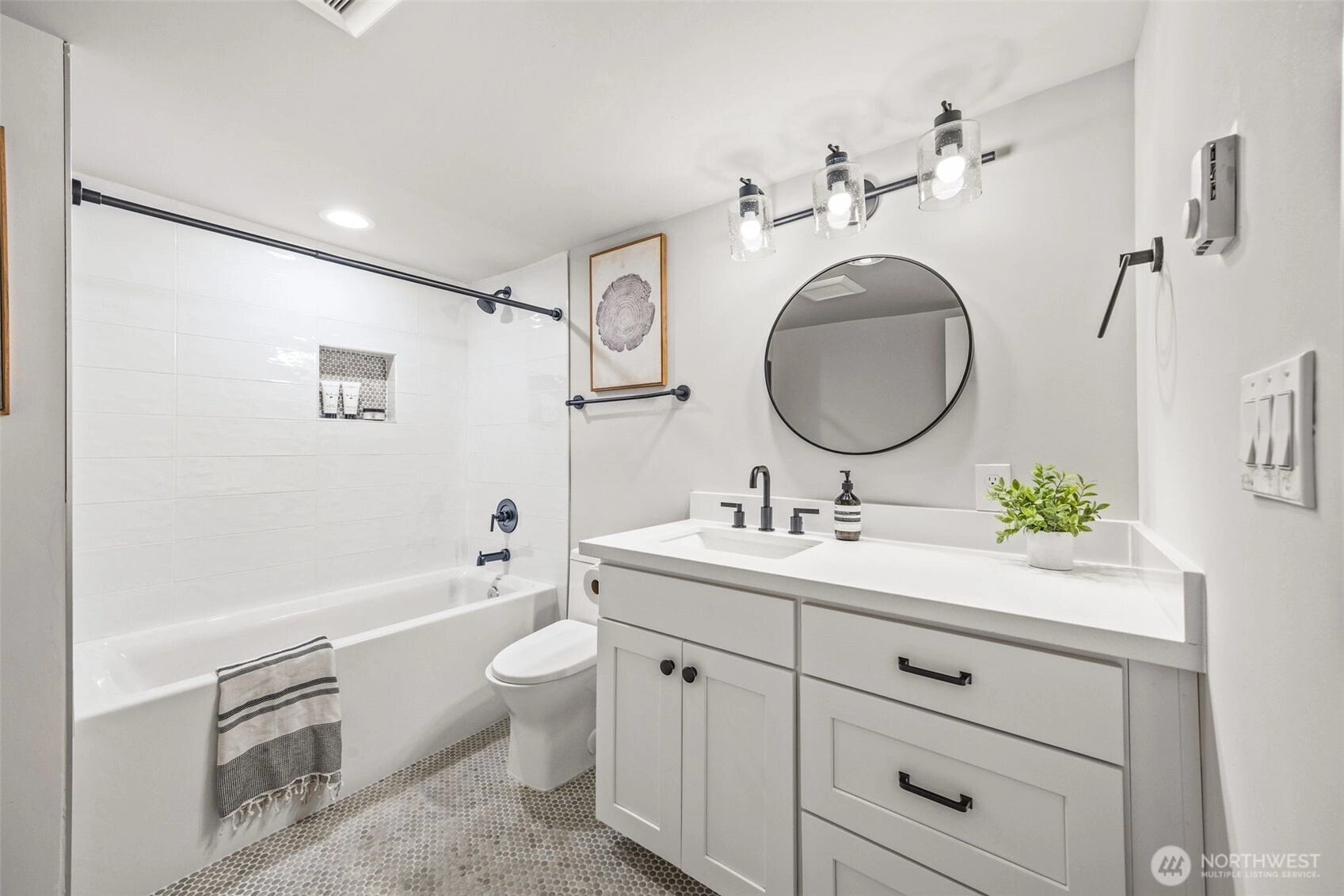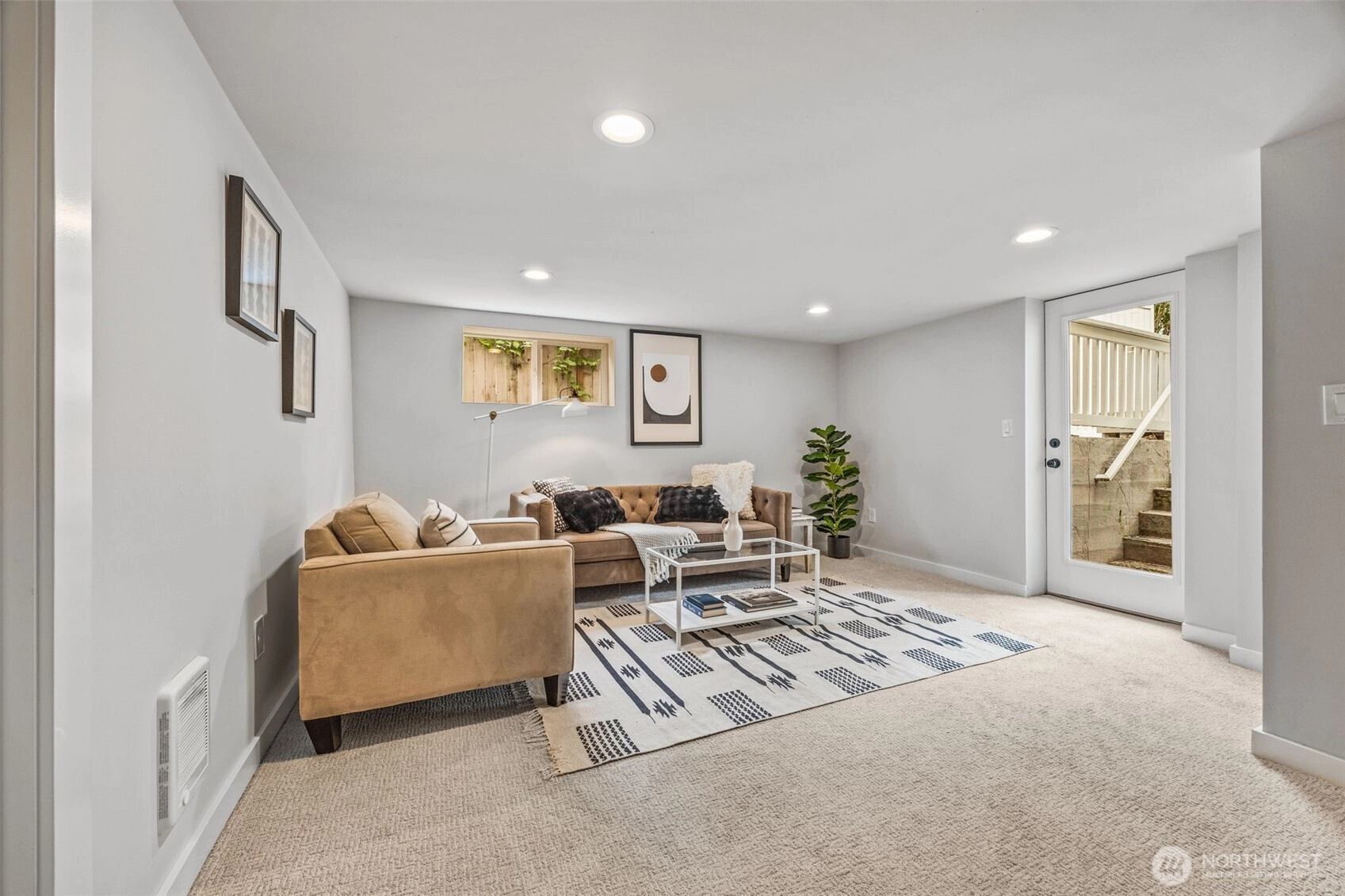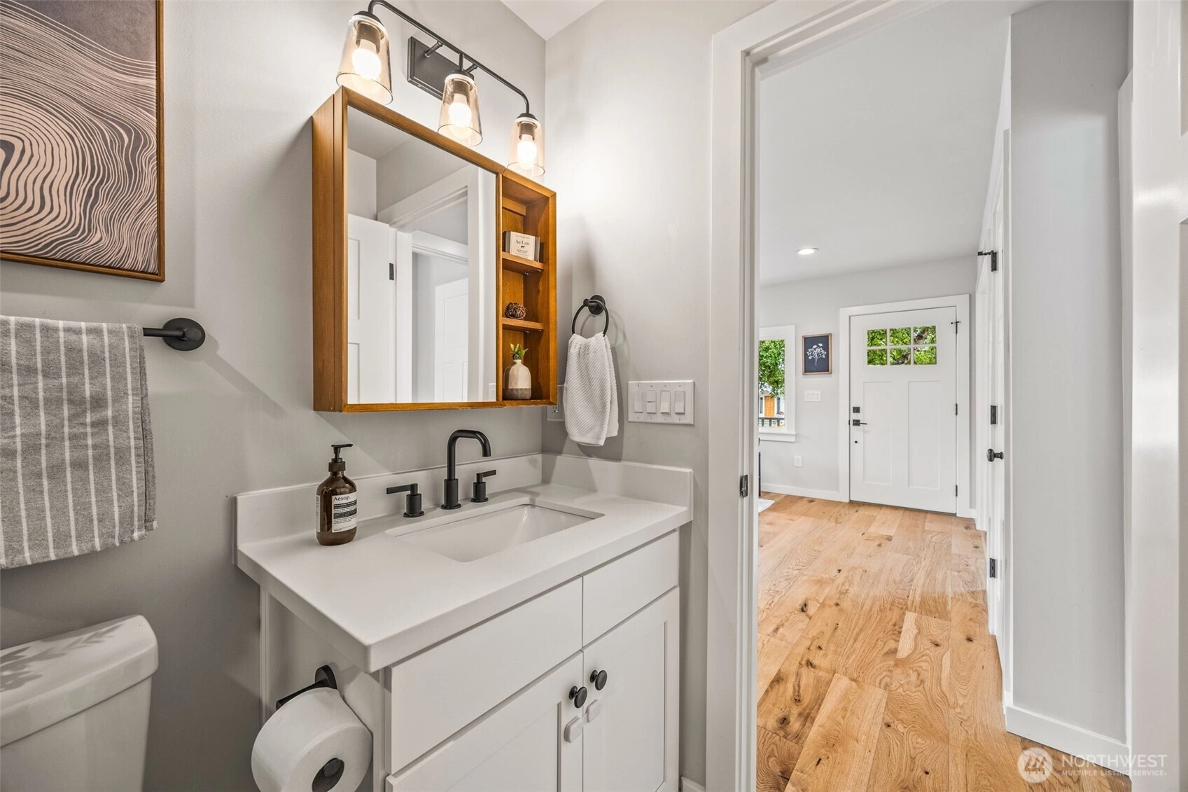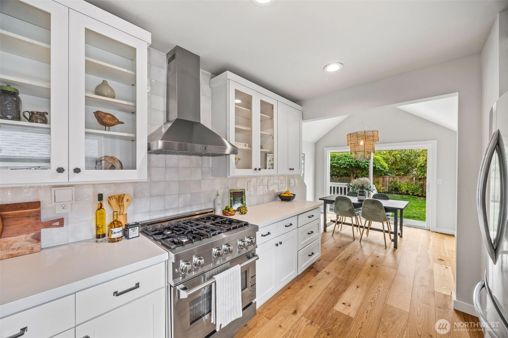 Charm meets modern living by following the enchanting, brick path under blooming cherry trees to this beautifully remodeled 1924 Craftsman with covered front porch. Light-filled spaces w/ wide-plank oak floors, sunny office w/ French doors, stylish kitchen w/ soaring vaulted dining leads to sprawling deck for seamless indoor/outdoor living. Main floor primary room w/ bath & designer finishes plus flex spaces for work, play & guests on both upper & lower floors including media/recreation room. Fully updated systems for peace of mind & fenced yard w/ custom pizza oven offers the ultimate entertaining experience. Plenty of off-street parking with two driveways and two sheds for gear storage. Close to Metropolitan Market, eateries, & shopping.