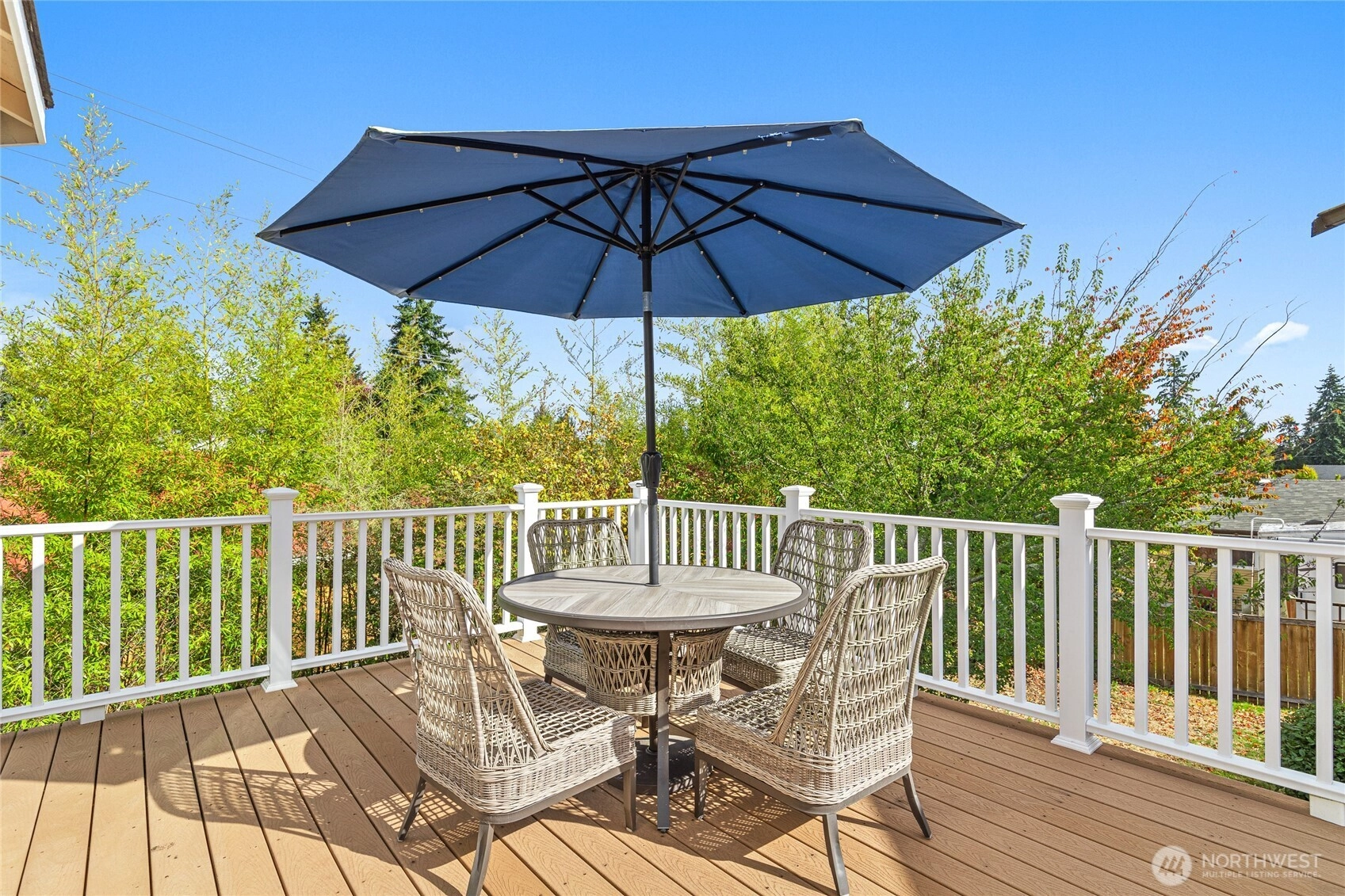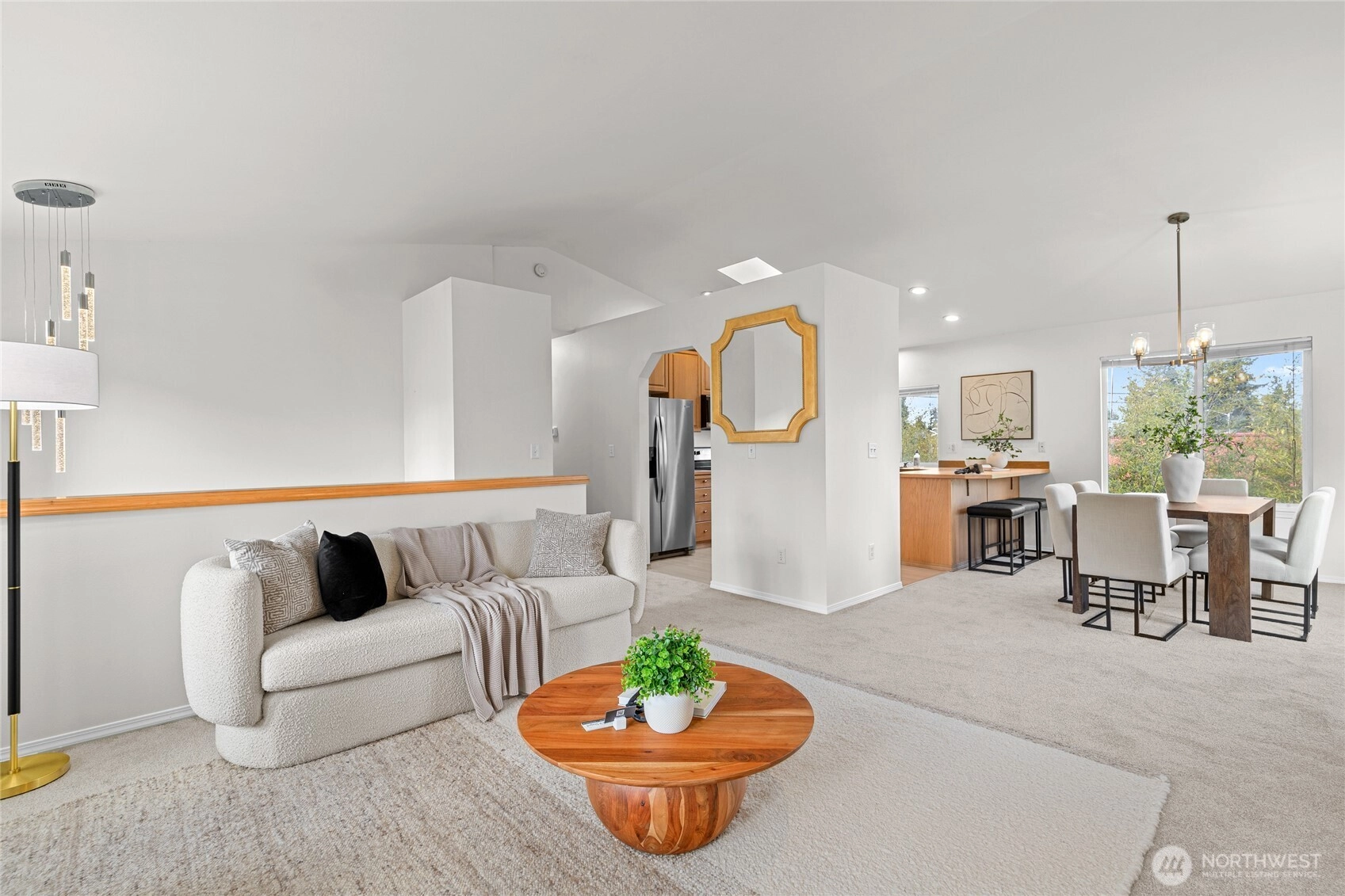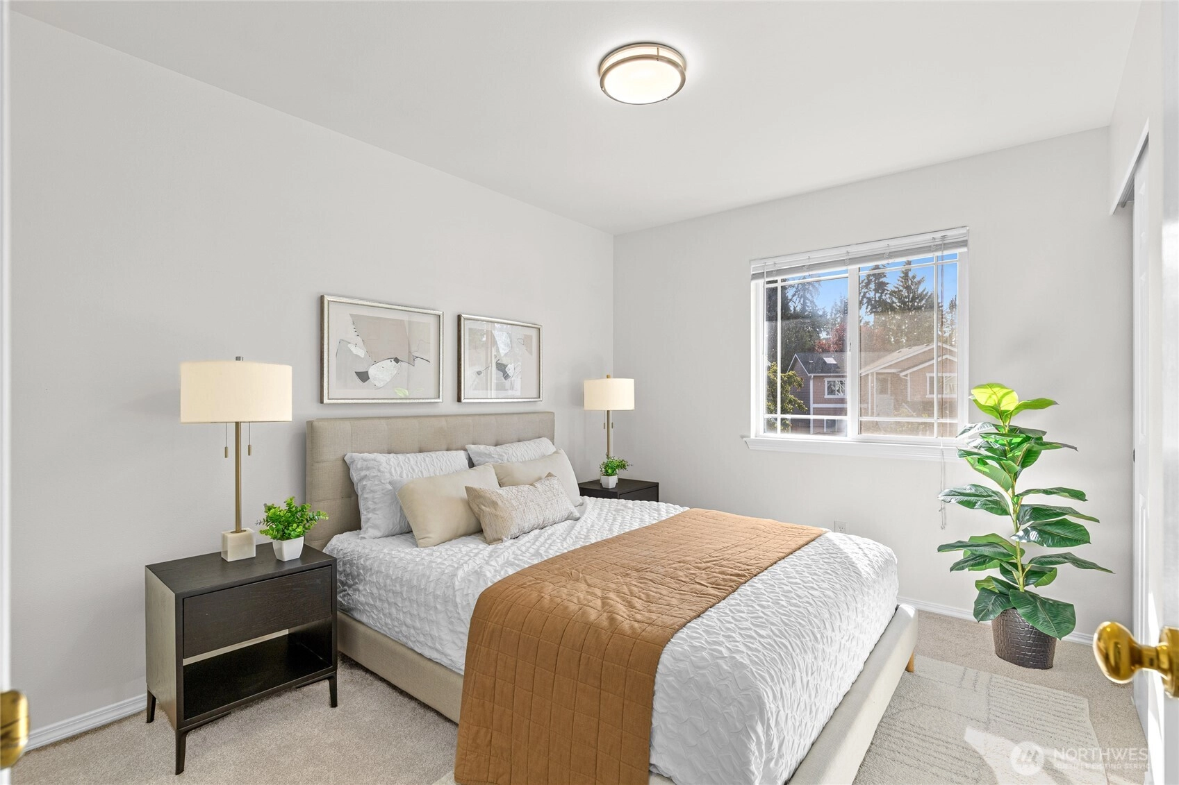 Beautifully updated Mill Creek home tucked in a quiet cul-de-sac! This light-filled 4-bed, 3-bath home features vaulted ceilings, a cozy gas fireplace, and a bright open kitchen with a breakfast bar. Enjoy new interior and exterior paint, new carpet, and modern new light fixtures throughout. The spacious Trex deck is perfect for relaxing or entertaining, while the lower level offers a private bedroom and ¾ bath ideal for guests or a home office. Conveniently located near Mill Creek Town Center, parks, and major highways. This move-in-ready gem perfectly blends comfort, style, and convenience!