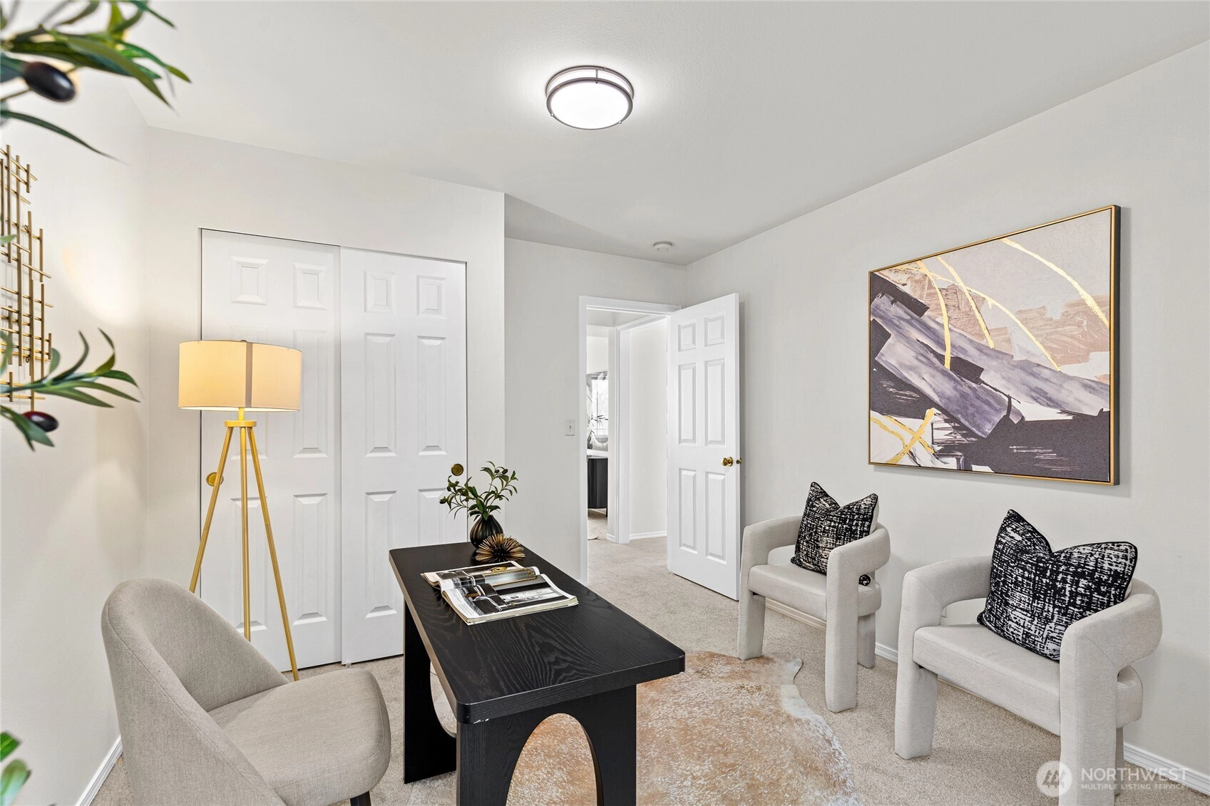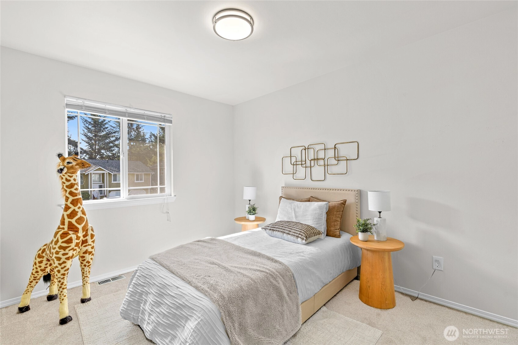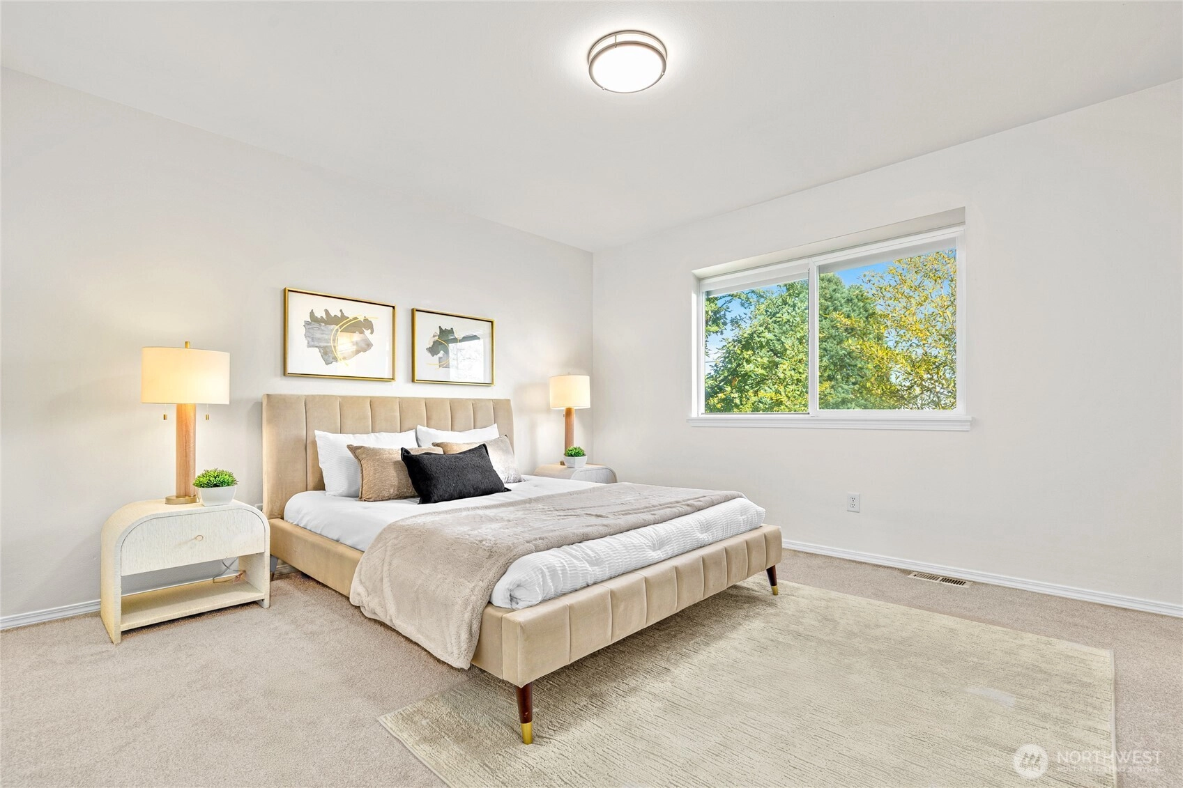 Beautifully updated Mill Creek home tucked in a quiet cul-de-sac! This light-filled 4-bed, 3-bath home features vaulted ceilings, a cozy gas fireplace, and a bright open kitchen with a breakfast bar. Enjoy new interior and exterior paint, new carpet, and modern new light fixtures throughout. The spacious Trex deck is perfect for relaxing or entertaining, while the lower level offers a private bedroom and ¾ bath ideal for guests or a home office. Conveniently located near Mill Creek Town Center, parks, and major highways. This move-in-ready gem perfectly blends comfort, style, and convenience!