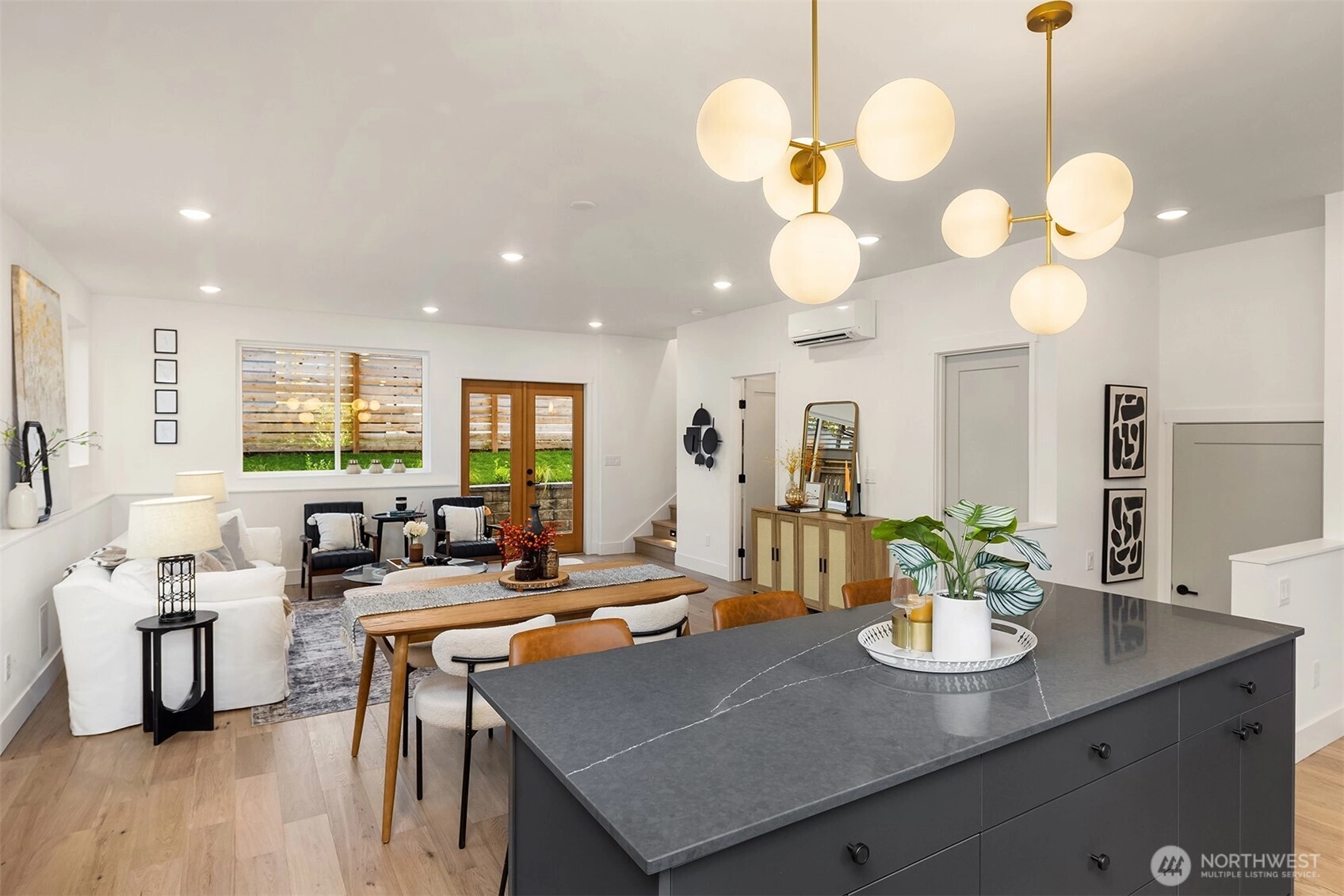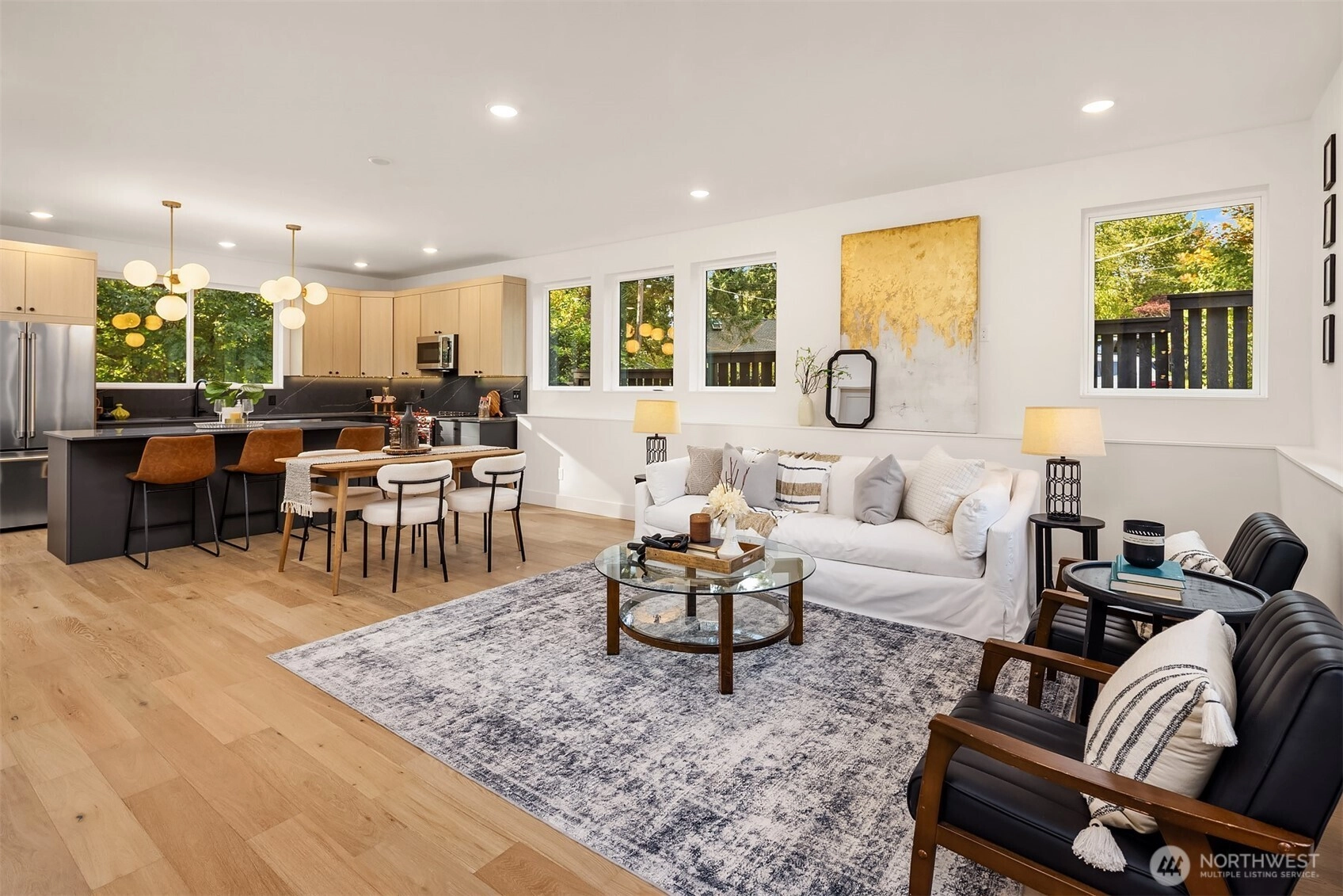 Beautiful new construction home in North Seattle's Olympic Hill's neighborhood. Step inside to a light-filled open-concept living, dining & kitchen - perfect for entertaining. Living space is extended outdoors to a private patio & grassy backyard ideal for pets, gatherings or gardening. Second floor features stunning primary with en-suite, laundry room, two additional bedrooms and full bath. Not the top level, find a versatile family room with covered deck & fourth bedroom & bathroom, perfect for guests or home office. Nestled in a quiet, tree-filled neighborhood, this home offers a serene feel while maintaining convenience to amenities of North Seattle and easy access to I-5. Attached garage and over-sized driveway allow for ample parking.