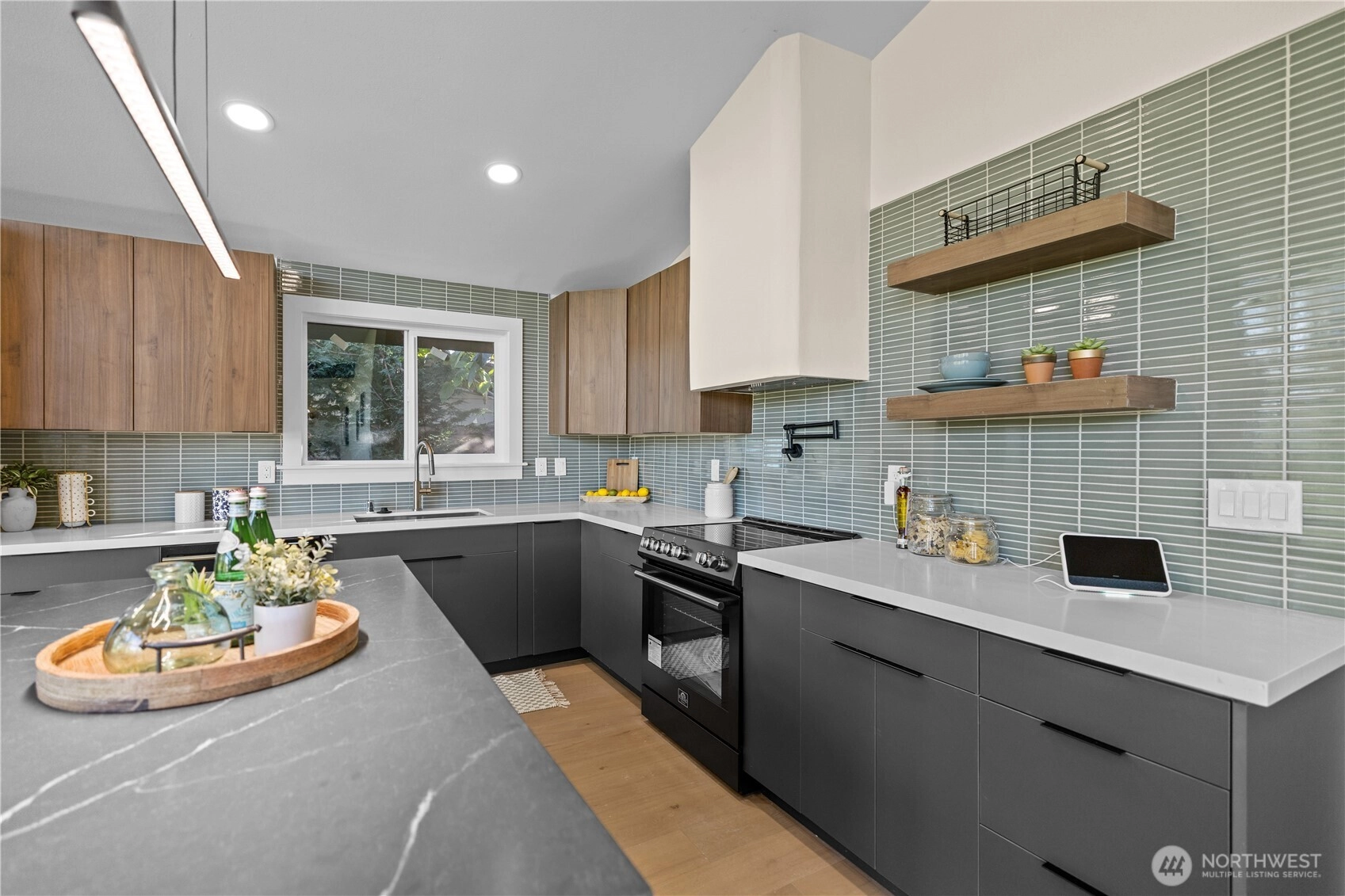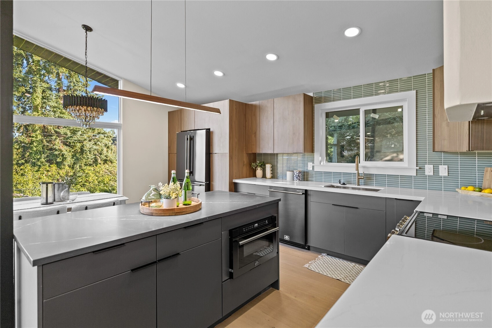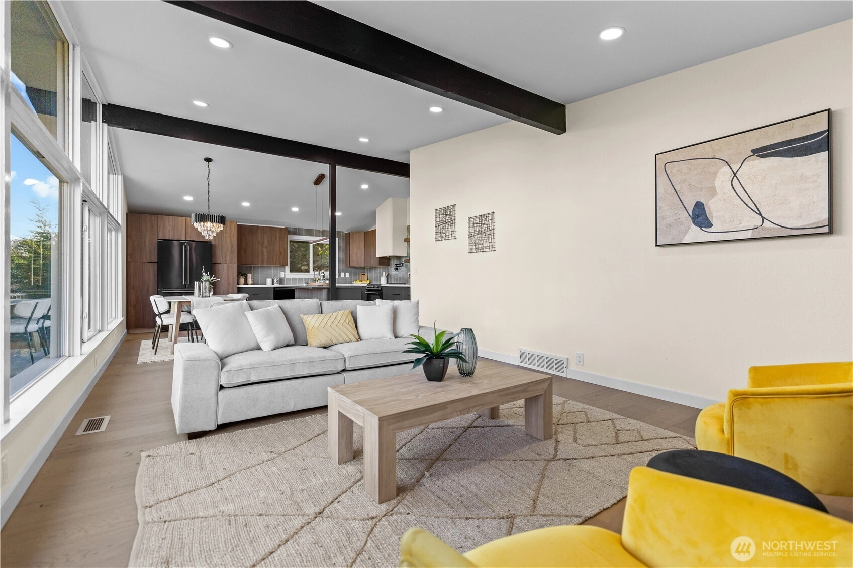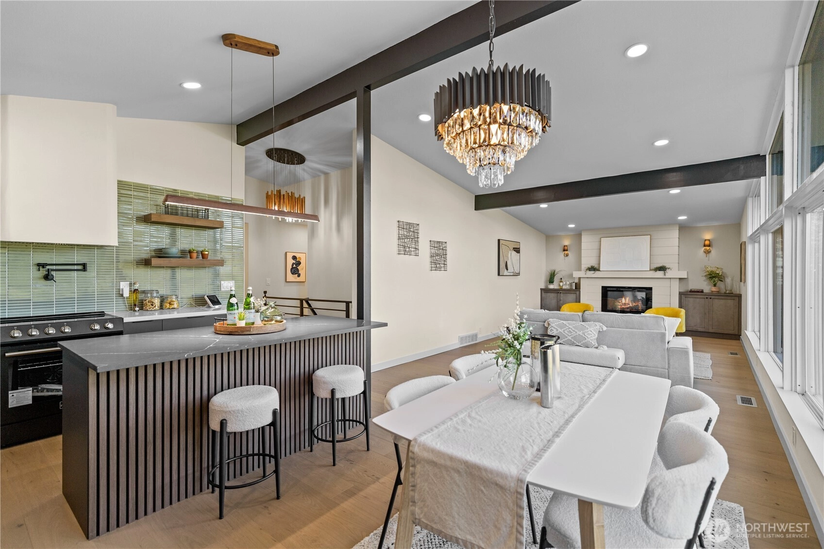 Stunning 4-bedroom mid-century home in West Seattle’s sought-after Arbor Heights neighborhood. Showcasing soaring vaulted ceilings, designer finishes, and brand-new cabinetry throughout, this home blends timeless style with modern comfort. The open-concept layout is filled with natural light, and the fully fenced backyard—complete with new landscaping and a cozy fire pit—offers the perfect space for entertaining or relaxing. Close to local parks, shops, and the best of West Seattle living.
