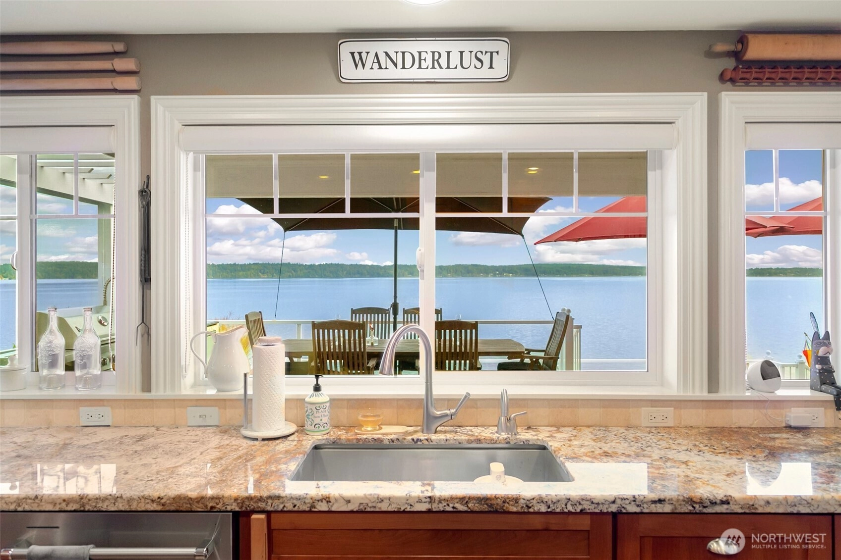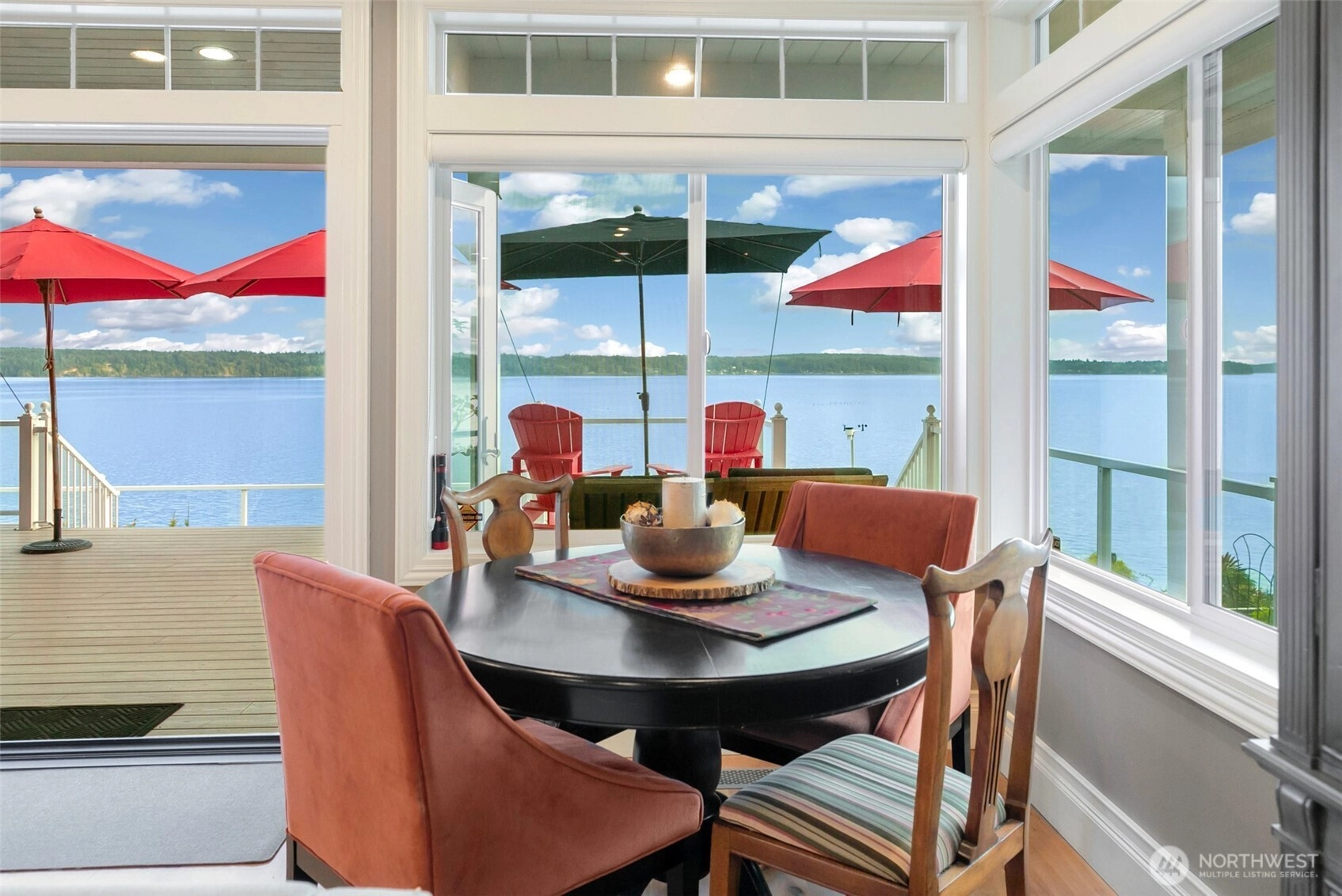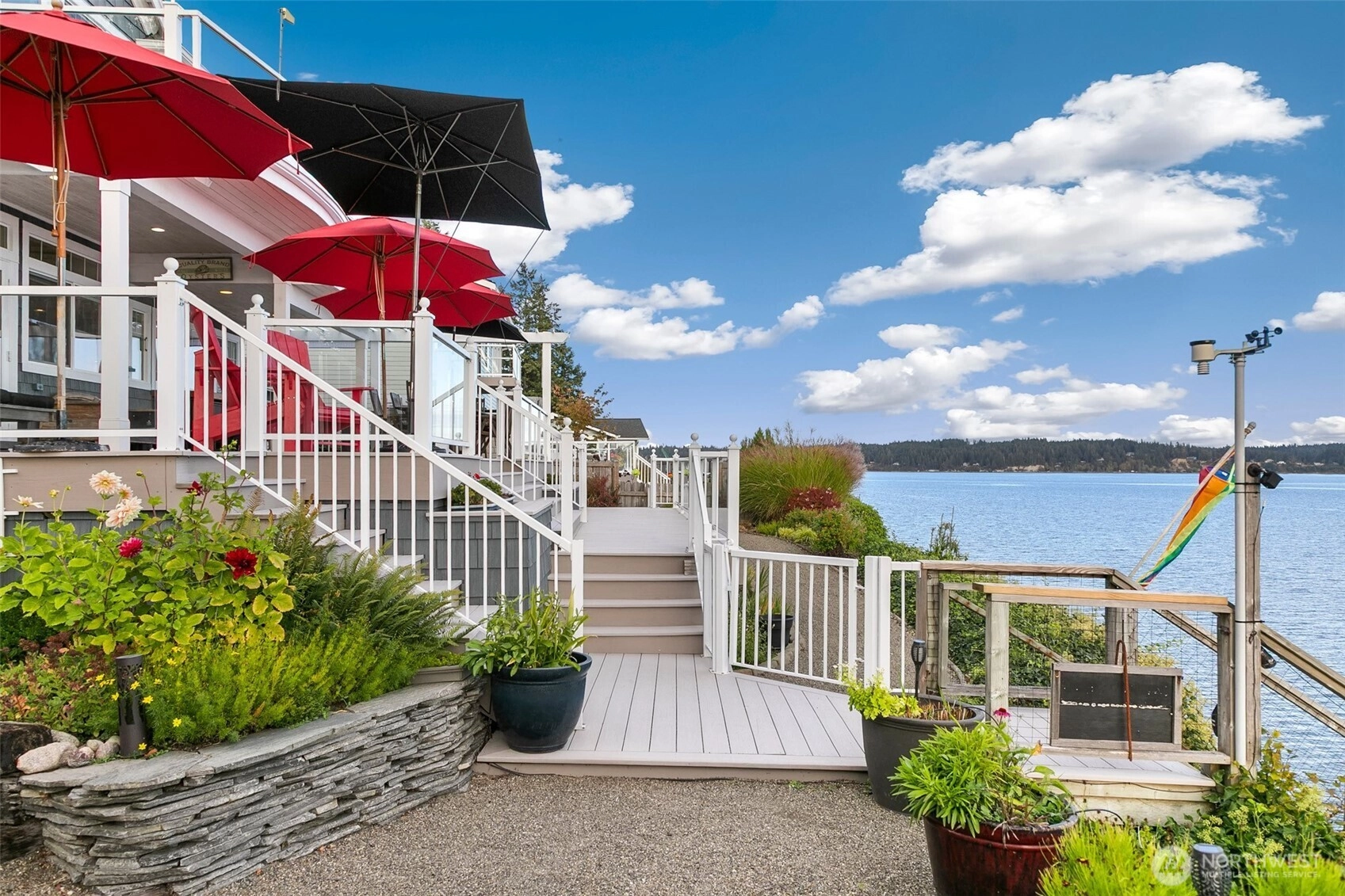 Sitting on the southern end of Stretch Island, this home has been lovingly designed to embrace the beauty of the Puget Sound. From the time you cross the bridge onto the island, you feel transported to a magical and peaceful place. Rebuilt in 2007, the home has been designed to maximize the glorious 180-degree views of Case Inlet, with Mt. Rainier front and center. Upper and lower decks allow for whale, eagle, otter, and seal watching. A staircase leads down to 75ft of cobble beach with oysters, clams-and a new bulkhead. Beautifully curated landscaping provides color and lush greenery all year round- pick your own olives and kiwis! It is very rare to see property for sale in Vineland Cove--so seize the opportunity while you can!