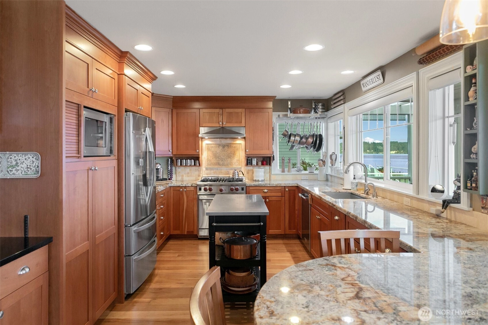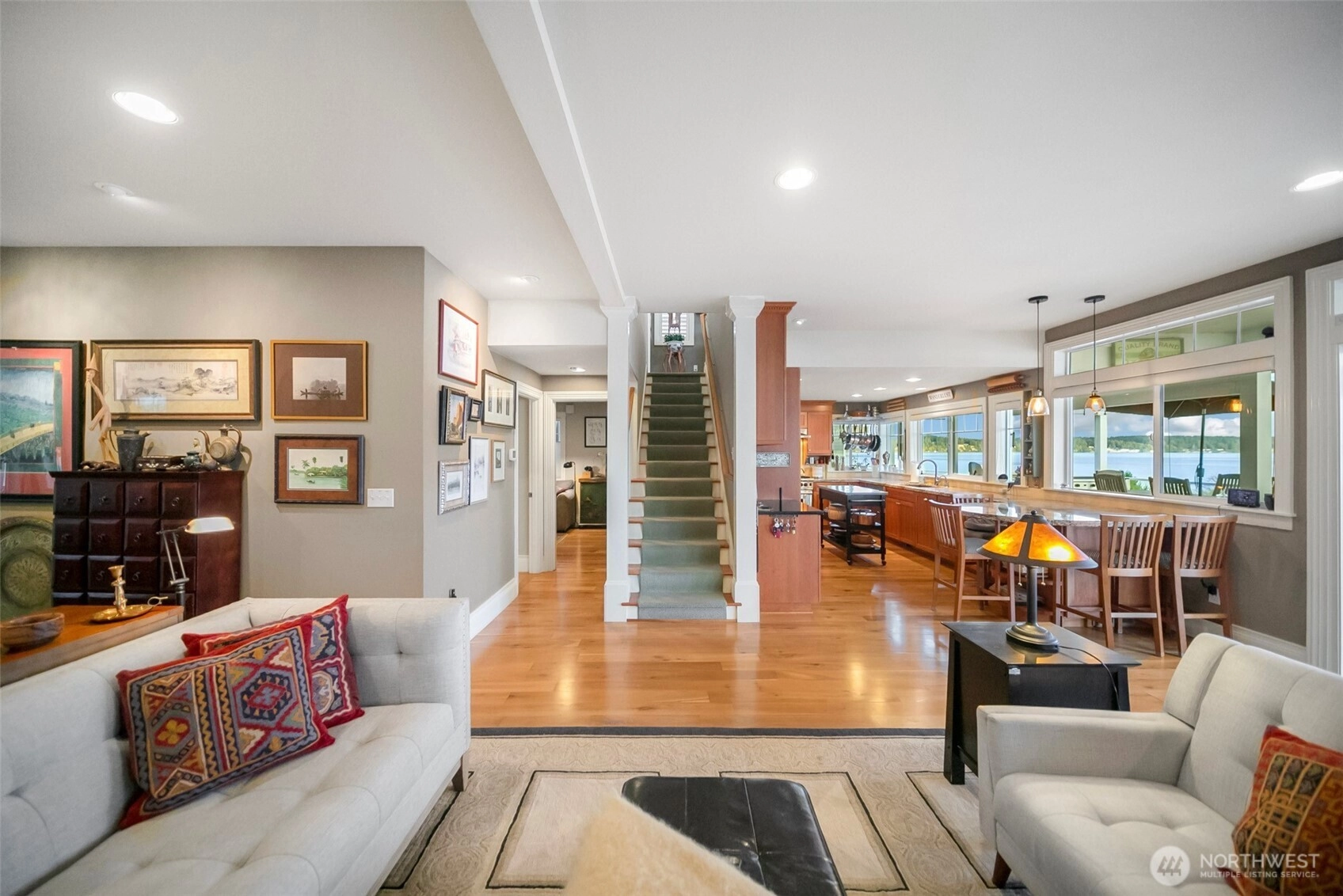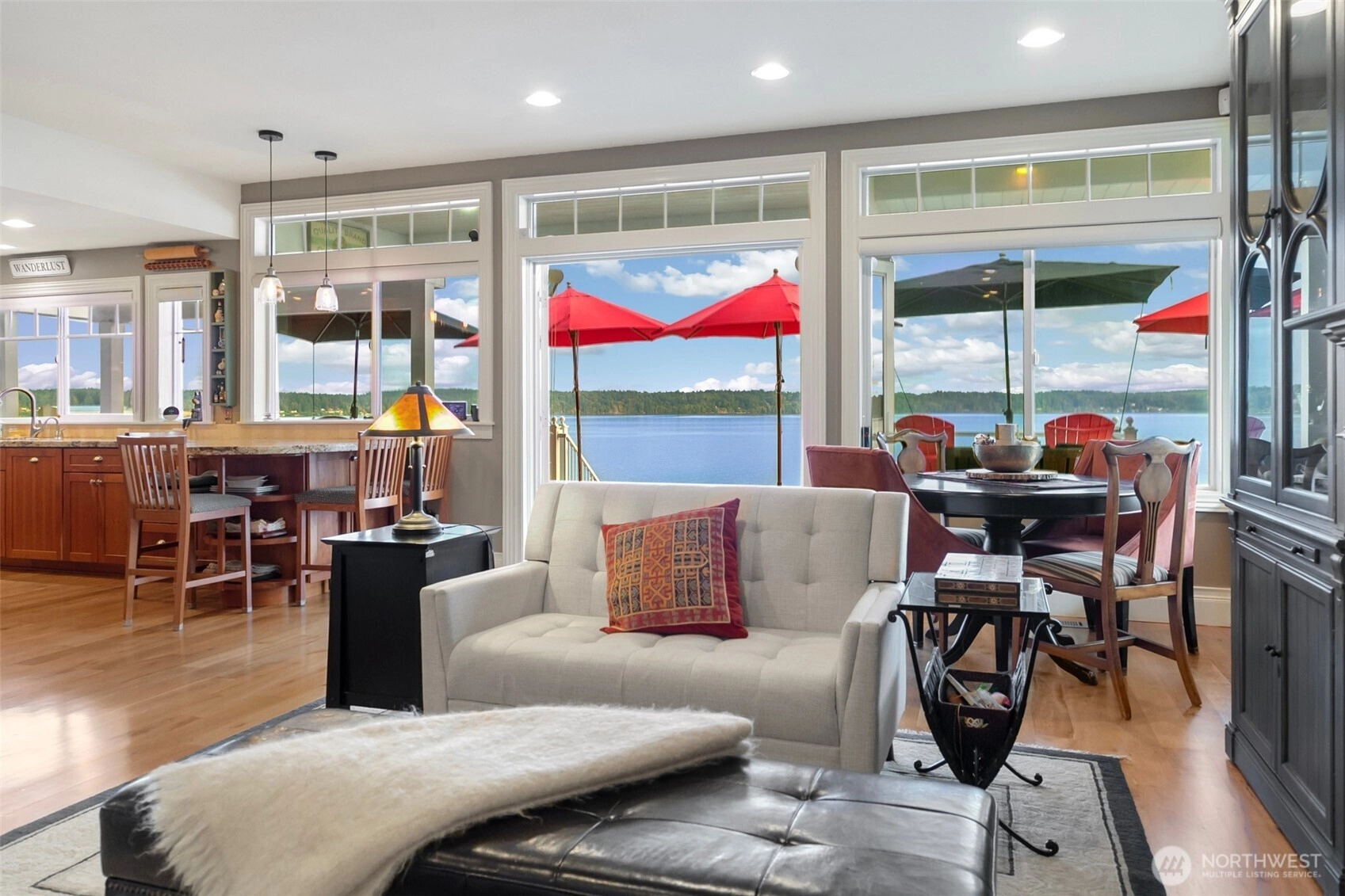 Sitting on the southern end of Stretch Island, this home has been lovingly designed to embrace the beauty of the Puget Sound. From the time you cross the bridge onto the island, you feel transported to a magical and peaceful place. Rebuilt in 2007, the home has been designed to maximize the glorious 180-degree views of Case Inlet, with Mt. Rainier front and center. Upper and lower decks allow for whale, eagle, otter, and seal watching. A staircase leads down to 75ft of cobble beach with oysters, clams-and a new bulkhead. Beautifully curated landscaping provides color and lush greenery all year round- pick your own olives and kiwis! It is very rare to see property for sale in Vineland Cove--so seize the opportunity while you can!
