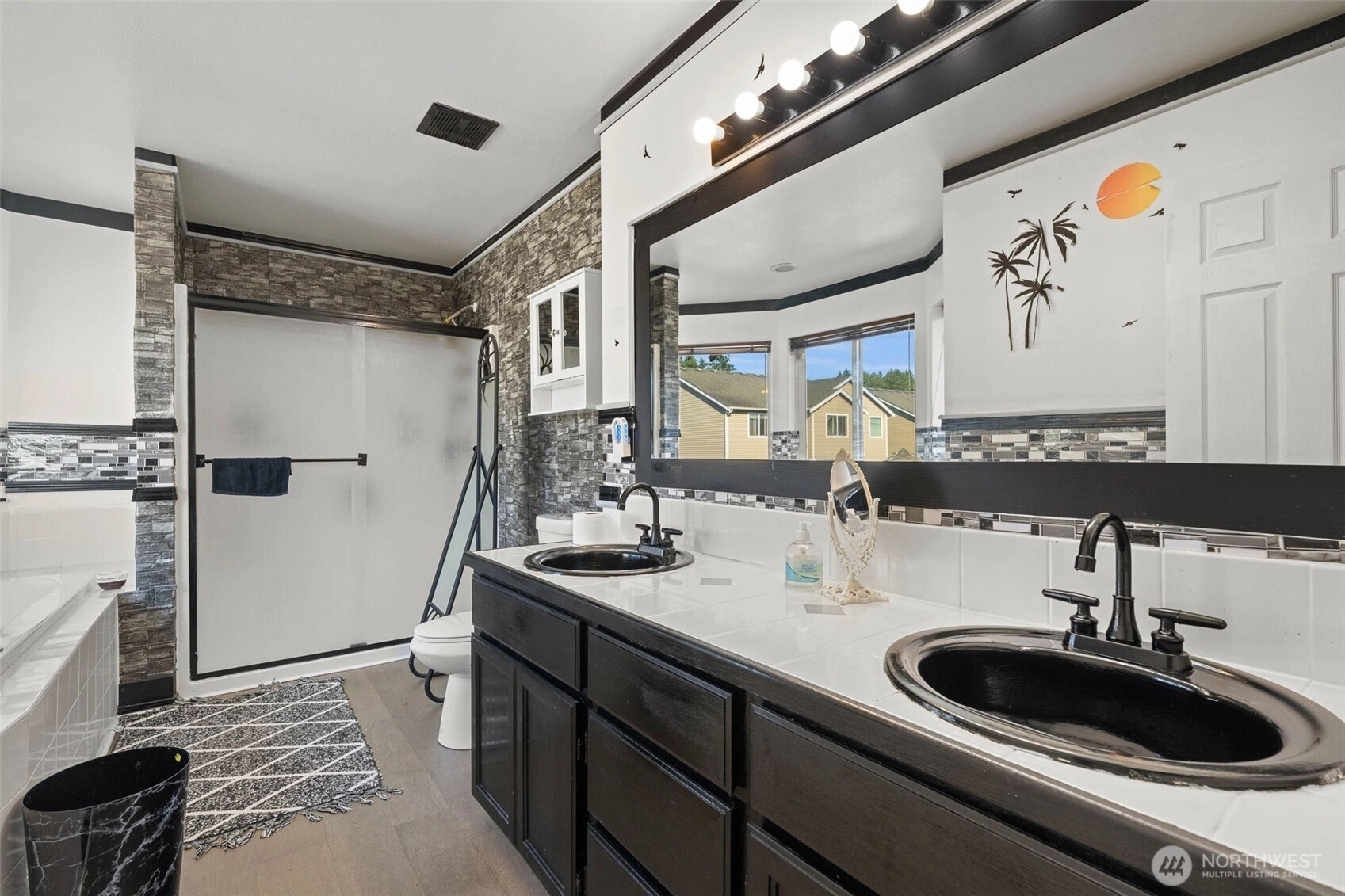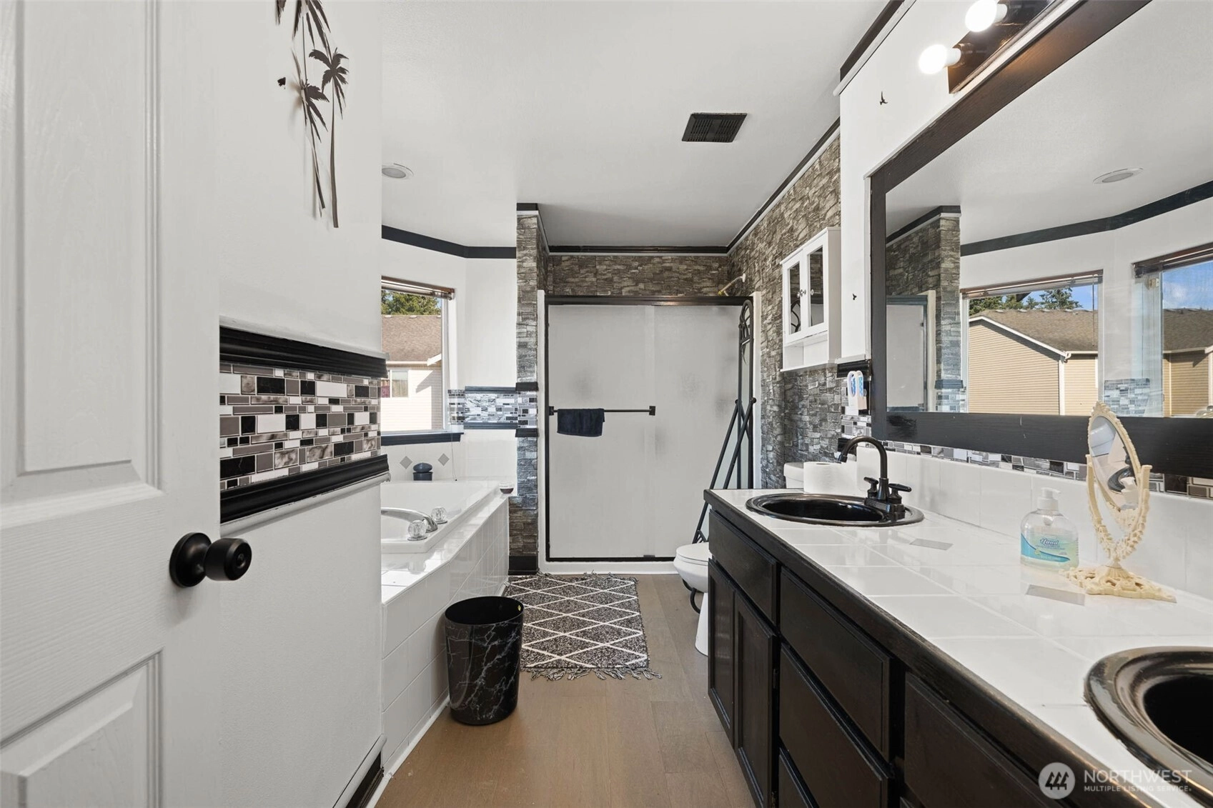 First time on the market! NO HOA fees! This stunning 5-bedroom, 2.5-bathroom residence is situated on a private driveway, offering both tranquility and convenience. Upon entering, you'll be greeted by elegant crown molding and custom flooring throughout the home, which enhances each room to create inviting living areas ideal for relaxation and entertaining. The primary suite serves as a true retreat, featuring a luxurious 5-piece master bath that includes a soothing soaking tub. Each bedroom is well-proportioned and filled with natural light, conveniently located near a variety of restaurants, the Amazon Distribution Center, BOEING, various distribution centers, and shopping options.