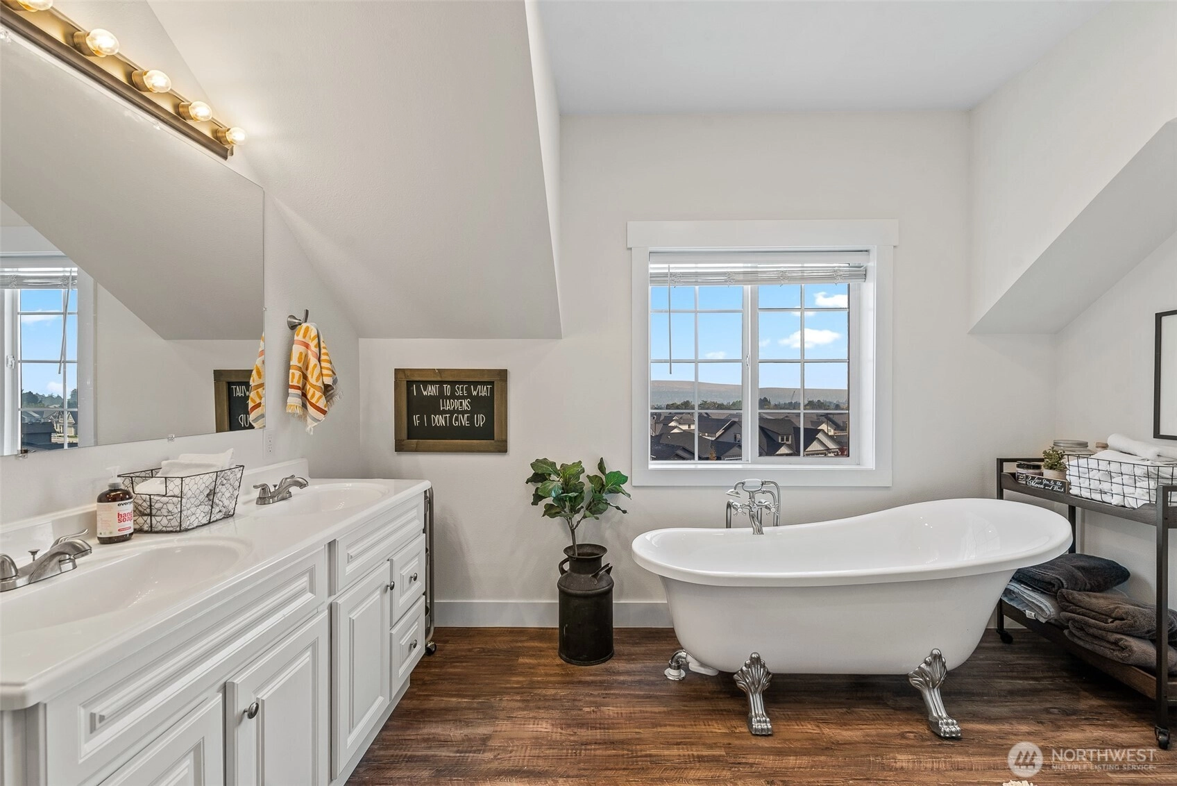 Experience breathtaking Wenatchee Valley views from every room in this beautifully renovated home, perfectly situated in a central location. Fully updated in 2021, this home blends modern design with timeless charm, offering new finishes from top to bottom. The main floor features a stunning kitchen with floating shelves, solid surface countertops, stainless steel appliances, and a massive walk-in pantry. The luxurious primary suite is a true retreat, complete with a spa-like en-suite bathroom that has a clawfoot soaking tub and a tiled walk-in shower. Lower level is plumbed for a kitchen and has a 2nd laundry room. Outside enjoy a fully fenced backyard, a private patio, and a covered front deck where you can soak in the views year-round.